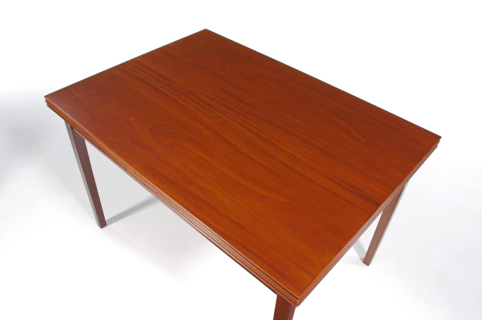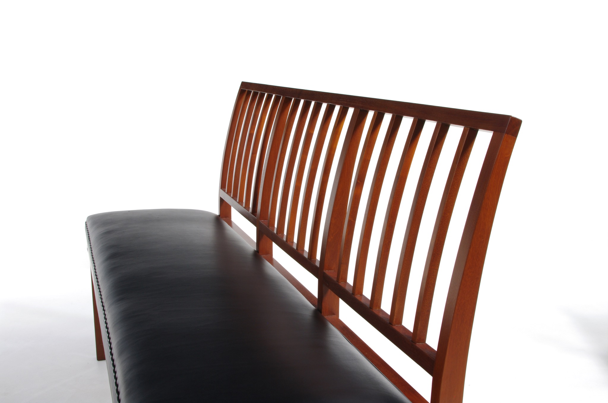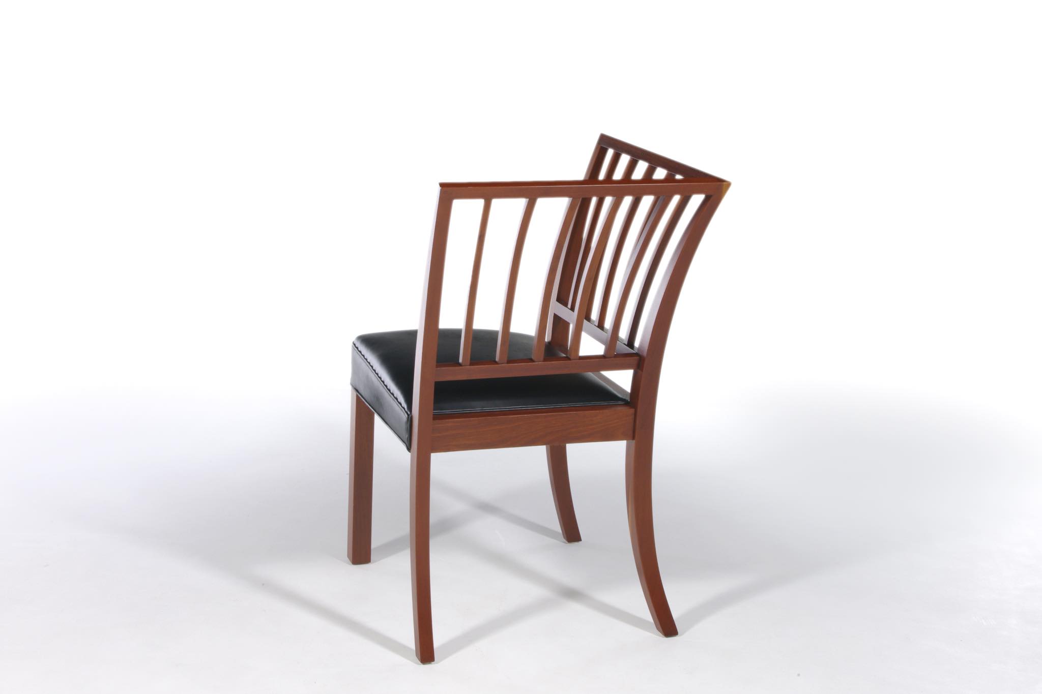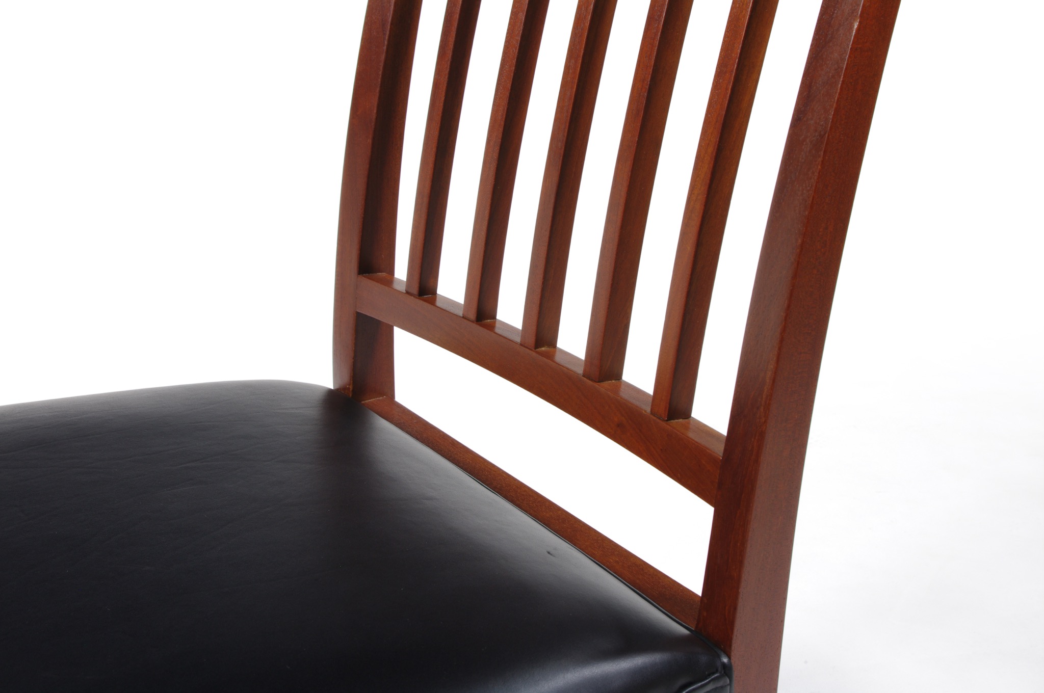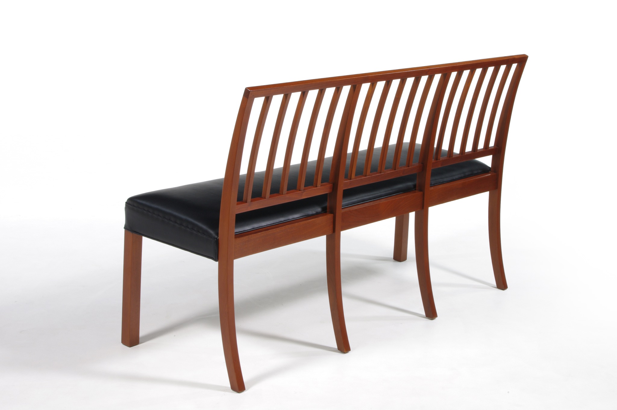20世紀前葉に活躍したデンマークの建築家、Kaj Gottlob/カイ・ゴットロブによるベンチシートタイプのダイニングセットです。名工 A.J.イヴァーセンによって1934年に発表されたモデルで、こちらのセットもその当時作られたものでしょう。キューバンマホガニーと思しき良質な材が用いられております。テーブルにはエクステンション機能が備わり、天板の拡張が可能です。椅子のシートは黒色皮革にて張り替えており、とても綺麗な状態です。サイドチェアx3脚、3人掛けベンチ、2人掛けベンチ、コーナーベンチ、テーブルとの計7点セットとなり、テーブルを伸ばせば7人くらいはゆったり座れそうです。