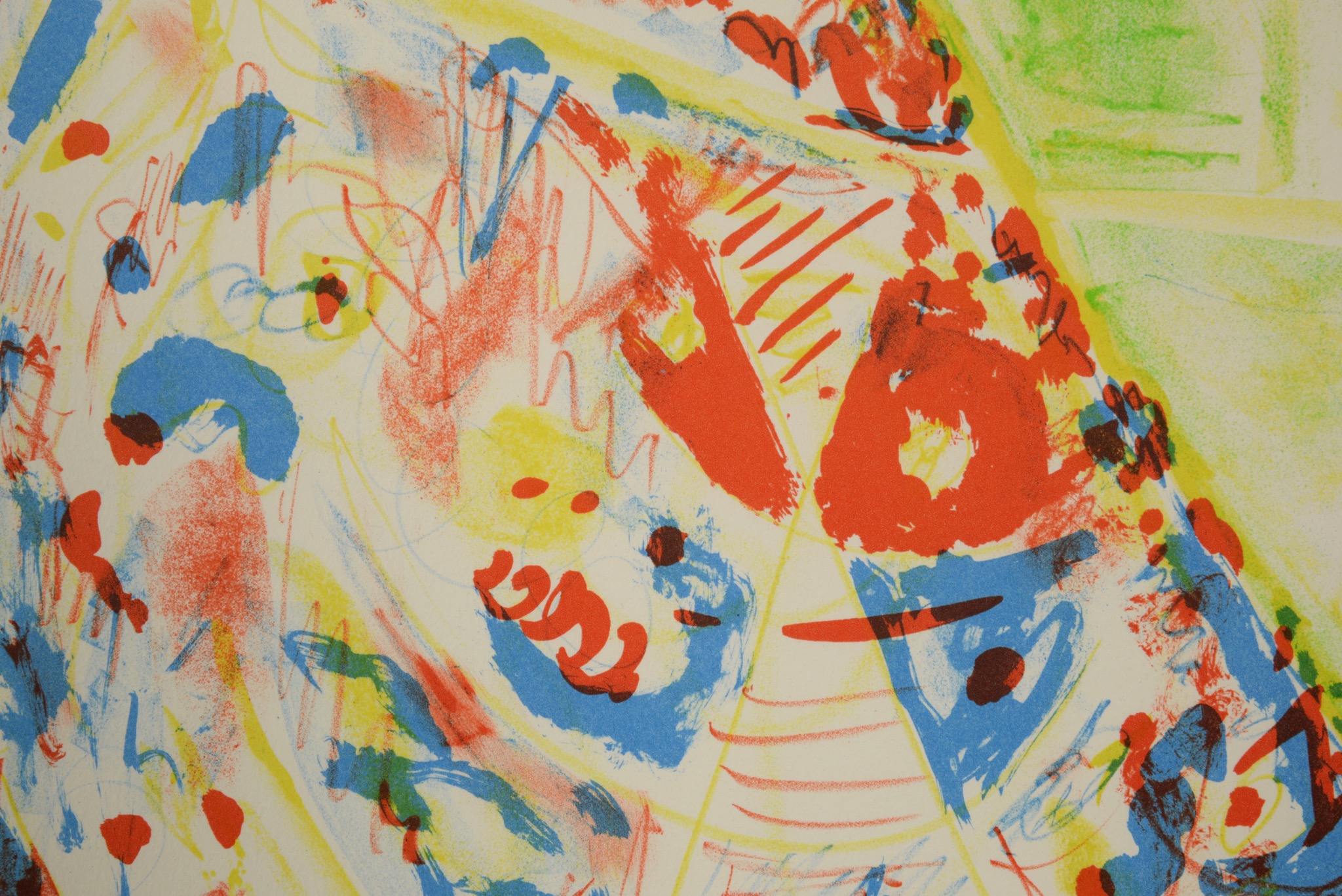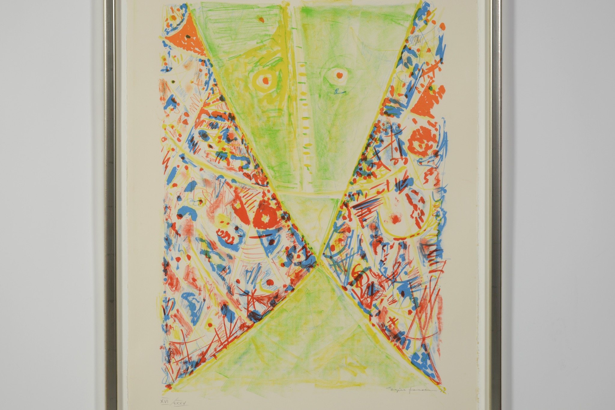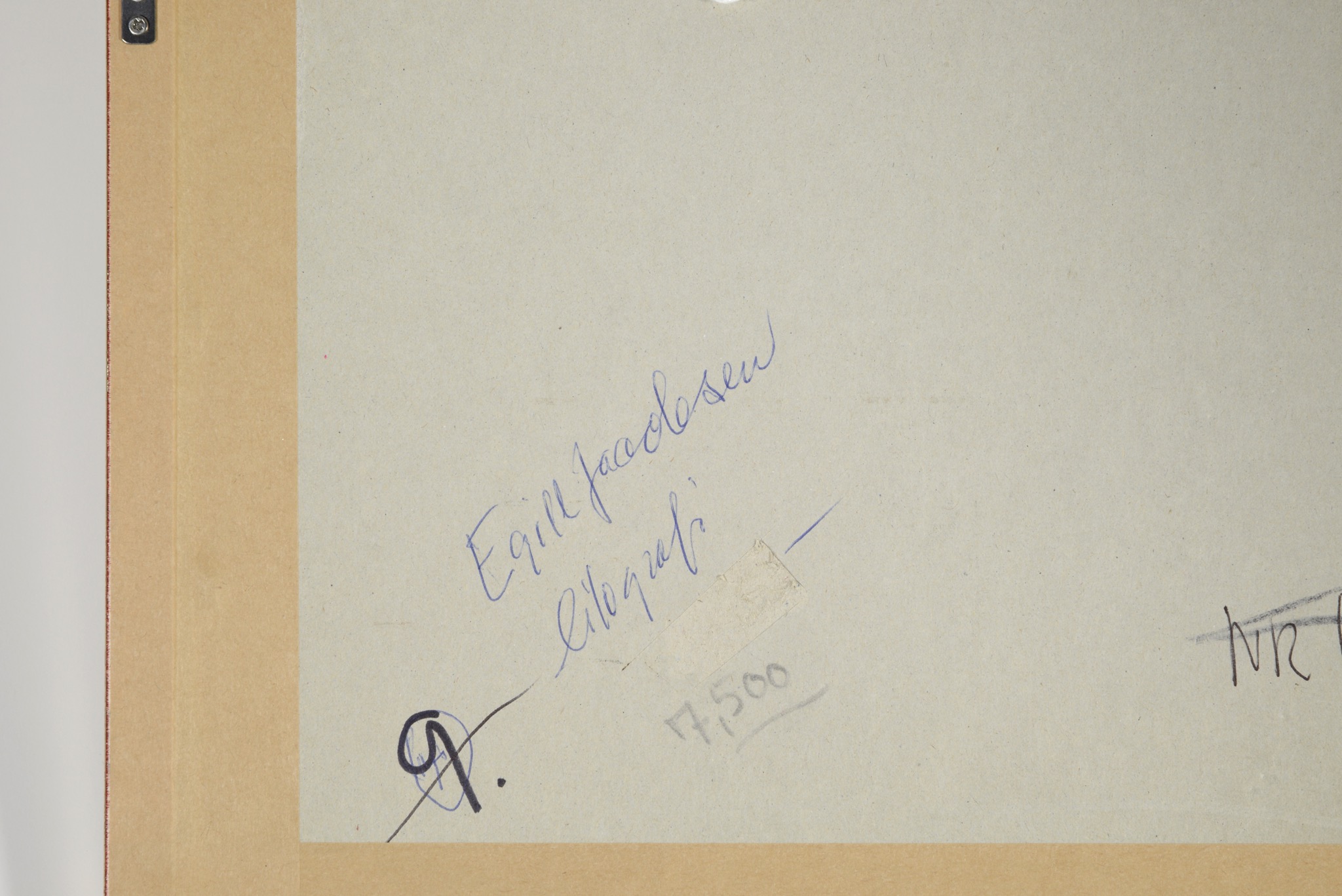 デンマークを代表する前衛芸術家の Egill Jacobsen/エギル・ヤコブセンによるリトグラフ作品、1971年に擦られたものです。エディションは35と少なめです。フレーム、マット共に新調しました。