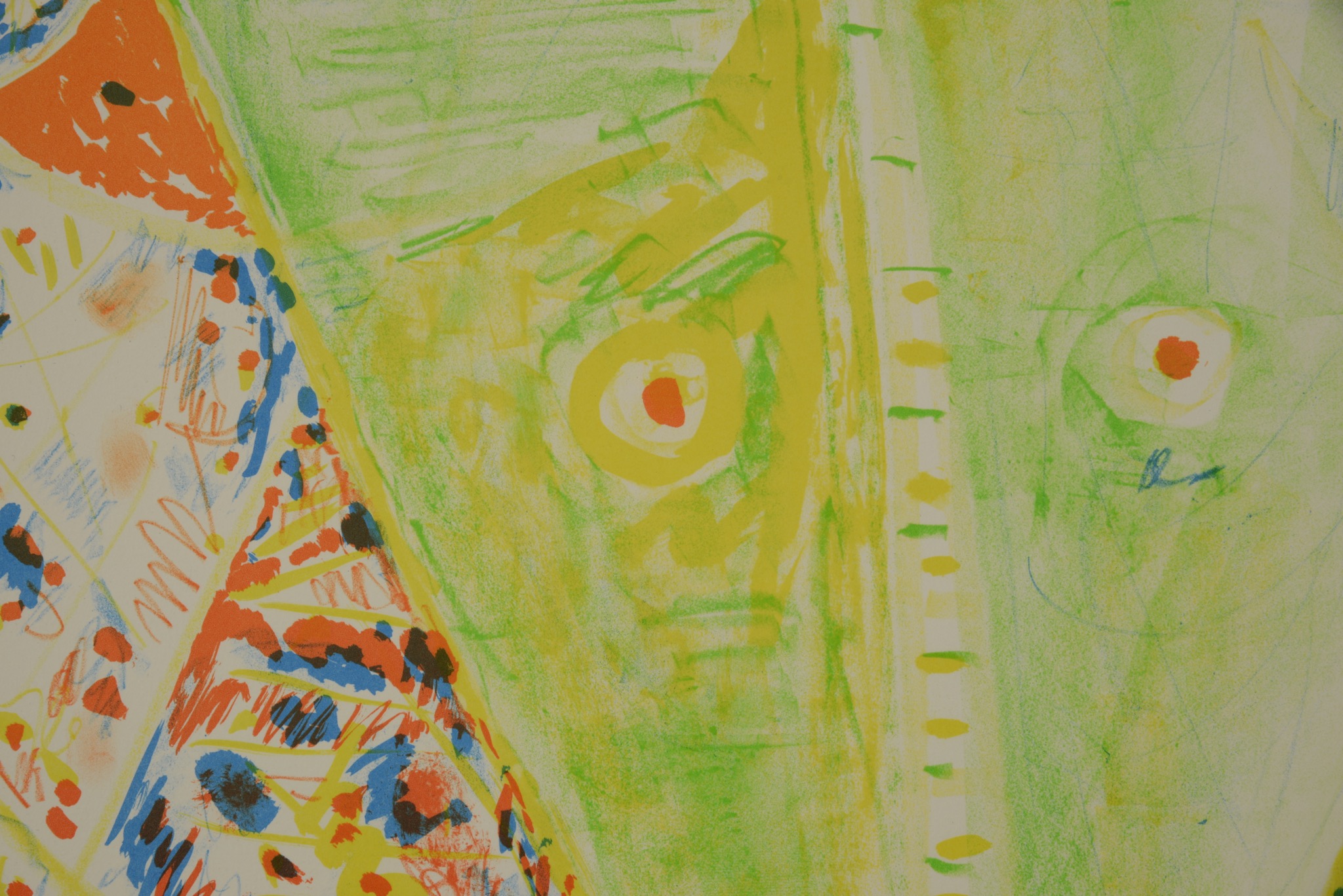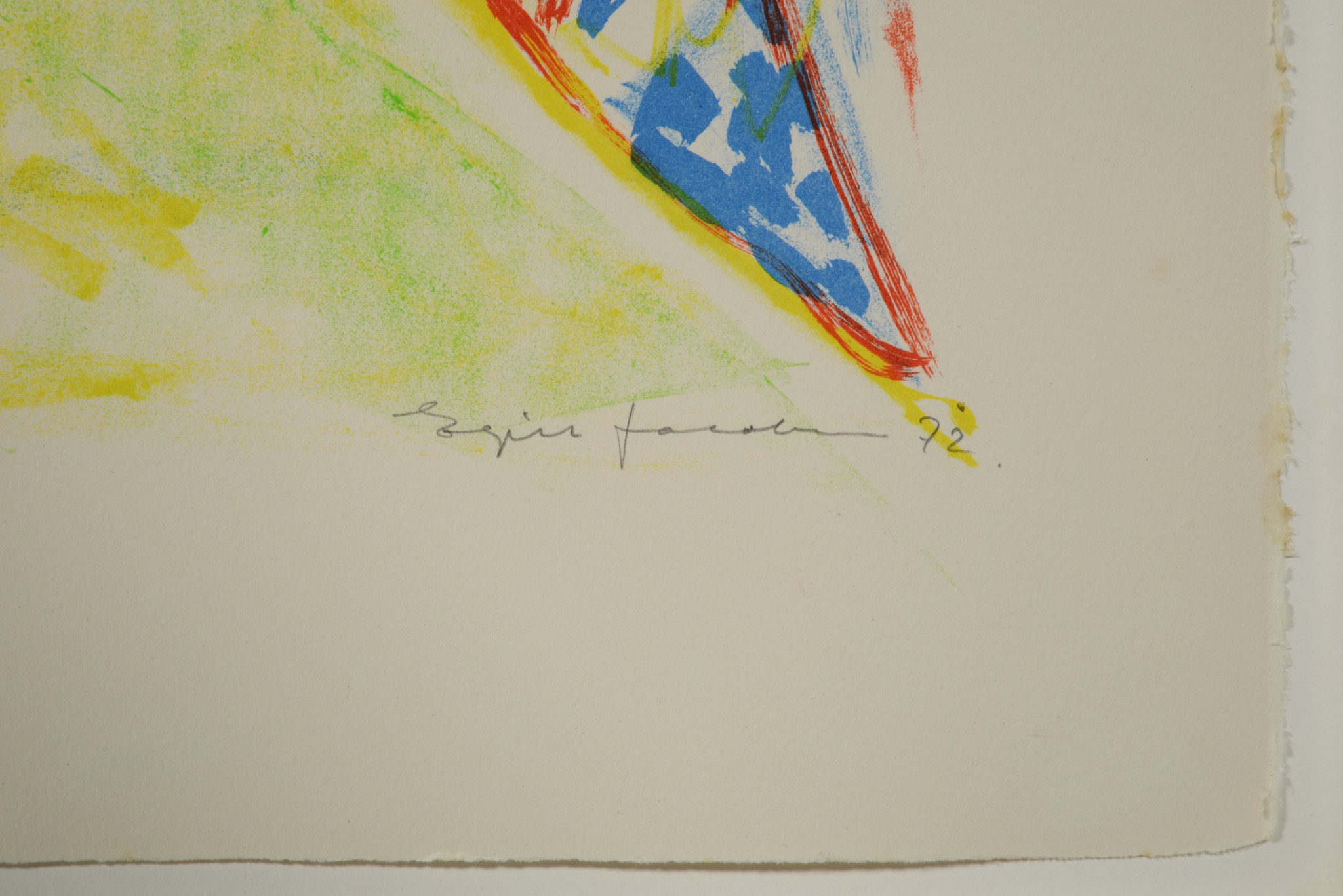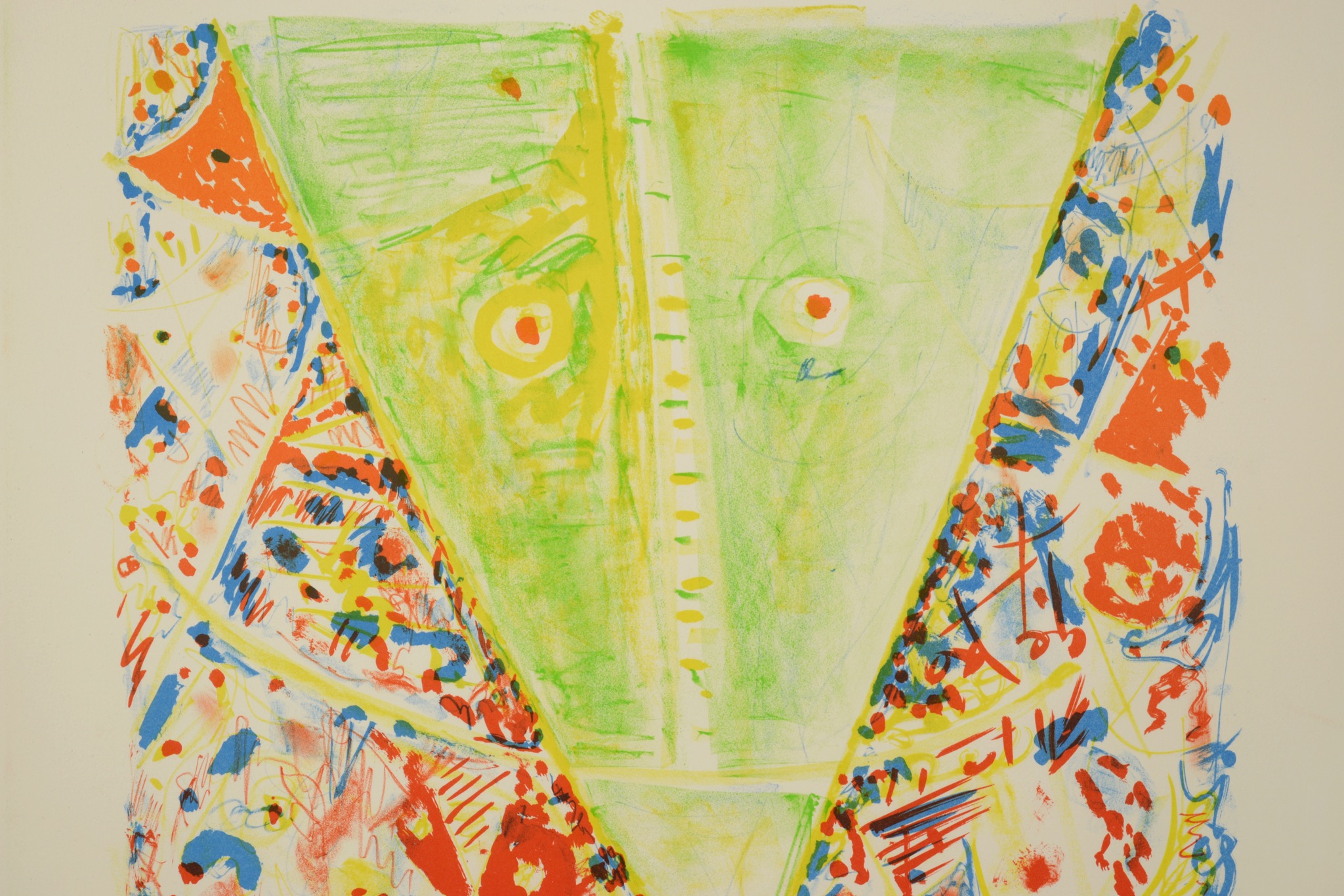 デンマークを代表する前衛芸術家の Egill Jacobsen/エギル・ヤコブセンによるリトグラフ作品、1971年に擦られたものです。エディションは35と少なめです。フレーム、マット共に新調しました。