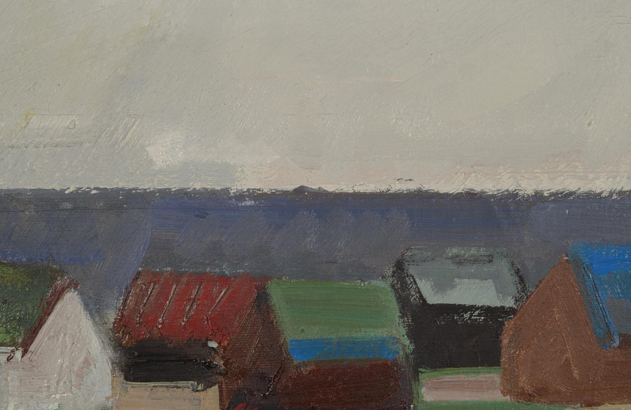 デンマーク人画家、グラフィックアーティストのジャック・カンプマンは、デンマーク人の両親のもとイギリス・ロンドンに生まれ、第二次世界大戦後、デンマーク領のフェロー諸島に定住し、島に見られる起伏のある荒涼とした風景や集落を描き続けました。画家としての活動に留まらず、美術教師として教壇にも立ちました。