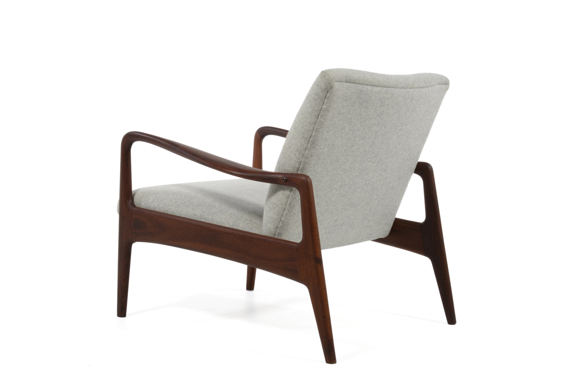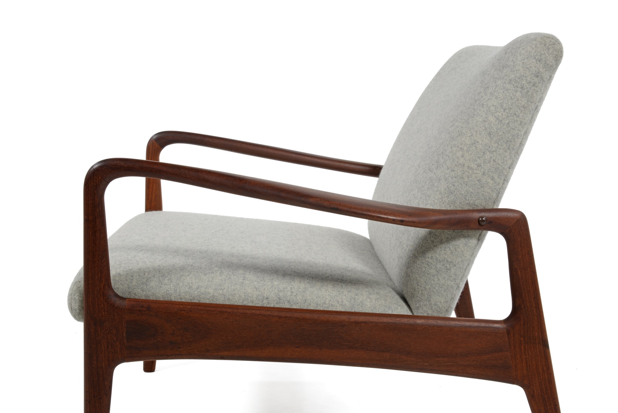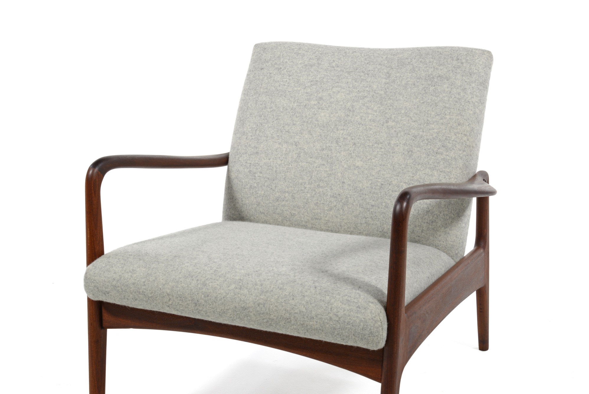 デンマークの家具デザイナー、イップ・コフォド・ラーセンのデザインと伝えられているイージーチェアです。フレームにはアフロルモシア材を用いており、低めのシートは座りやすく、ミッドセンチュリー期の趣のある椅子です。