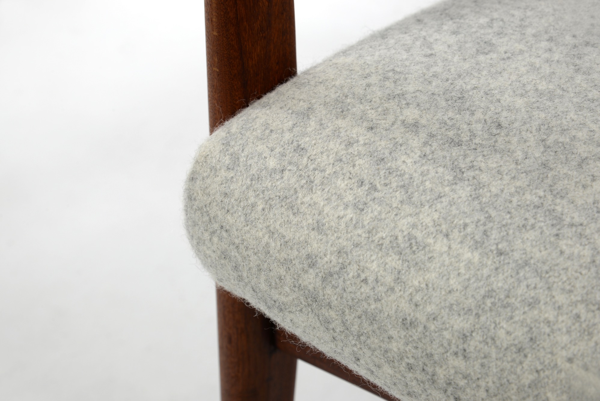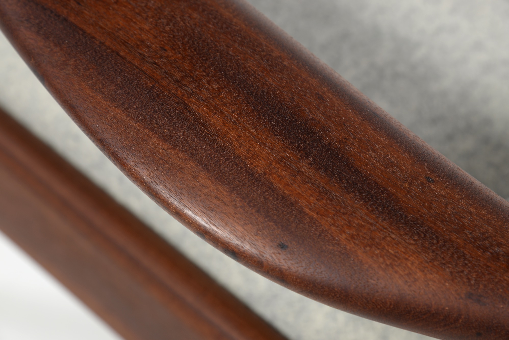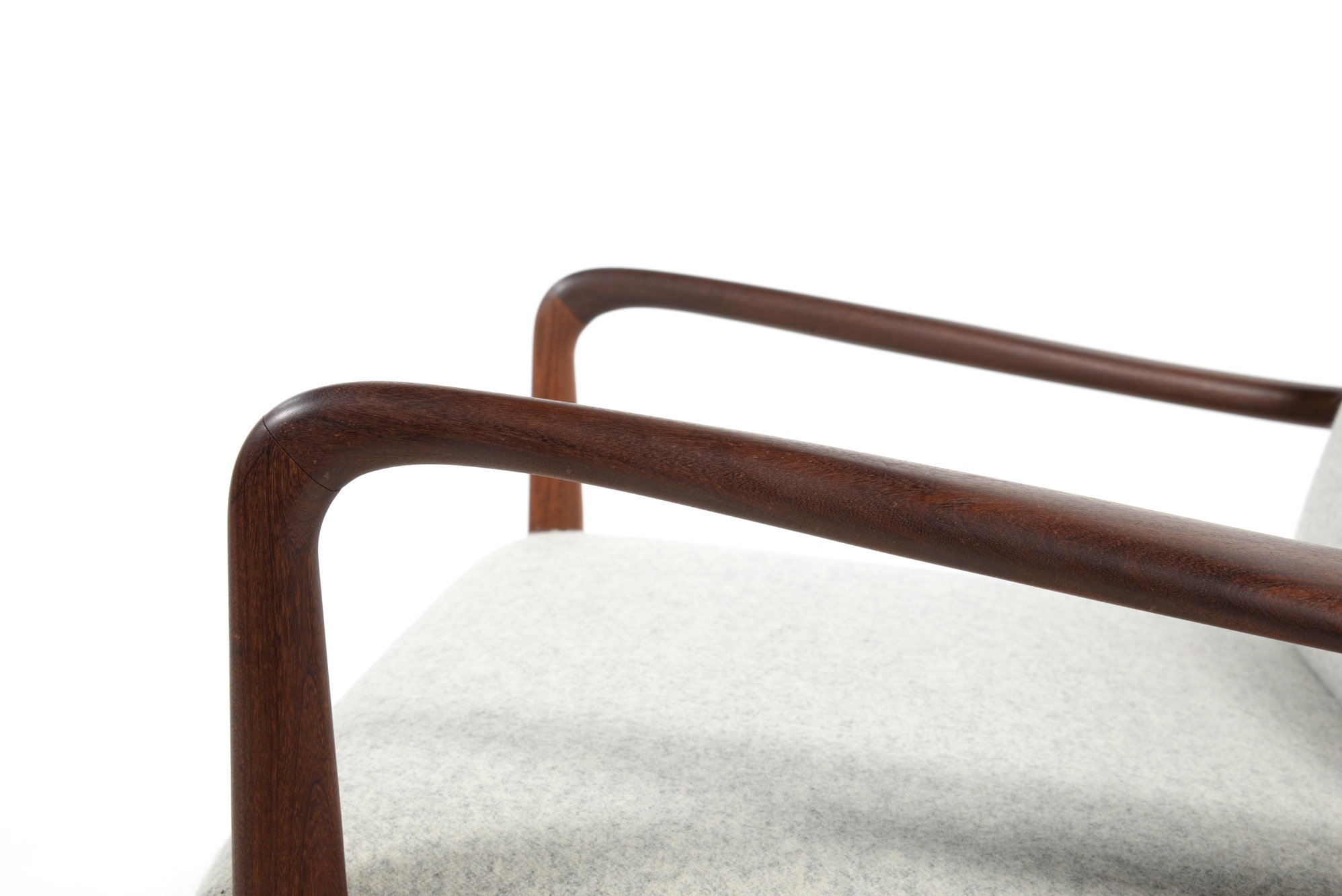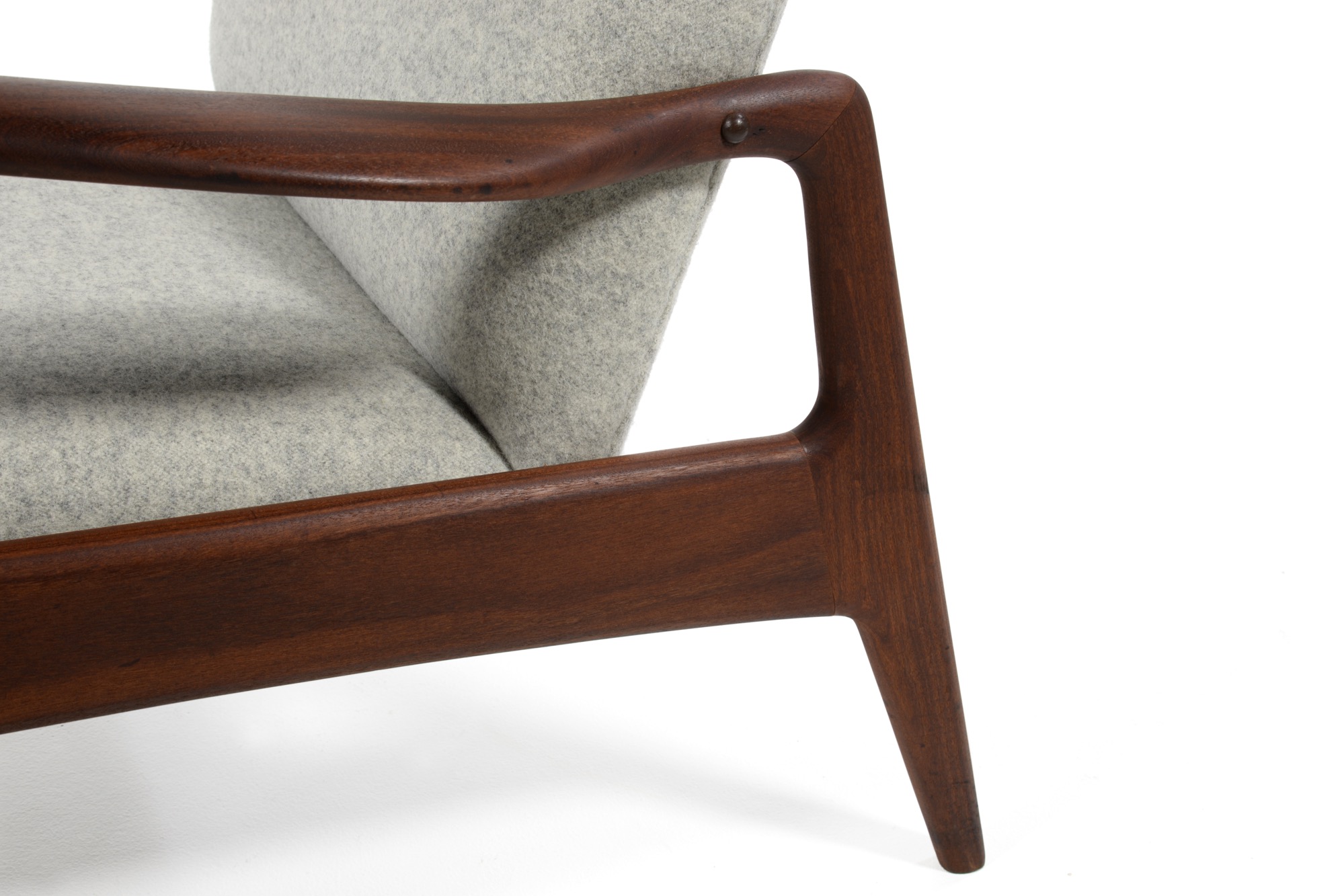 デンマークの家具デザイナー、イップ・コフォド・ラーセンのデザインと伝えられているイージーチェアです。フレームにはアフロルモシア材を用いており、低めのシートは座りやすく、ミッドセンチュリー期の趣のある椅子です。