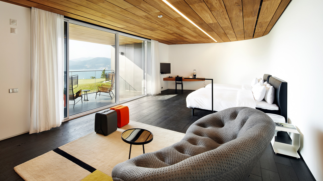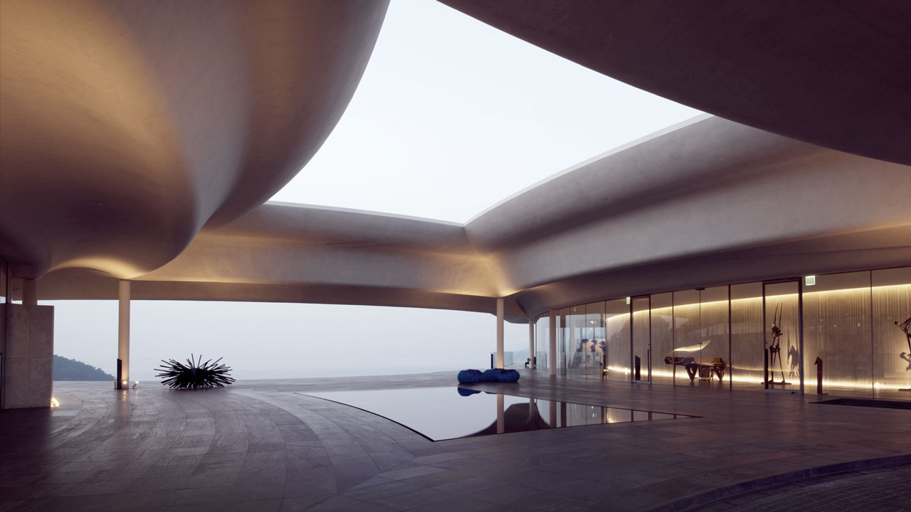 サウス ケープ スパ アンド スウィートは朝鮮半島の南海に面した、ゴルフも楽しめる複合リゾートです。海へとひらけた、このラグジュアリーなリゾートはゲストへ「究極の癒し」を提供しています。コンクリートの壁が建物に沿って波のようにうねる外観は、ダイナミックでまるで空に浮いているかのようです。客室はDUXベッドとリーンロゼの家具で設えられ、ジェネーバサウンドシステムを楽しめます。また、アメニティにはイソップが採用されています。館内に点在する珍しいピアノやアートワークも必見です。