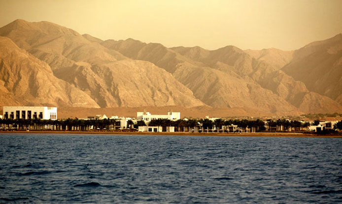 ザ・ チェディ マスカットは雄大なハジャール山脈がオマーン湾の穏やかな水面に映える場所にあります。