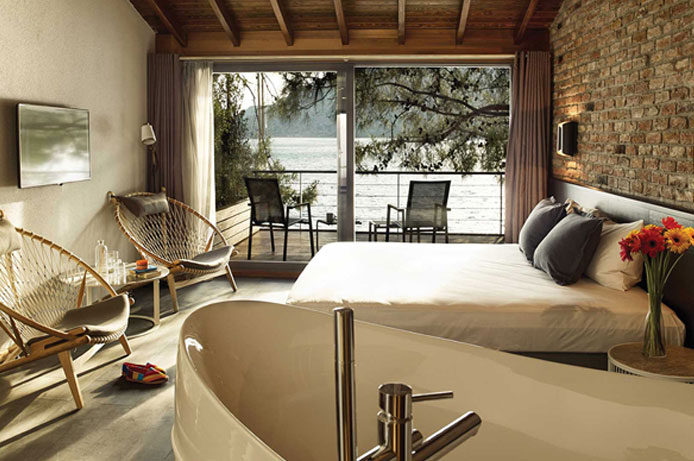 客室は最も美しく海が見渡せ、太陽の光が降り注ぎ、松をはじめとする野生の植物達が作る木陰が心地よい場所に作られています。