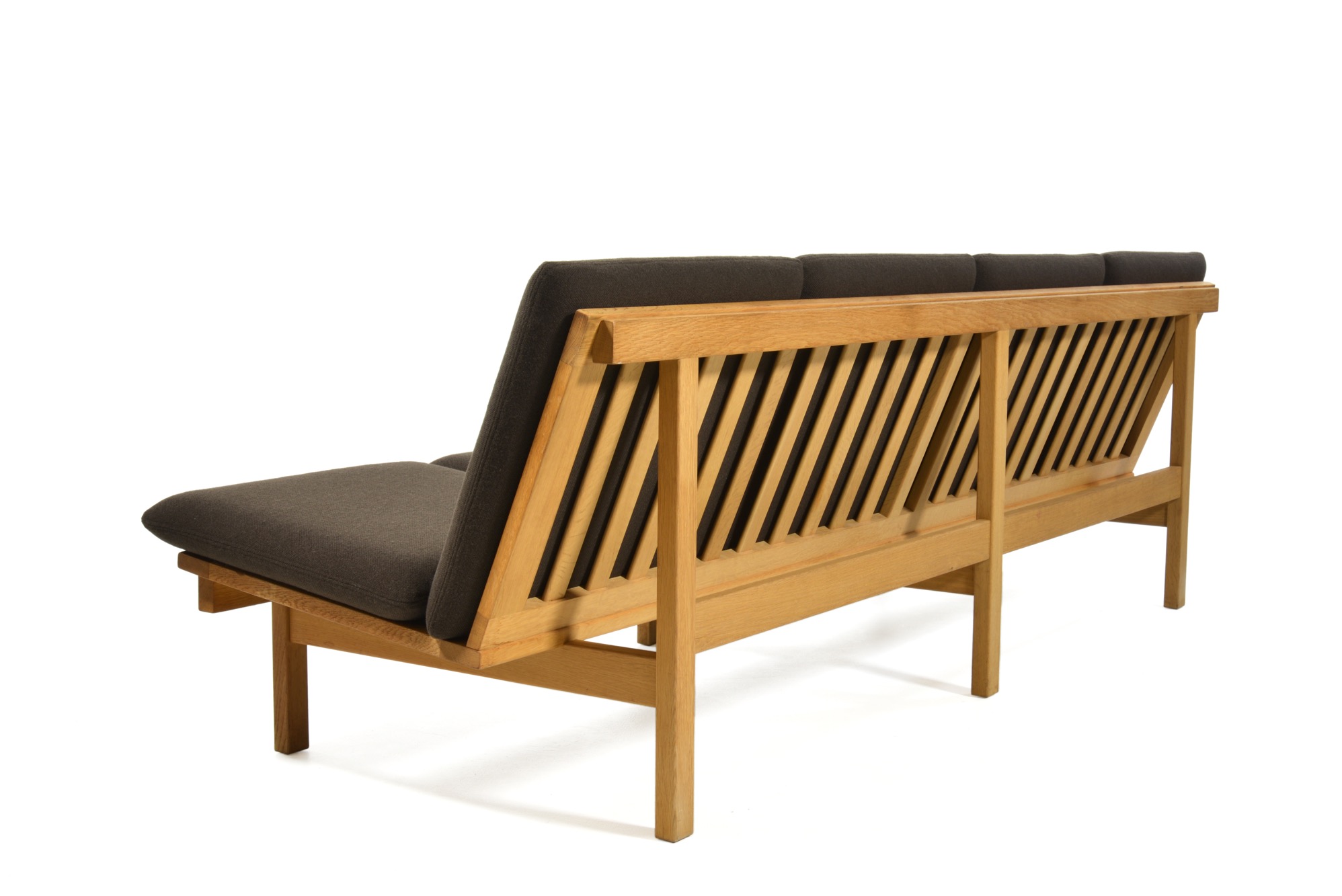 ボーエ・モーエンセンによるロングソファです。アームのないデザインはシンプルで、大きさの割に空間を遮りません。