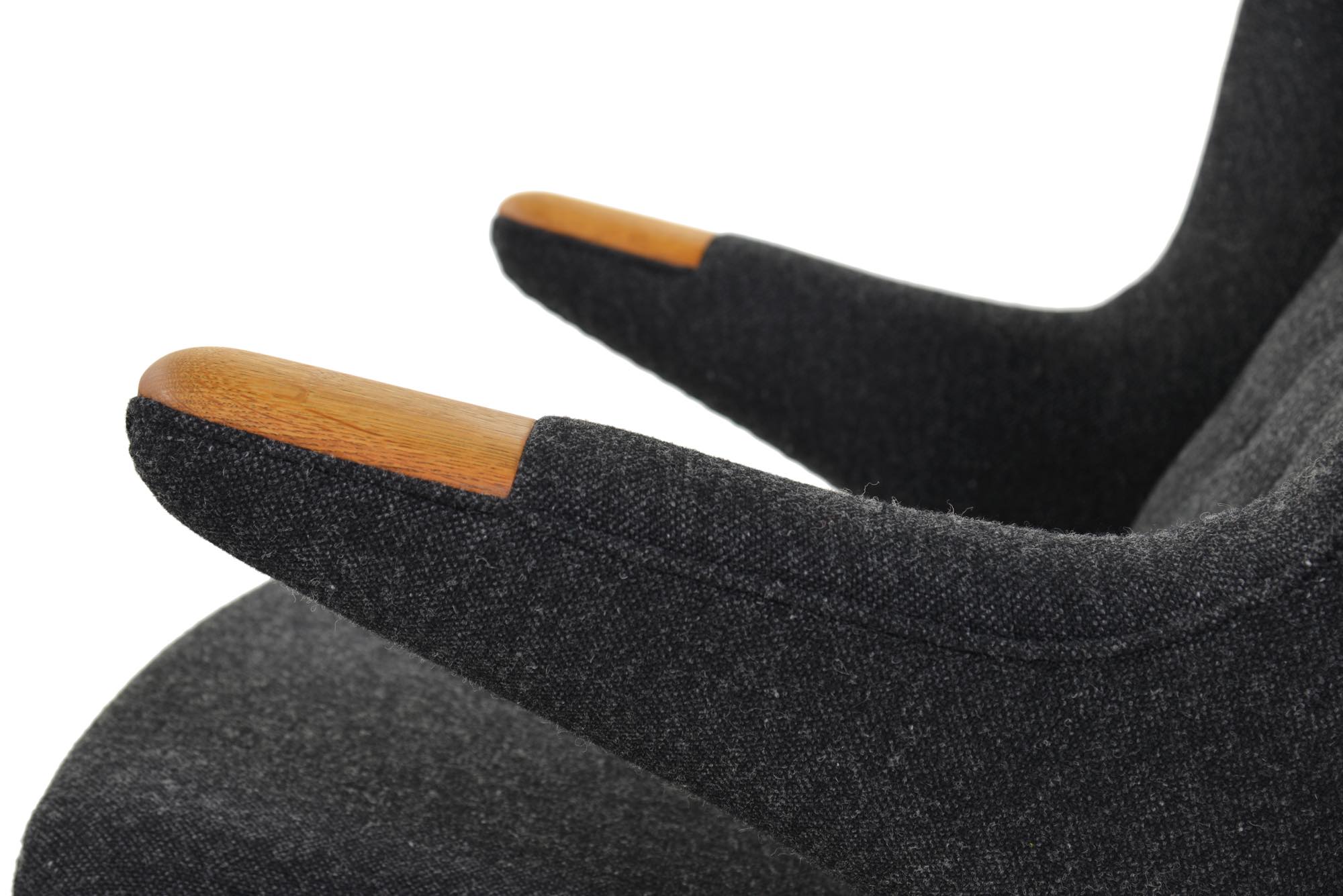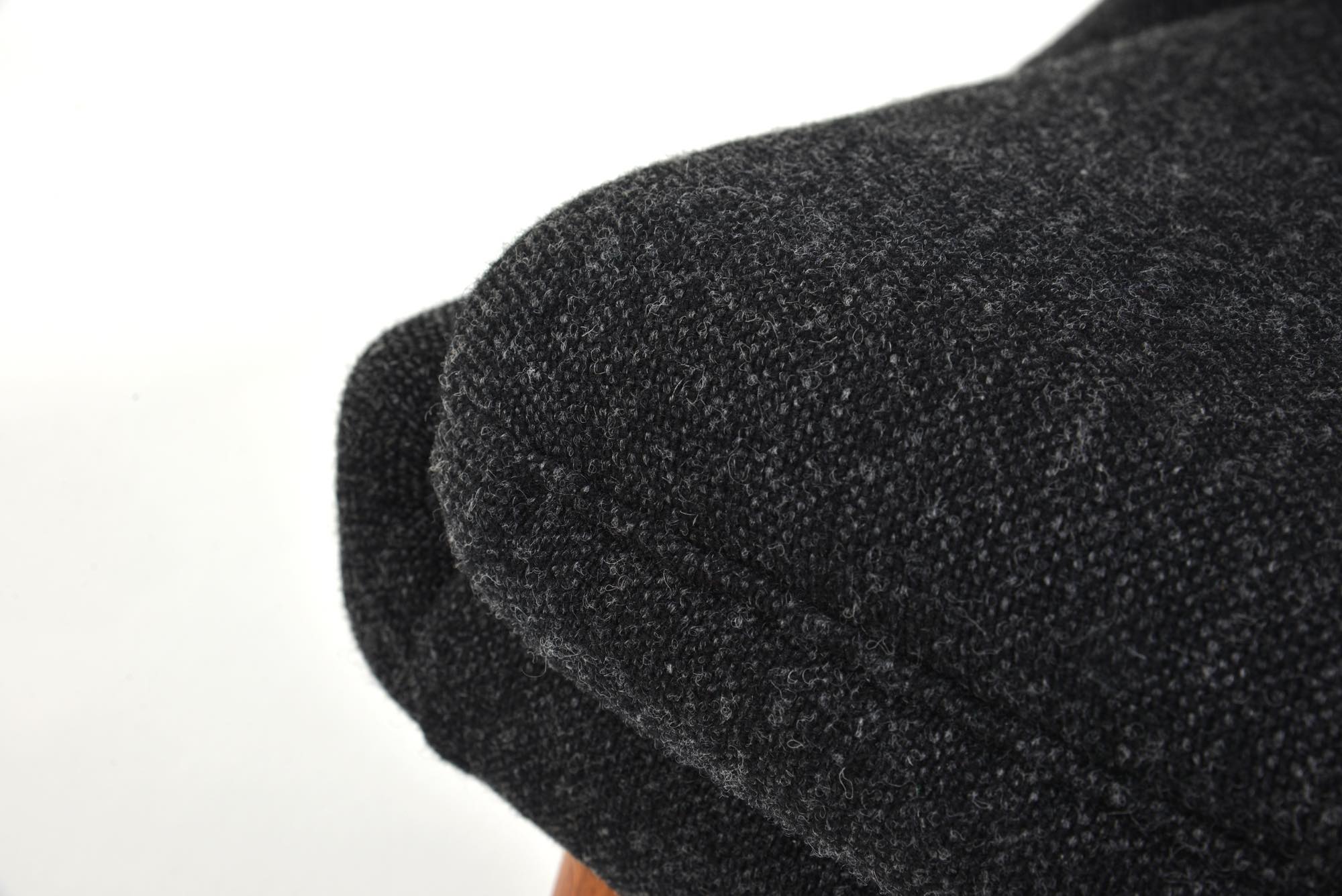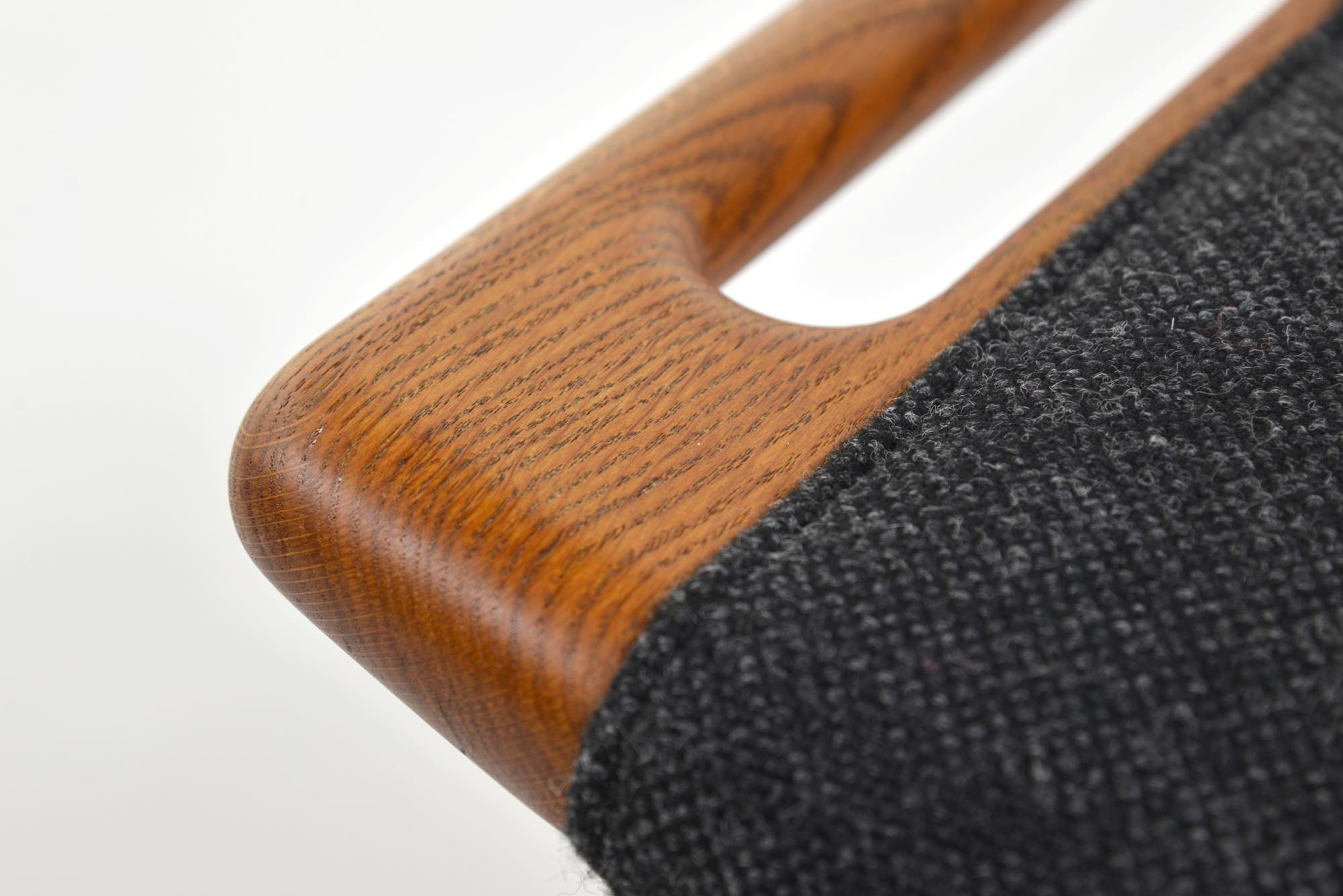 ハンス・ウェグナーによる名作椅子 ”パパベア” のフットスツール付き、爪と脚はオーク材のタイプです。特に爪の木取りには、肌理が細かく柾目の通った良質な材が用いられています。クヴァドラのHallingdal 65にて近年張り替えられています。