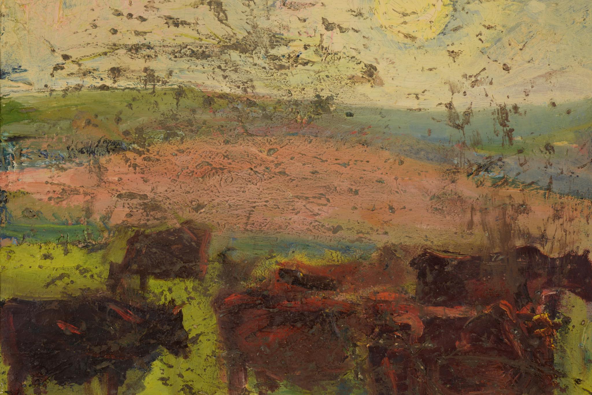 デンマークの画家、Robert Dueholm Jessen/ロバート・デューホルム・イェッセンによる油彩作品です。冬の情景でしょうか。板に油彩で描かれています。背面にも習作があるため背板をアクリルに交換しました。