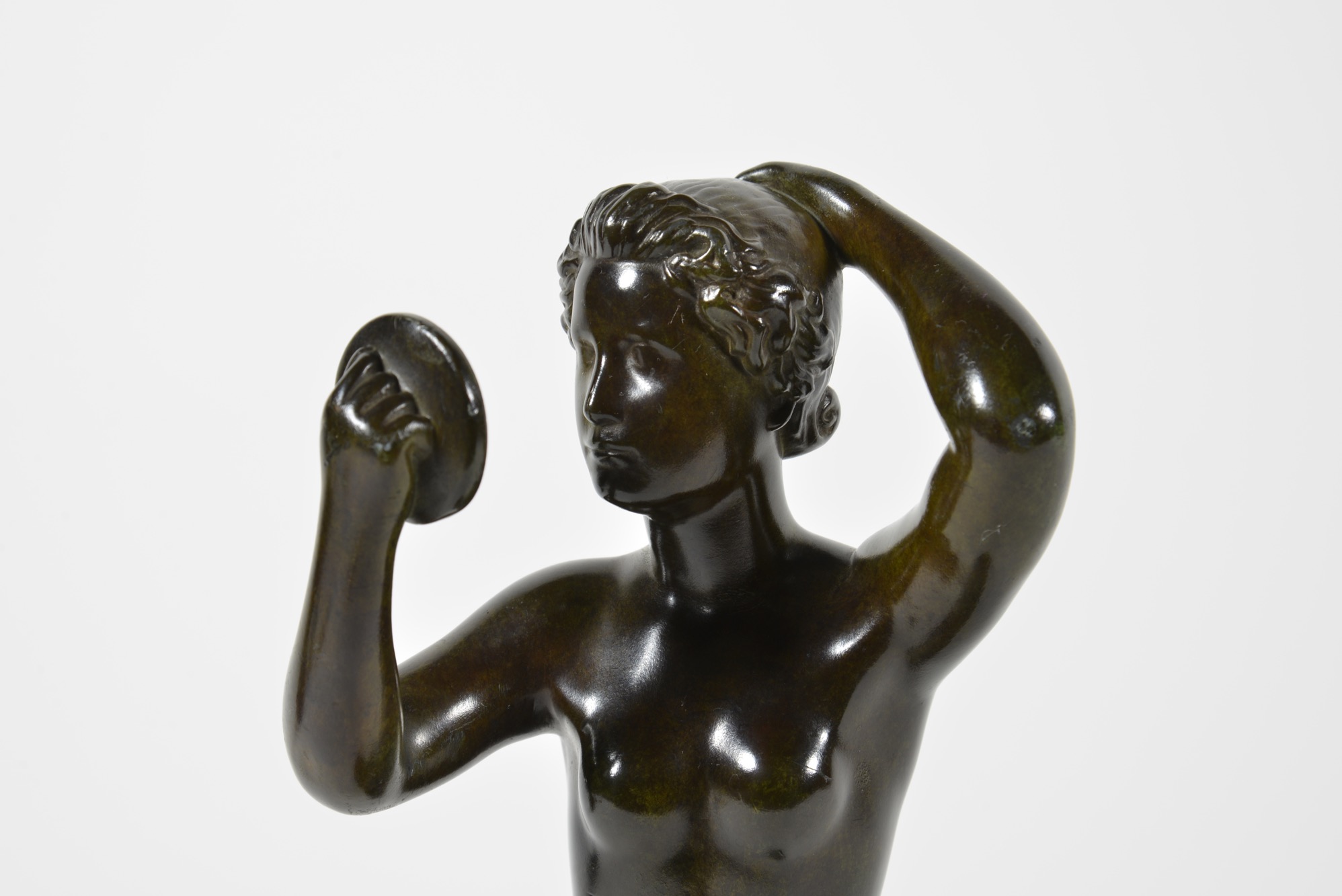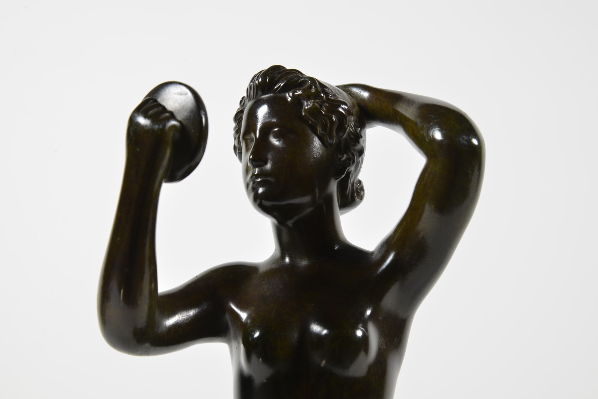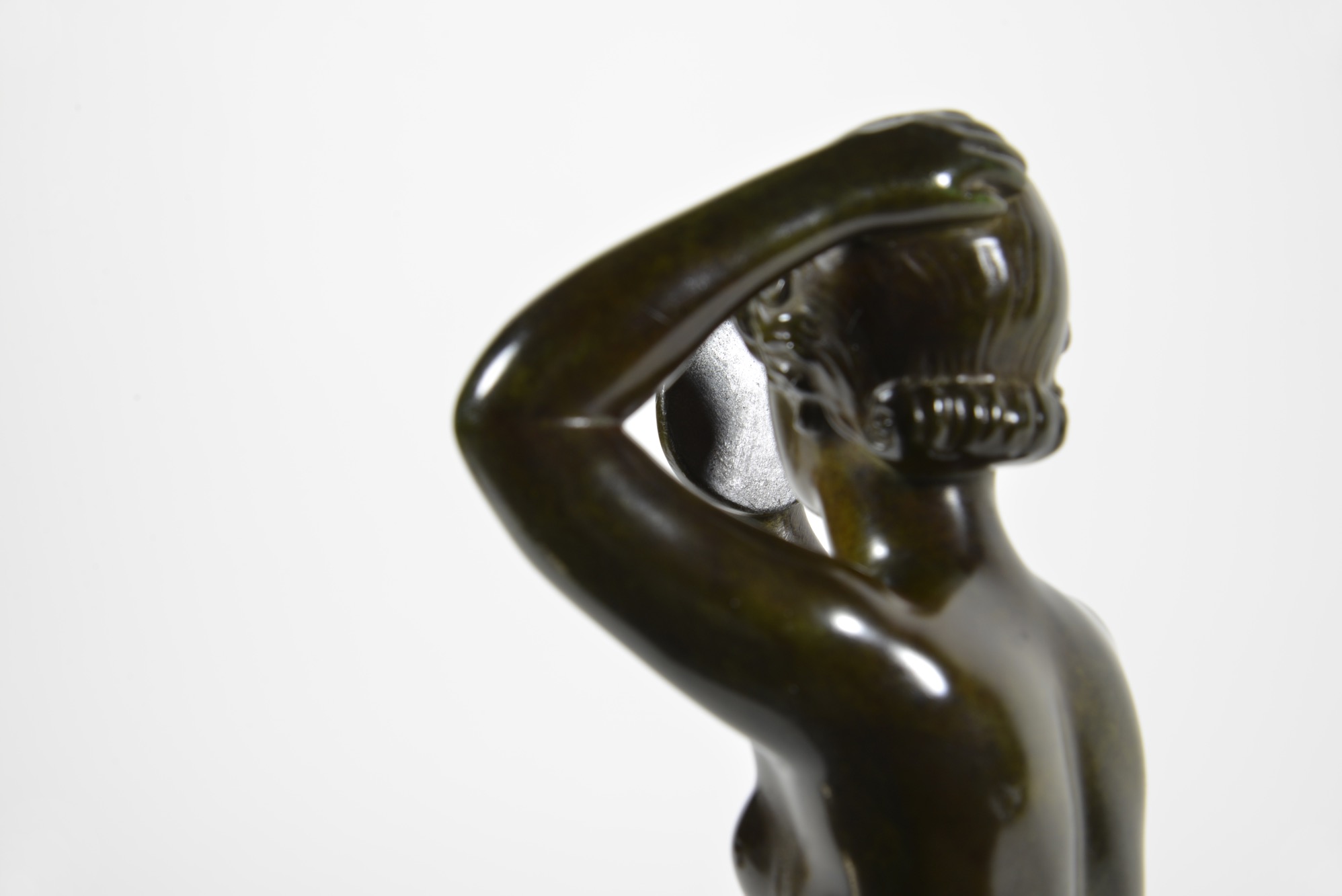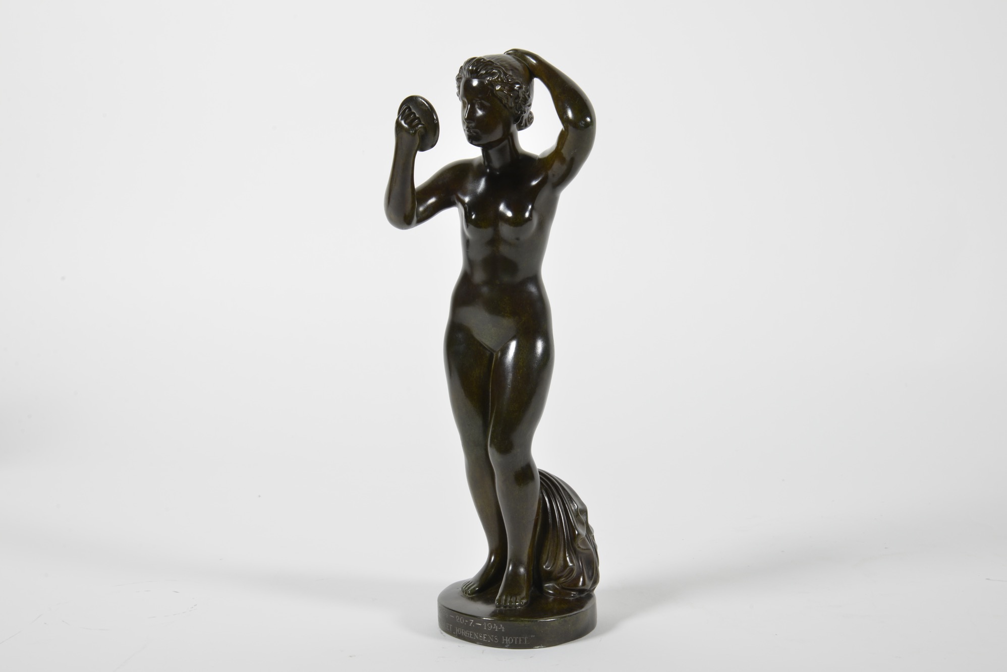 デンマークの金工家、ユスト・アナセンによるディスコメタルのフィギュア “Kvindefigur” 鏡を見る女性の立像です。台座に記念が入っています。