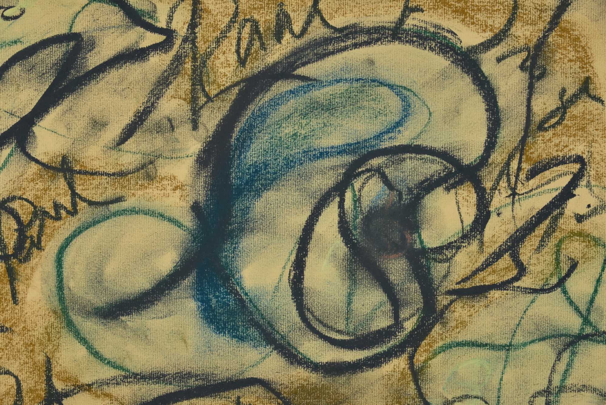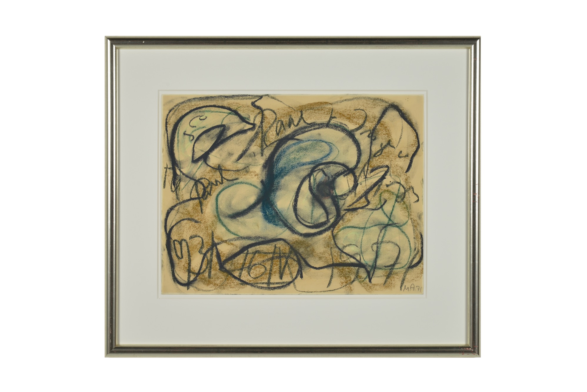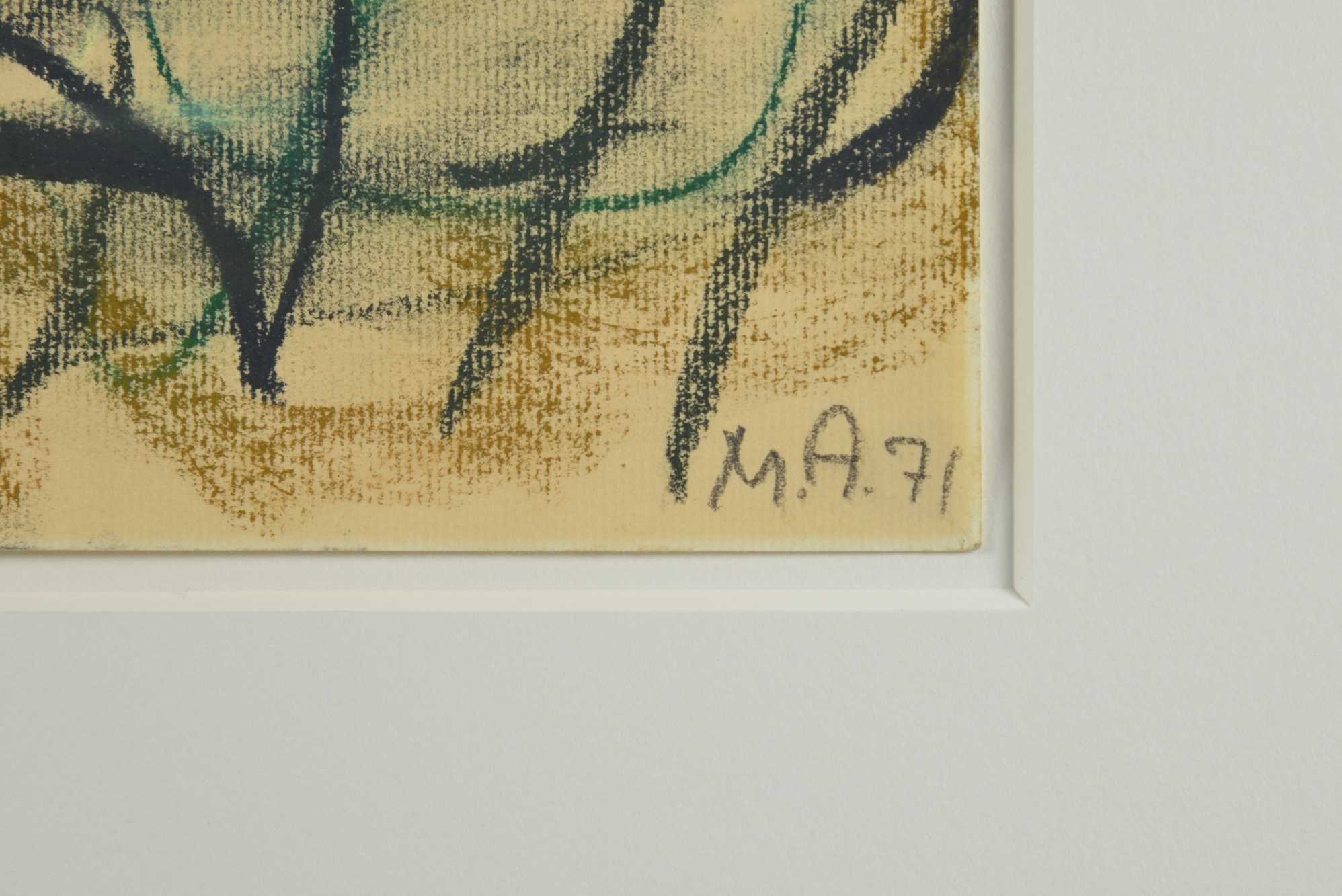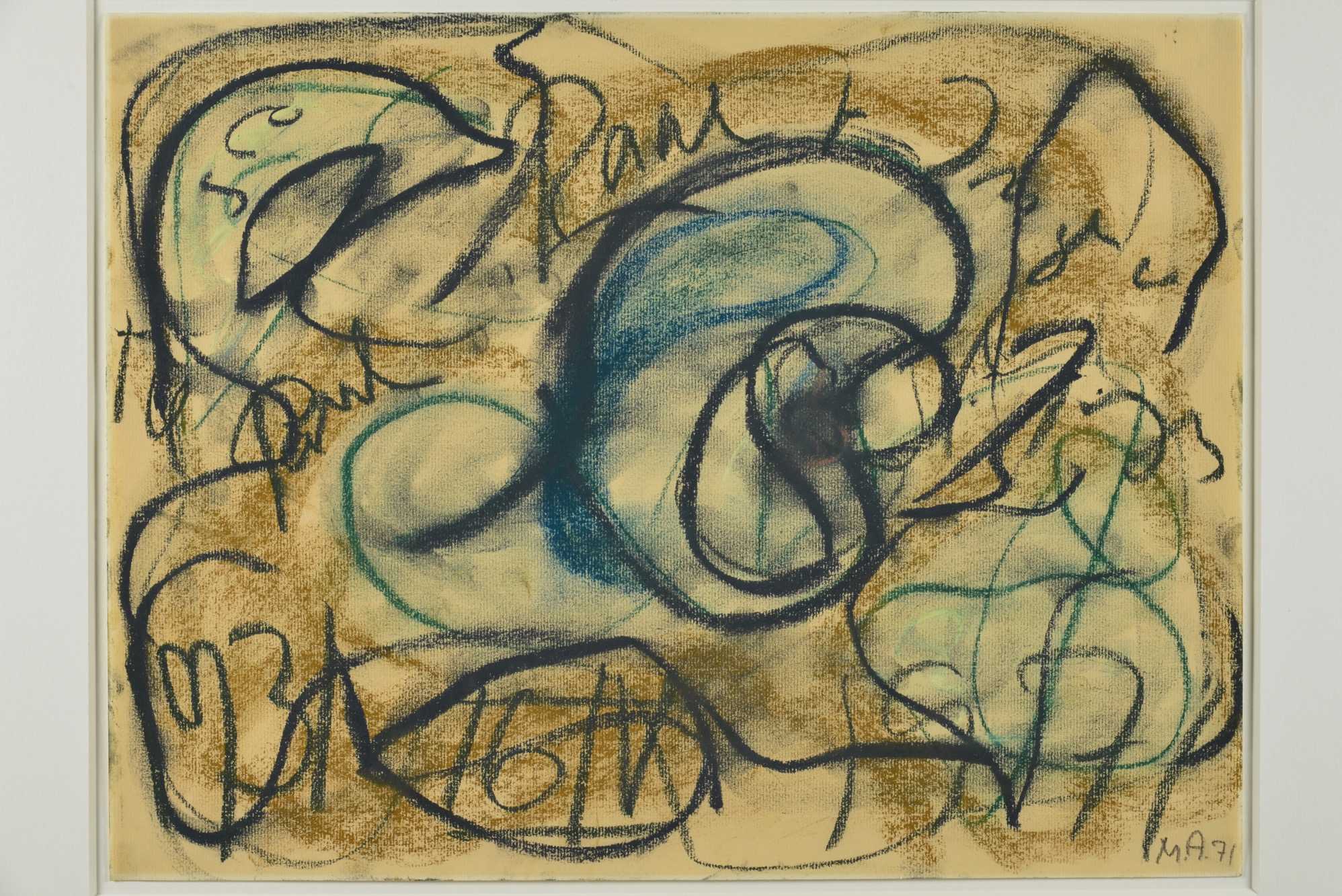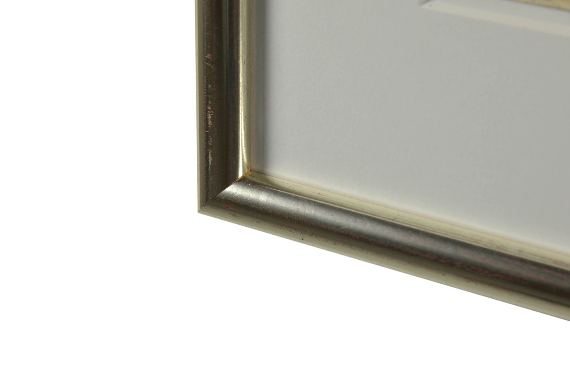 デンマークの芸術家、モーエンス・アナセンによる手描き作品です。クレヨンを用いて1971年に描かれたもので、画材特有の滲み感もあわせて表現されています。オリジナルと思しき銀箔のフレームはそのままに、マットを差し替えました。