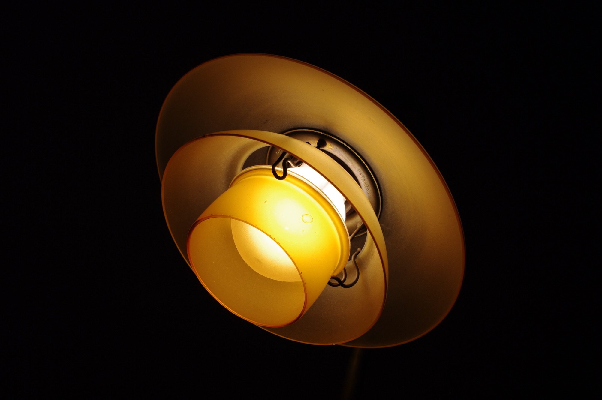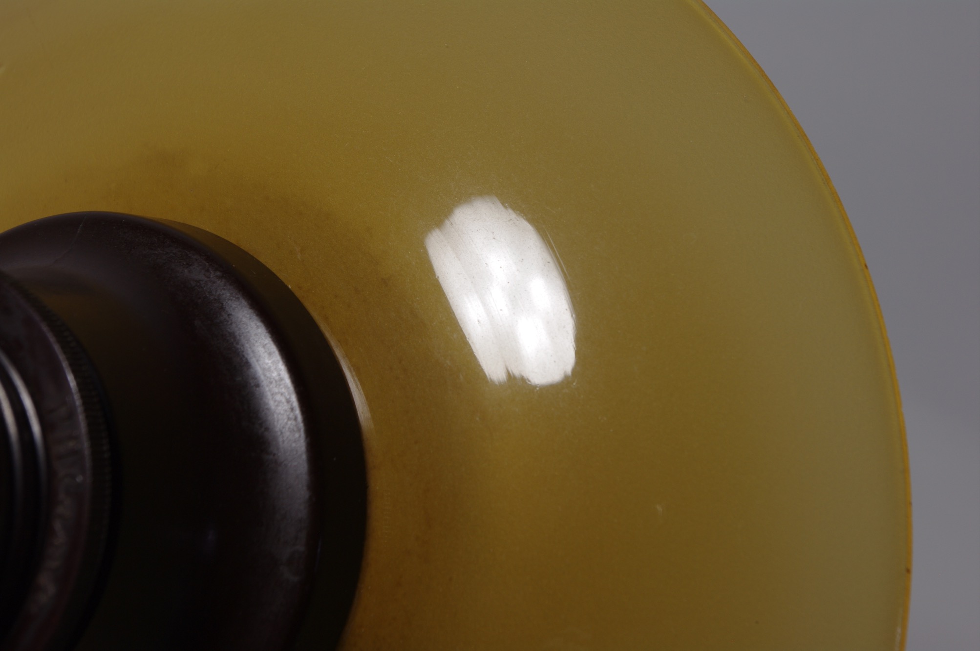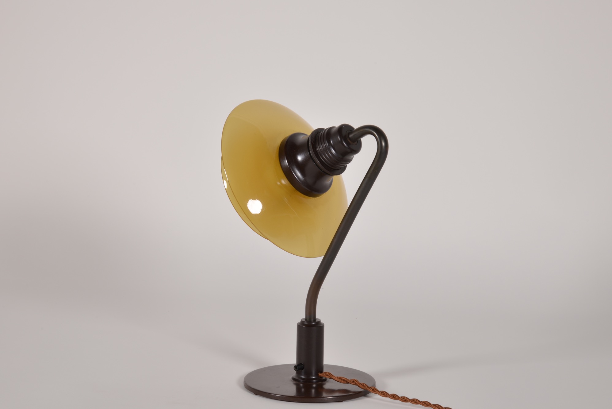 ポール・ヘニングセンによるPH2/2 ”スノードロップ” テーブルランプです。1930年代に作られたものでしょう。ソケットはベークライト製、銅の支柱にアンバーガラスのシェードが相まって美しい佇まいを見せています。
