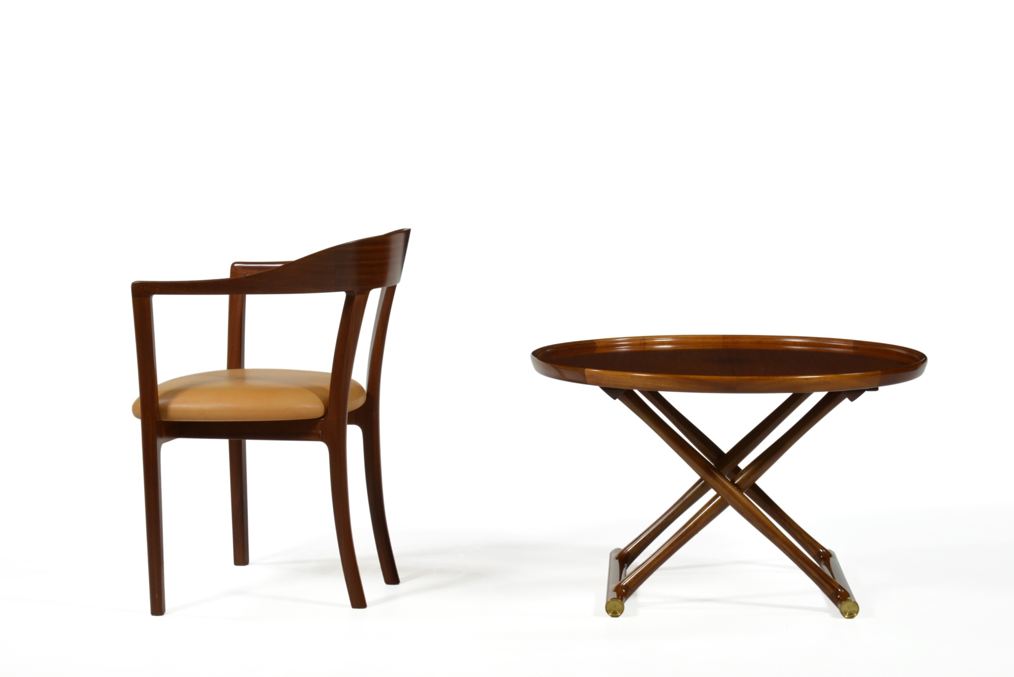 デンマークの建築家、モーエンス・ラッセンによる名作テーブル "エジプシャン" 小径タイプです。初期の工房、A.J. Iversenによって作られたもので、良質なマホガニー材が用いられています。天板の中央に花瓶を置いていた跡が見られますが、その他のコンディションは良好です。