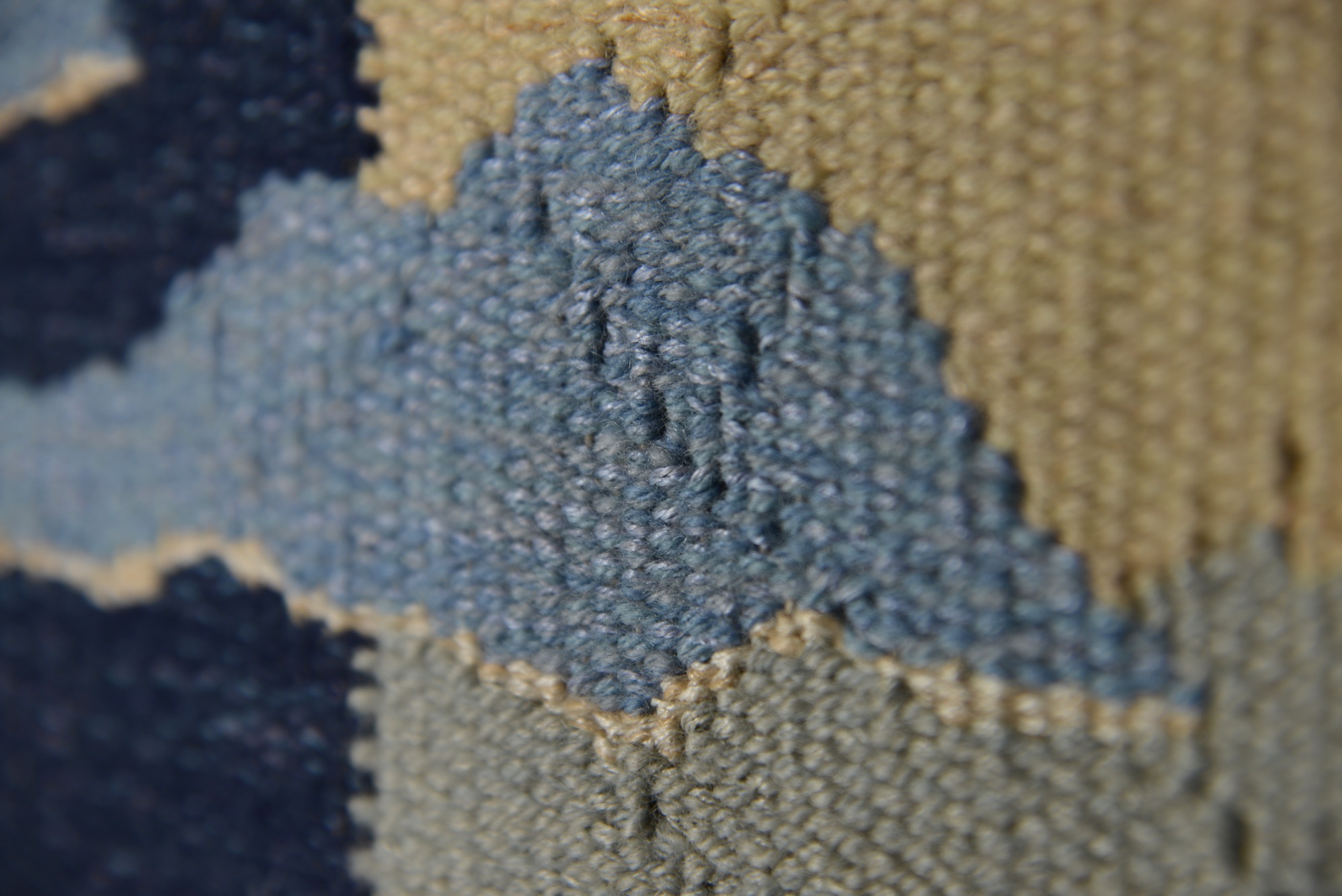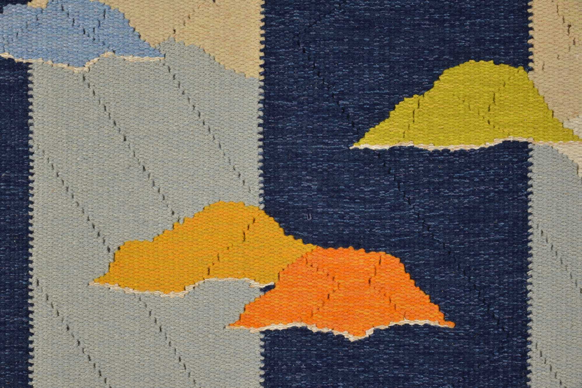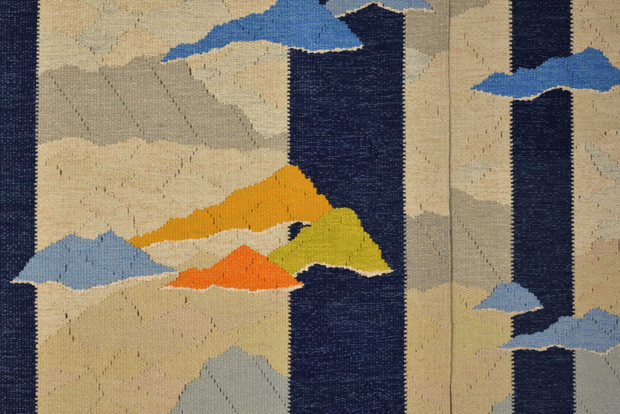 デンマークの工芸家、ヴィーベケ・グレガースによるタペストリー、"Travel Through Landscape" 三幅対の構成で、1981年に織られたものです。この作家についての情報は少なく詳細は判っておりませんが、教会のタペストリーや祭壇装飾を手がけており、表現やその技術が高く評価された作家のようです。