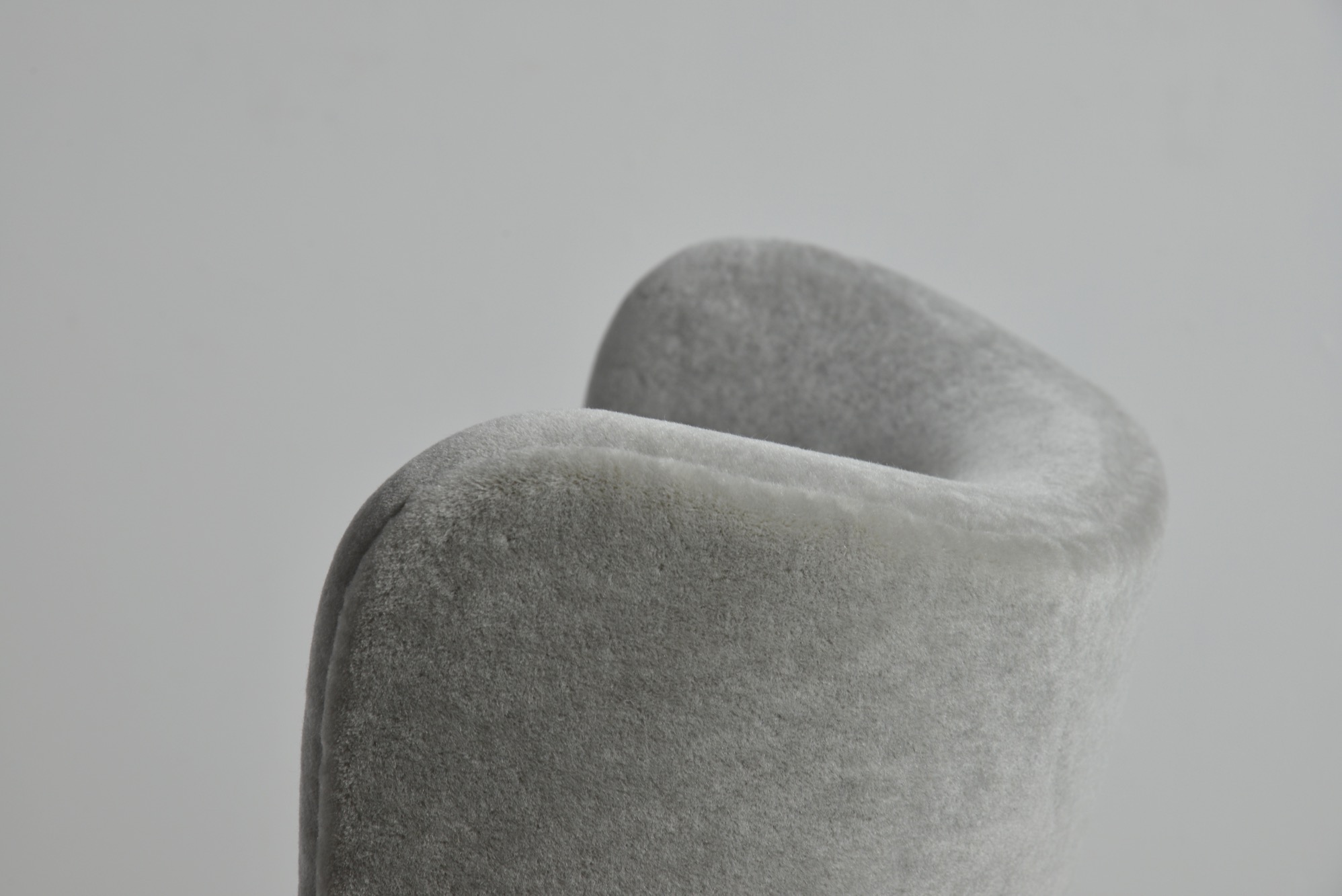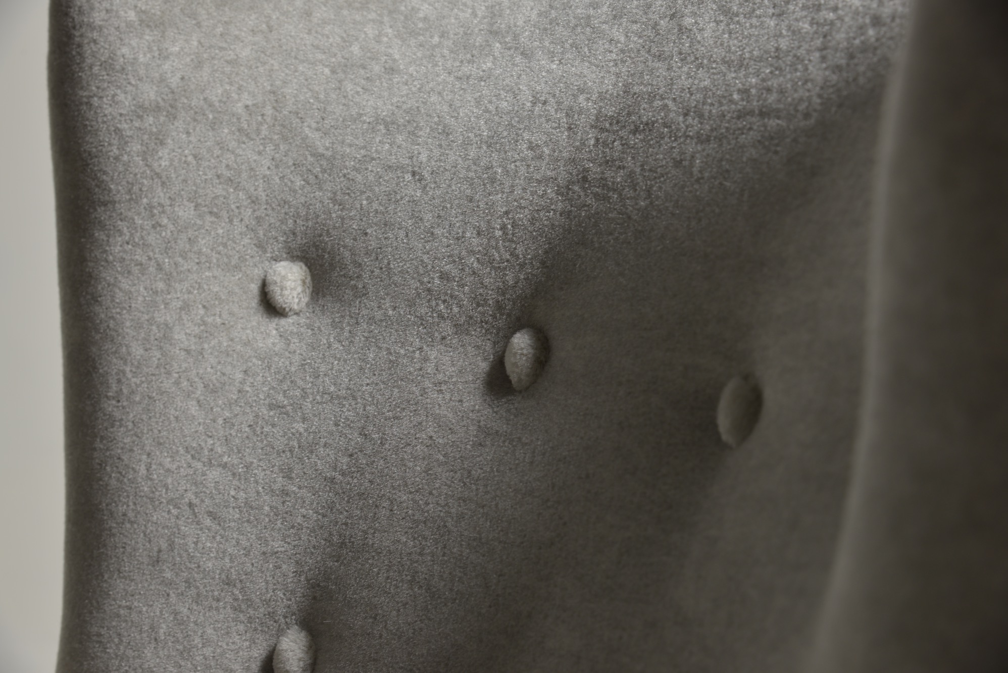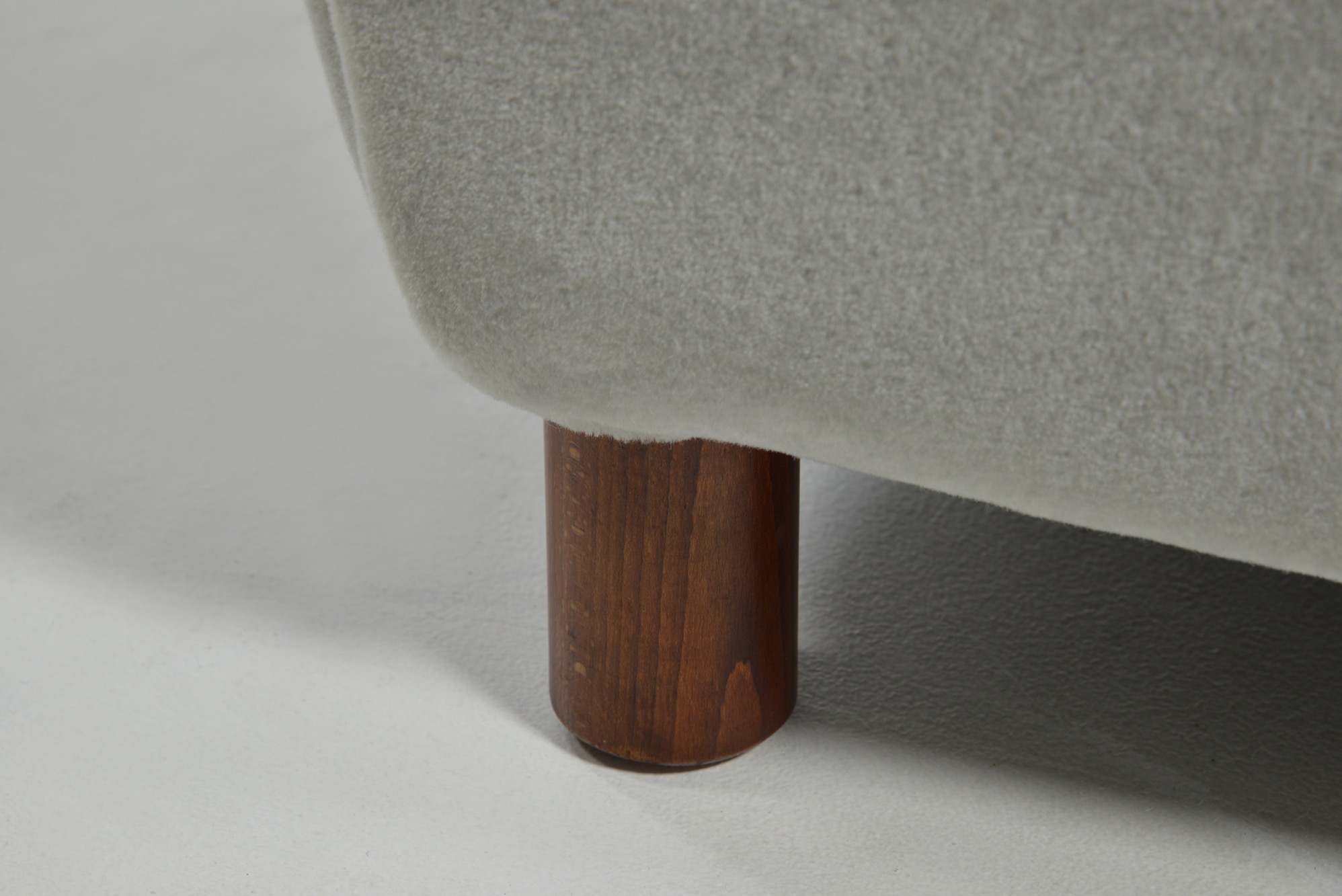 デンマークを代表する家具工房、フリッツ・ハンセンによって1940年代に作られた張り包みのイージーチェアです。デンマークの生地メーカー、Danish Art Weaving社によるアンゴラヤギのモヘア生地 "Marimba Mohair" を用いて張り替えました。肌触りの良い生地で、きれいに張り上がっています。