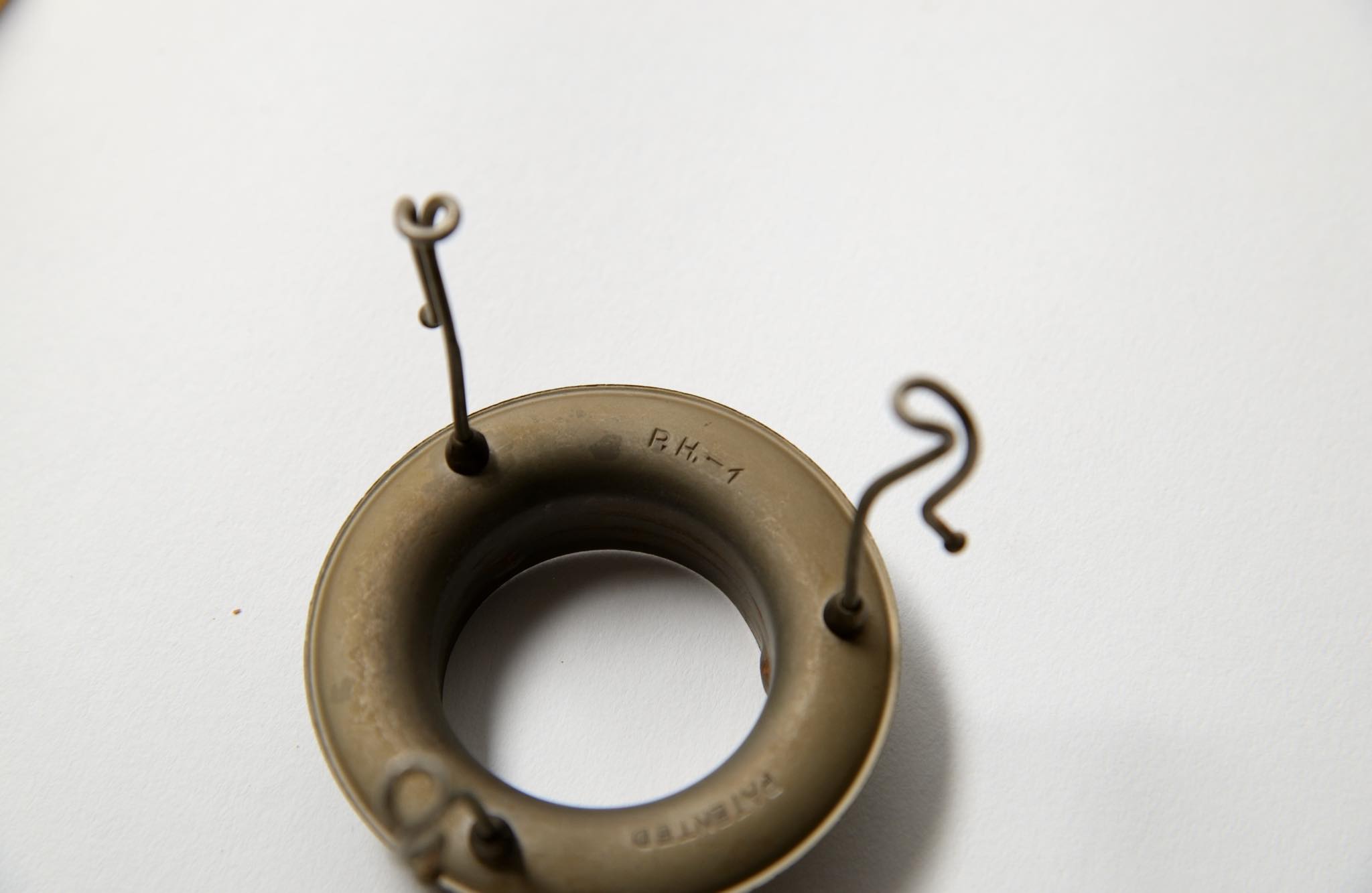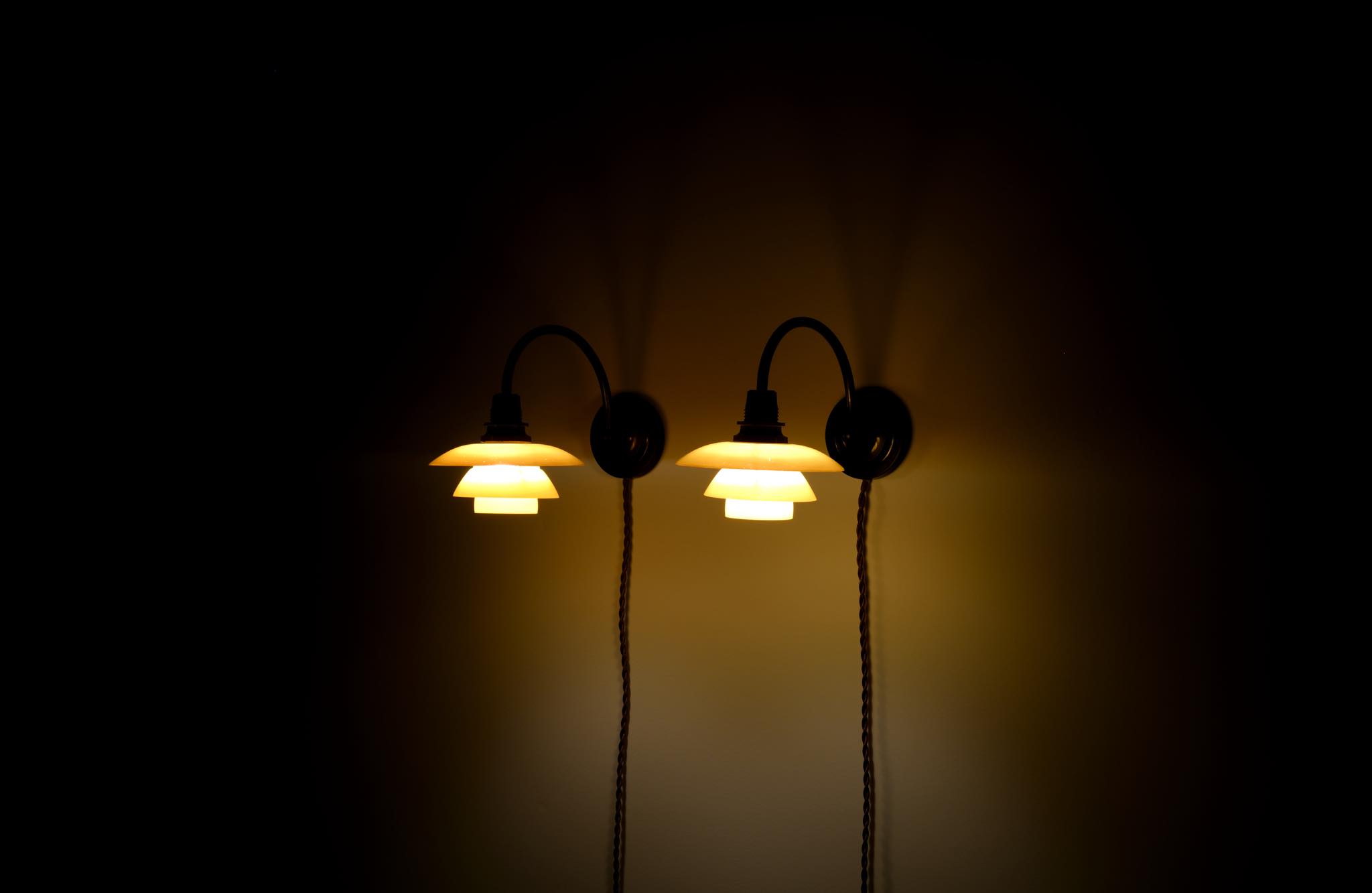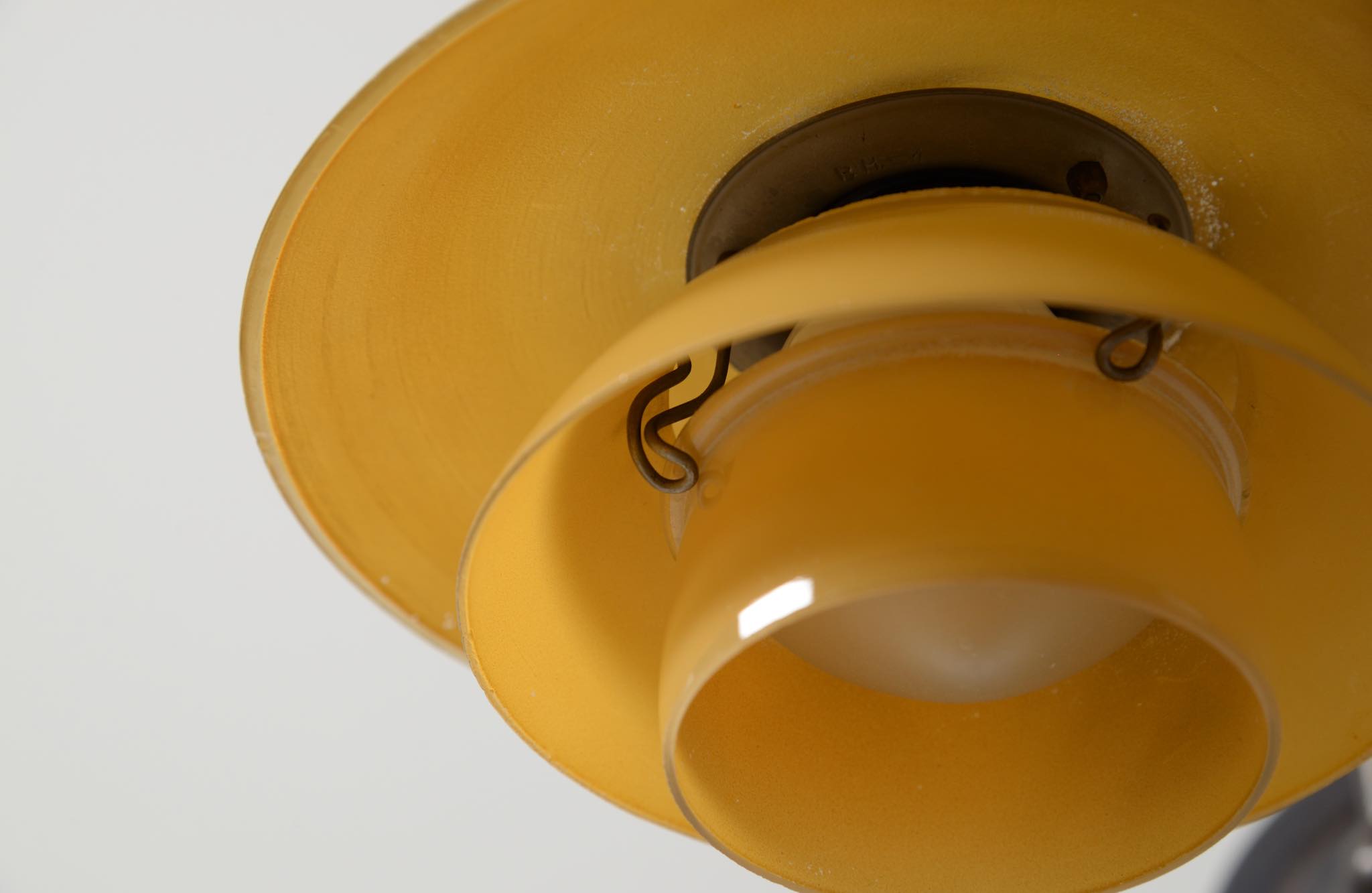 デンマークを代表するデザイナーのPoul Henningsen/ポール・ヘニングセンによって1931年頃に発表されたブラケットランプです。サイズは小振りな1/1で、使いやすいサイズ感です。シェードはマットイエロー、剥落は少なく綺麗な状態です。支柱は銅製で、台座に若干の擦り傷が見られますが、コンディションは良好です。取り付けは壁にビスを打ち、浮かせたワッシャーに引っ掛ける構造です。こちらのアイテムは、電気工事士資格保持者による配線等の確認、メンテナンス等を行なっておりますが、あくまでも観賞用としてご理解ください。