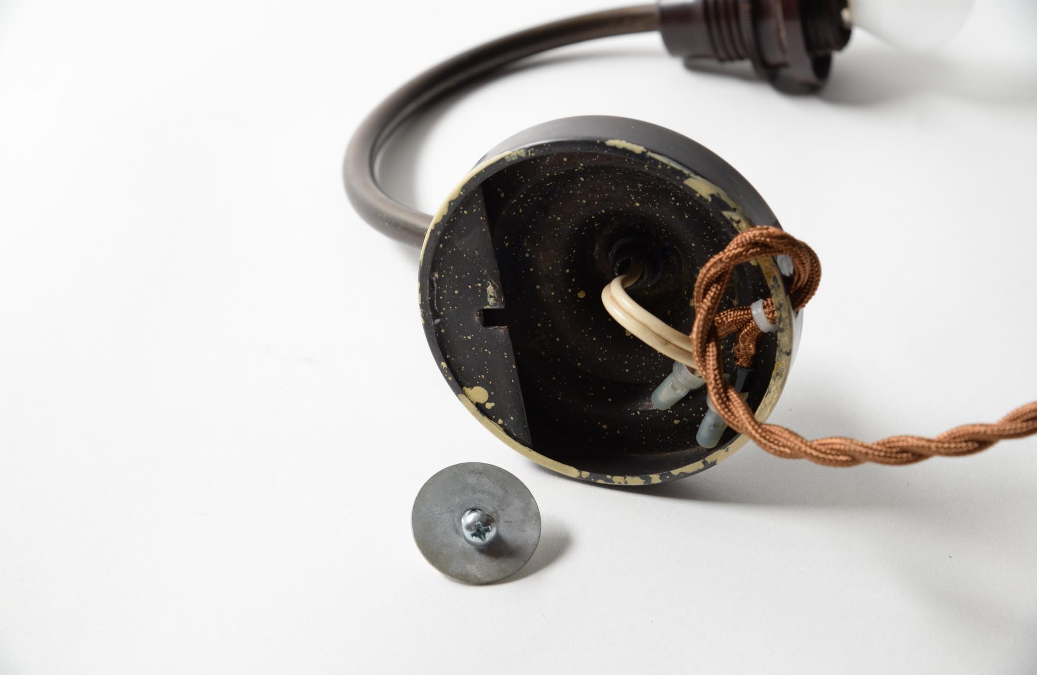 Mat yellow painted glass, Bronze arm, Bakelite socket house
