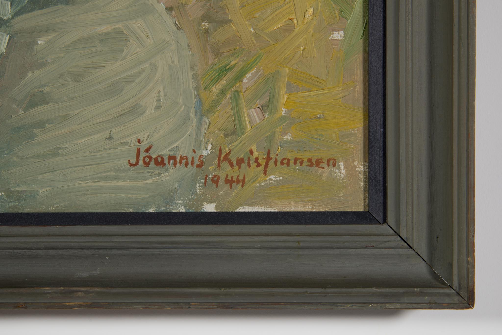 デンマーク領、フェロー諸島の漁師の家庭に生まれ、5歳の頃から水彩で風景を描き始めます。1935年、17歳のときにコペンハーゲンへ渡り、Willian Larsenのもとで芸術を学びます。1941年、ペイントスクール”STUDIO”へ入学。終戦後は故郷のフェローへ戻り作家活動を再開します。氏はフェロー諸島で唯一の印象派作家とされており、急速に変化するフェロー諸島特有の天候を捉えながら、島々に差す特徴的な太陽の光や、目前に広がる広大な海、高い山に囲まれた故郷の町などをモチーフに描きました。