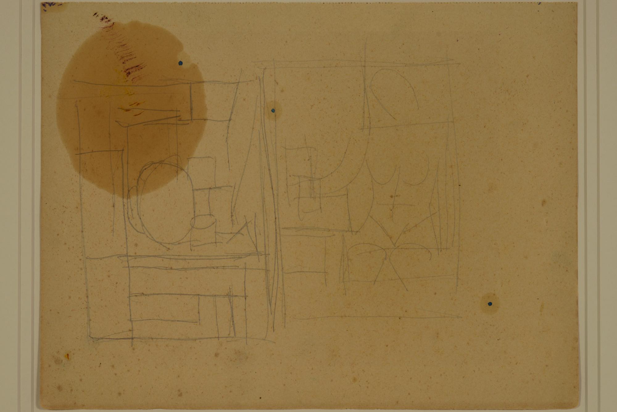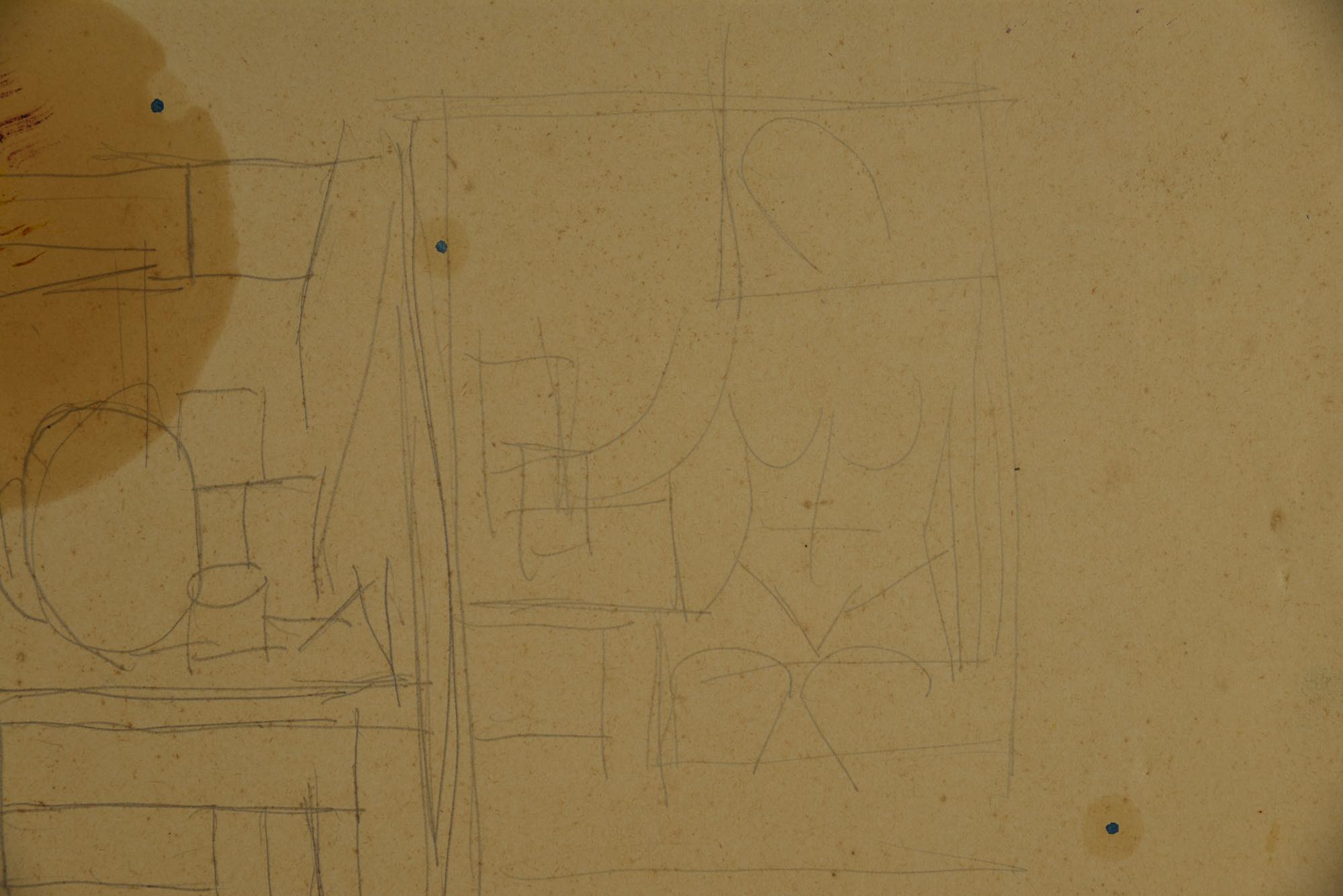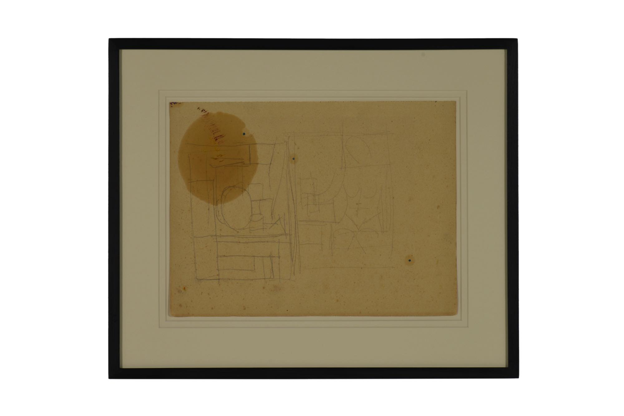 ヴィルヘルム・ルンストロームによる習作です。鉛筆でのドローイングで、紙に油彩用の画用液が染みています。額装は整えました。
