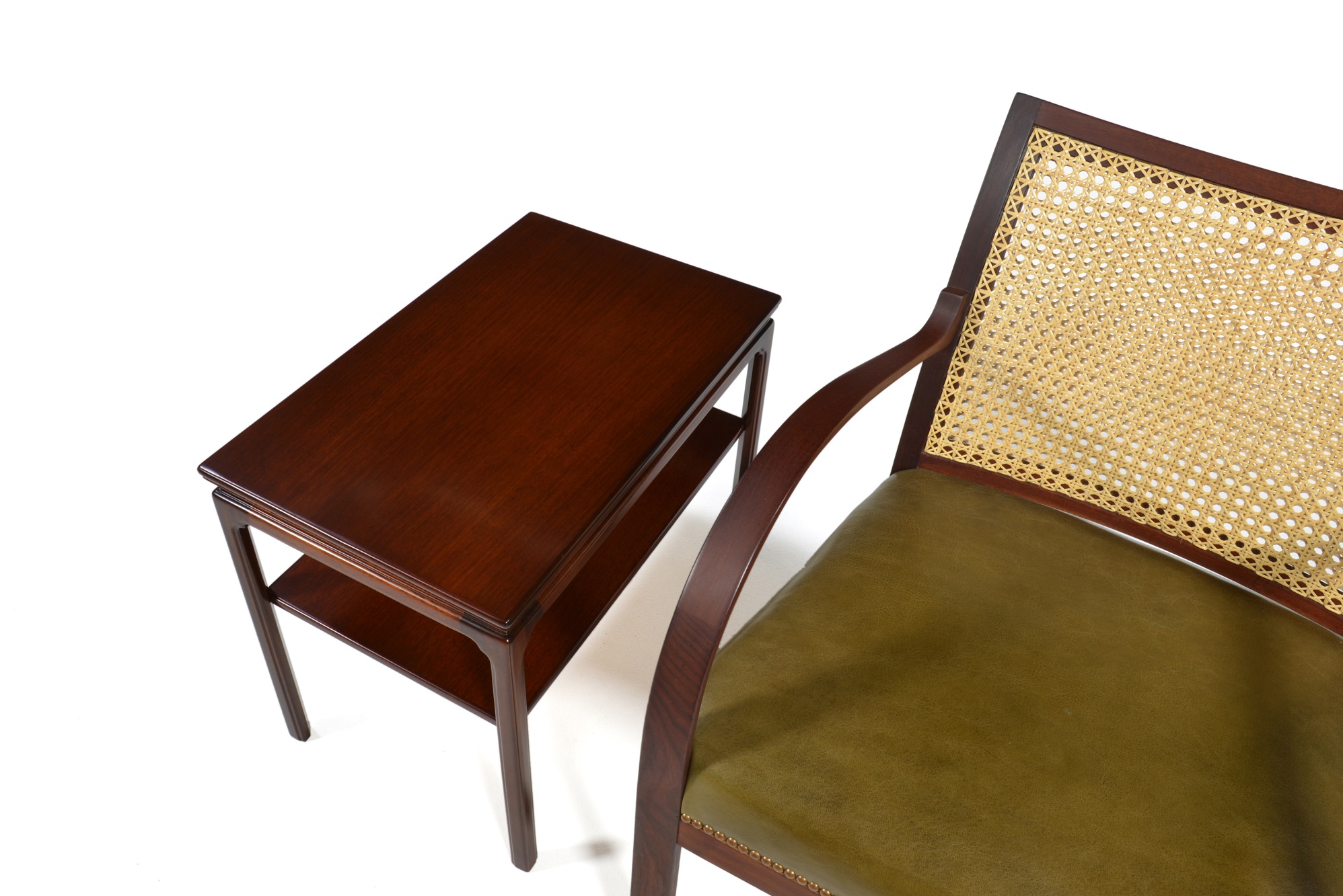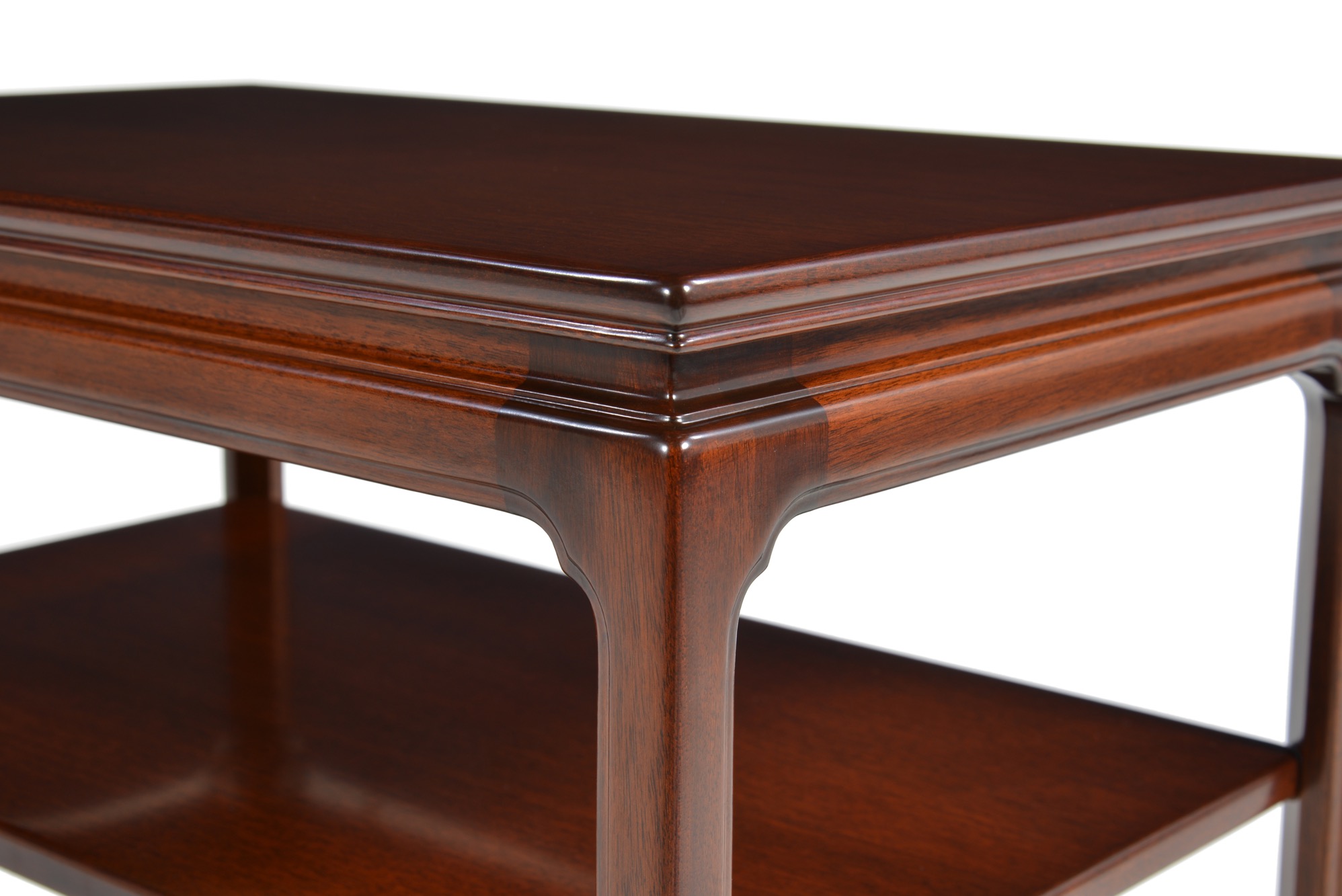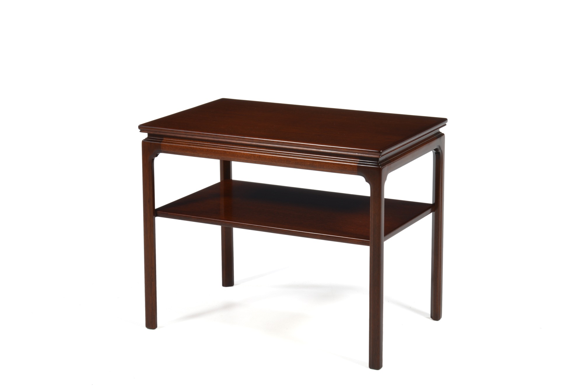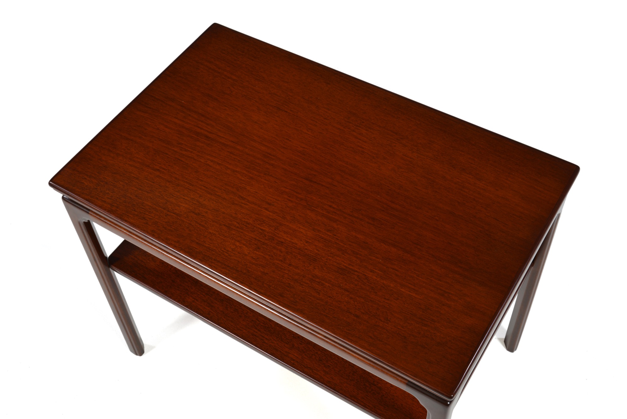 マホガニー材を用いたクラシカルな趣のサイドテーブルです。工房等は判っておりませんが、1940~50年代頃に作られたものと思われ、丁寧に仕上げられた作りが見所です。