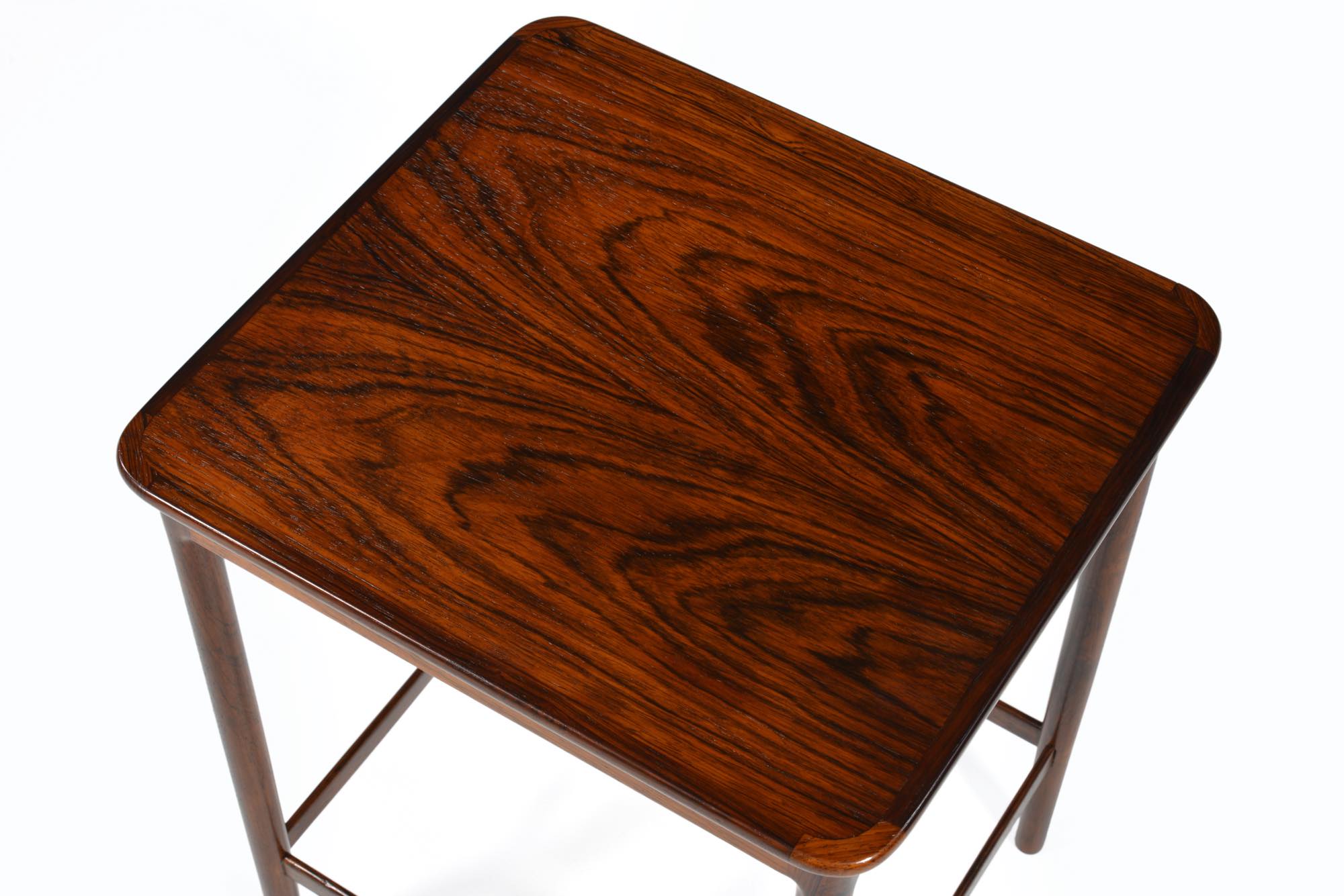1960年代頃に作られたローズウッドのサイドテーブルです。小振りですが丁寧な仕事のものです。