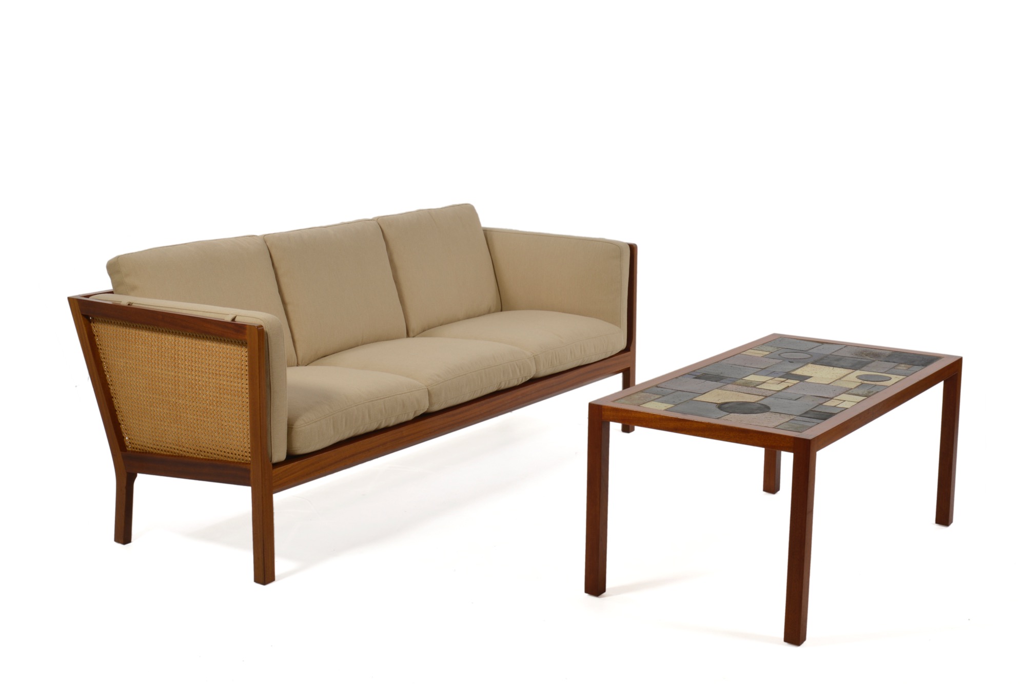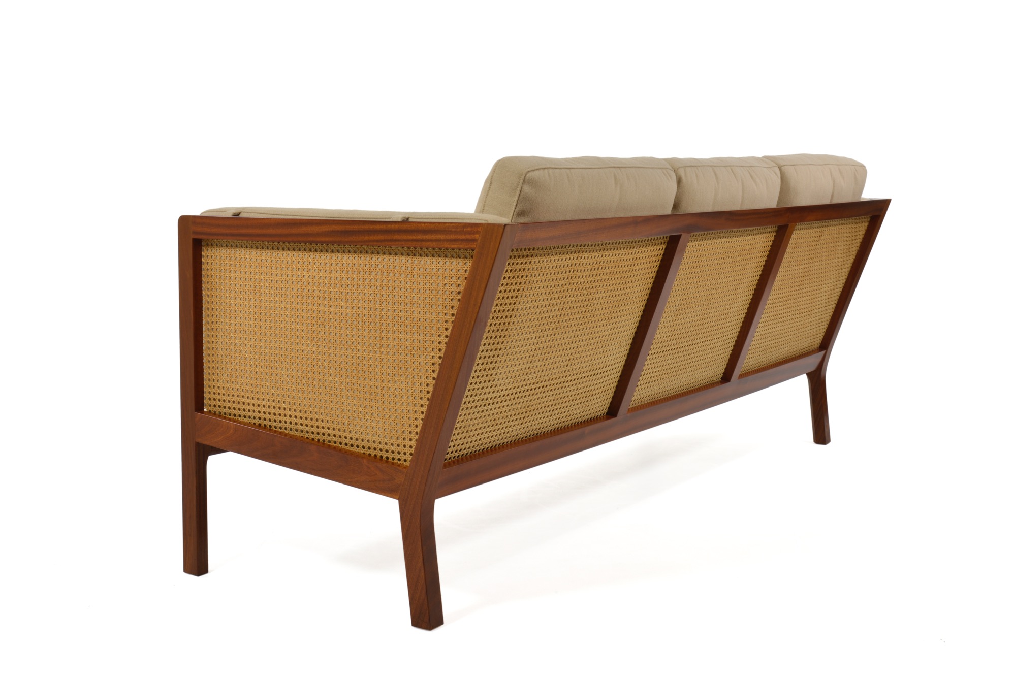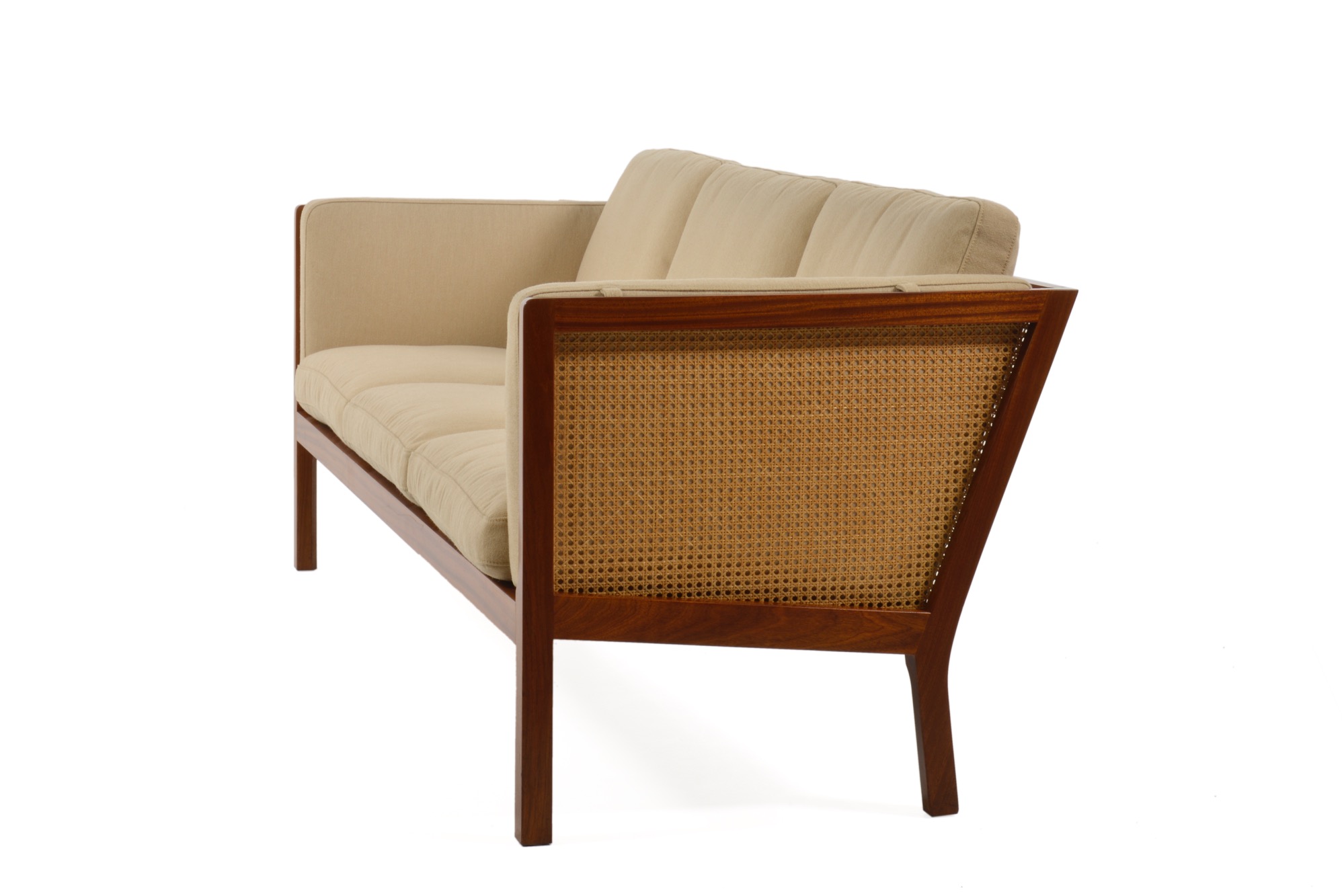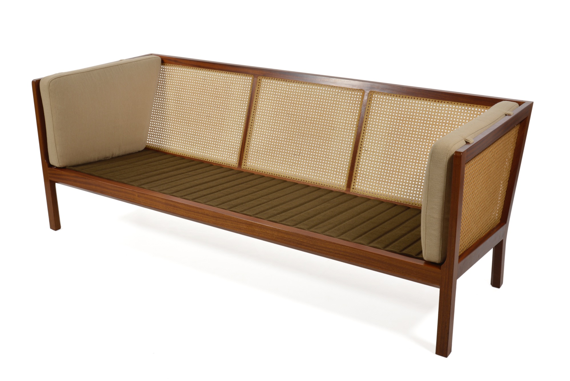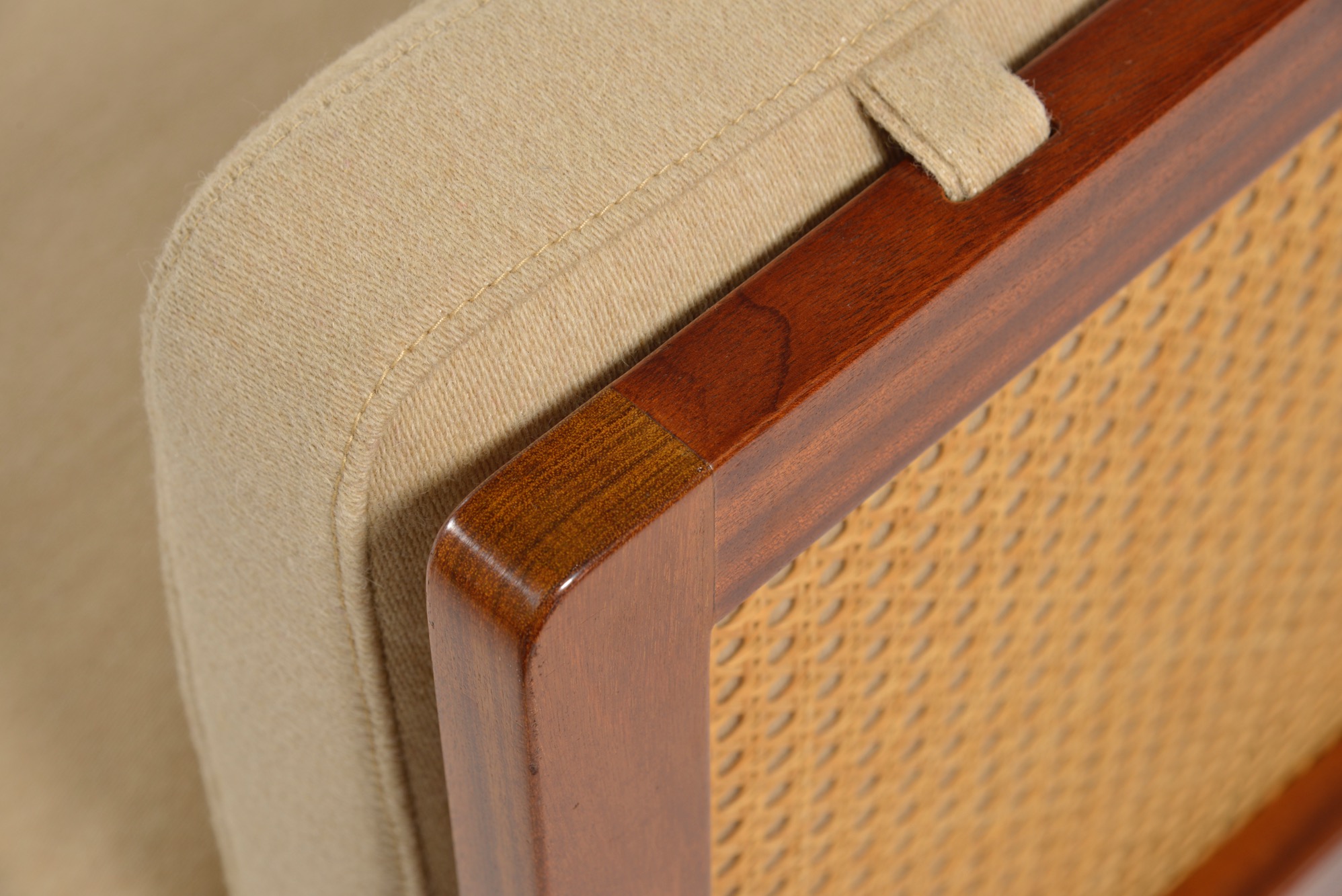 Wørtz møbelsnedkeri 1960's Mahogany, Cane, New wool fabric (Kjellerup) w-200, d-79, h-85, sh-40cm ご売約となりました。ありがとうございました。