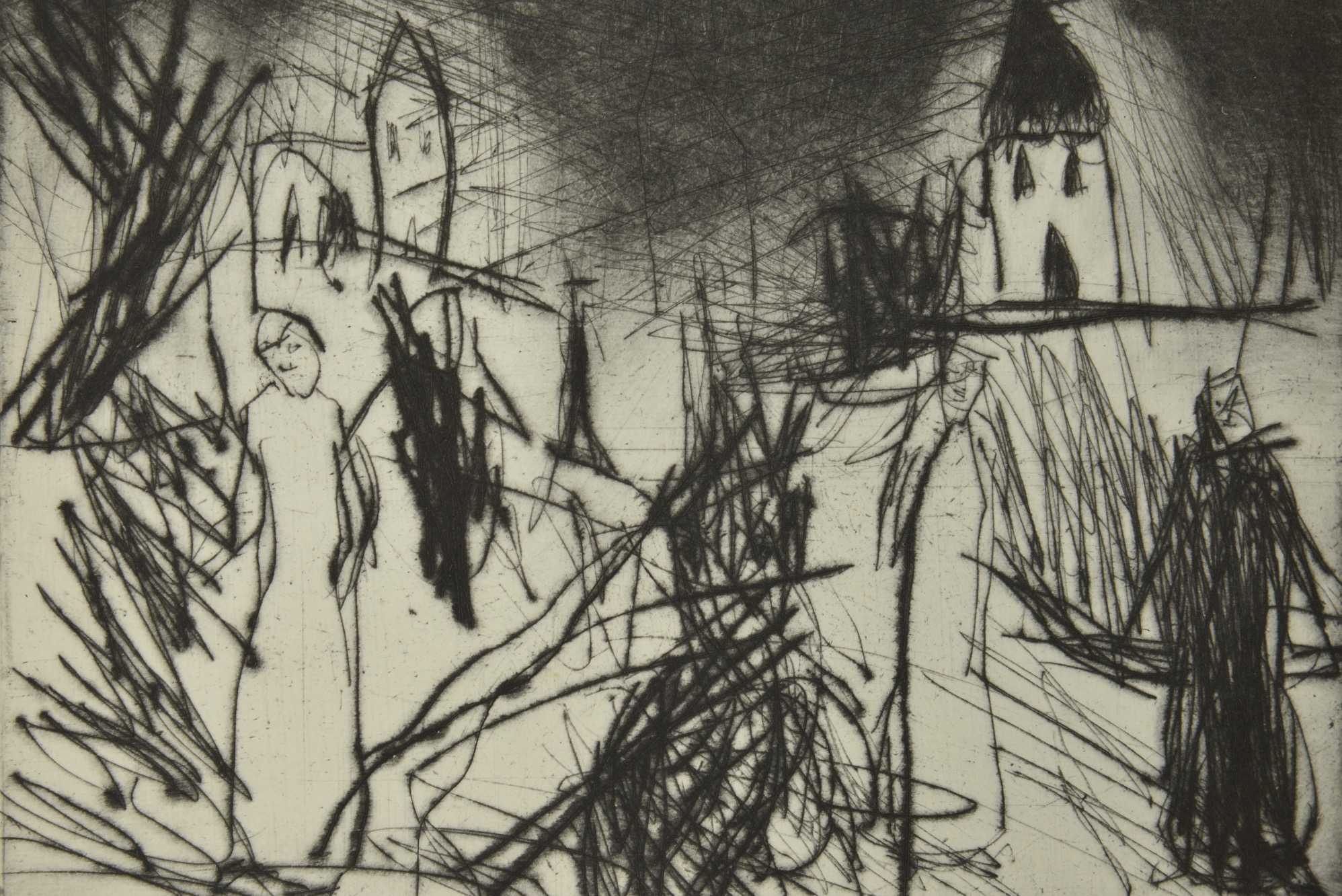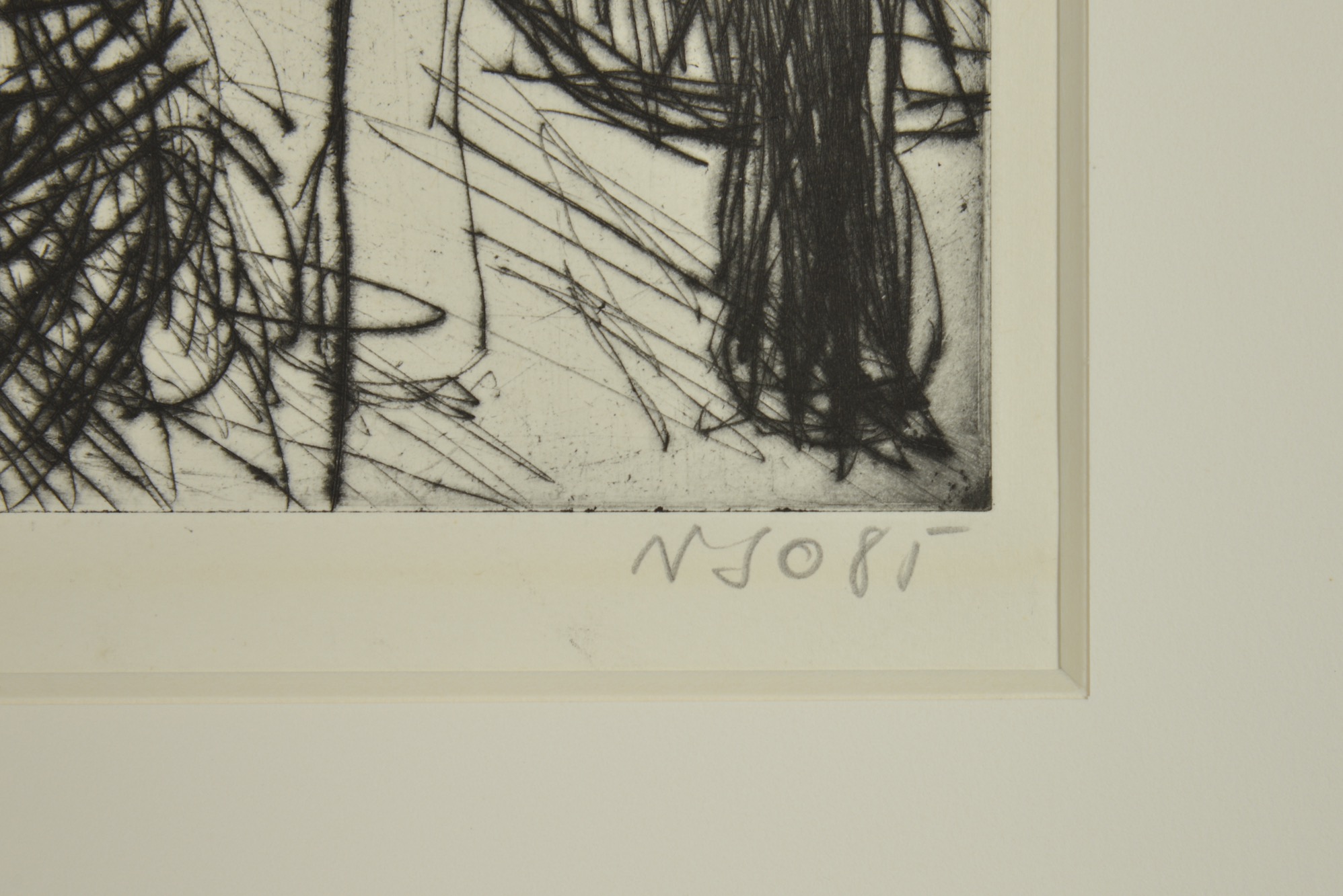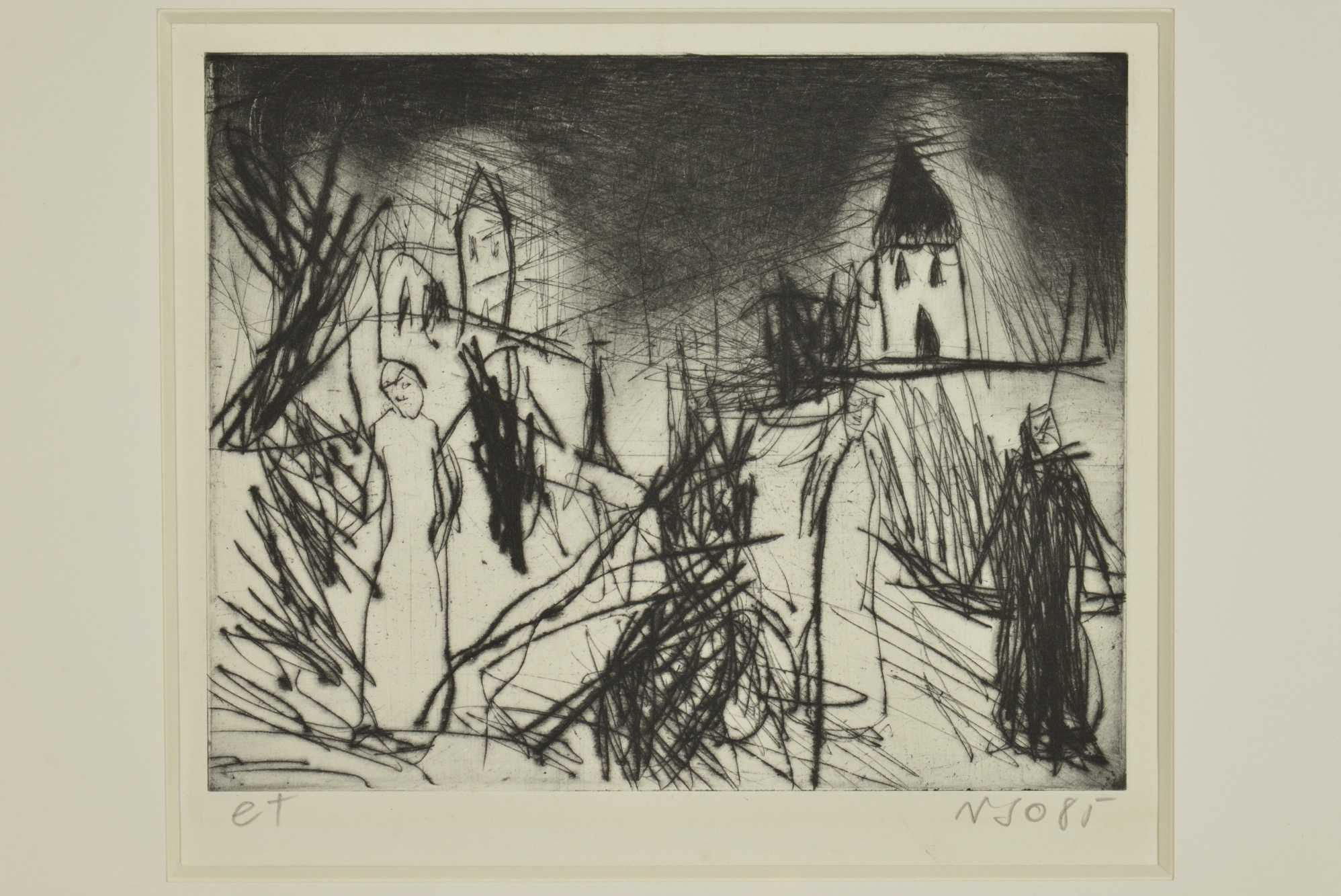 デンマークの音楽家で芸術家のWilliam Skotte Olsen/ウィリアム・スコッテ・オルセンによるエッチング作品です。1985年に擦られたもので、麻薬中毒〜精神疾患から立ち直り始めた頃の作品です。