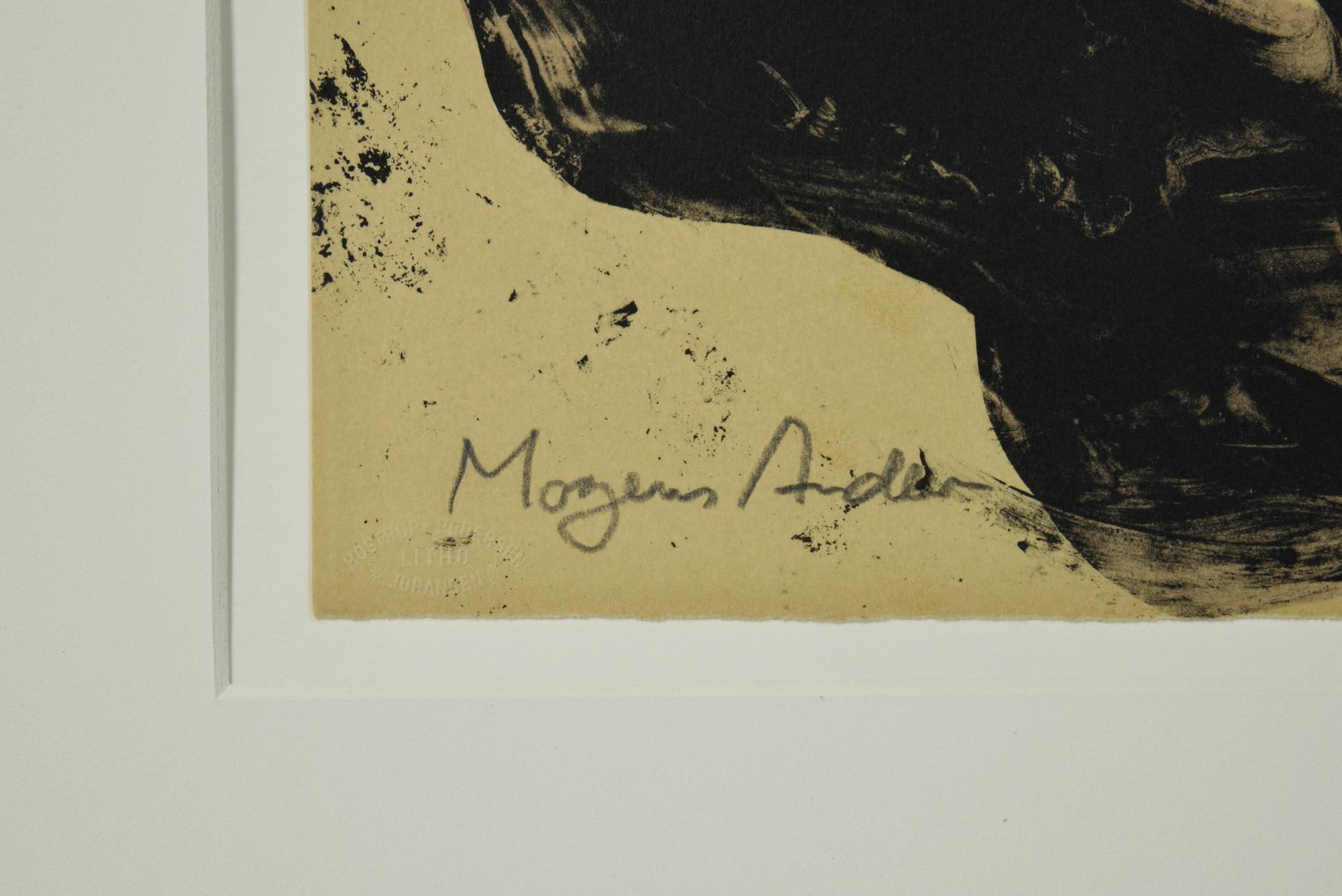 モーエンス・アナセンは20世紀のデンマークを代表する抽象芸術の先駆者のひとりで、1933〜39までP. Rostrup Bøyesen's art schoolにて芸術を学び、初期の活動では構成画を版画やレリーフを用いてアースカラーで表現します。やがて中央ヨーロッパの芸術を求め'59年に渡仏。アンリ・マティスやジョルジュ・ブラックらの技術面を取り入れながら、ダイナミックでラフなストロークで描いた特有の世界観を生み出します。帰国後'70年から王立アカデミーの客員教授を務め、’84年にThorvaldsensメダルを授与。油彩での表現と版画とを切り分け、多くの作品を描き続けます。油彩作品を中心に、コペンハーゲン国立美術館をはじめ、オーフスのアロス現代美術館、オールボー近代美術館、オーデンセのフィン美術館(現BRANDTS)など、デンマークを代表する各美術館に広く収蔵されています。