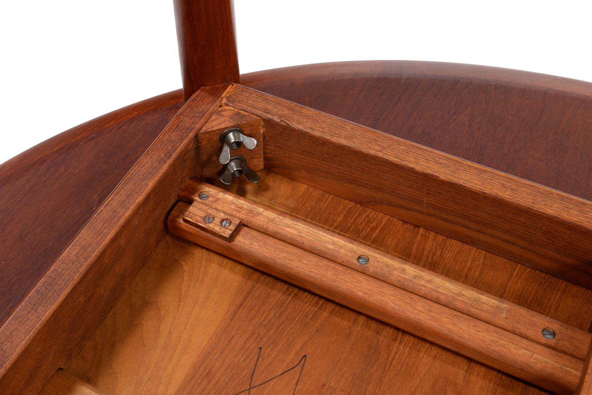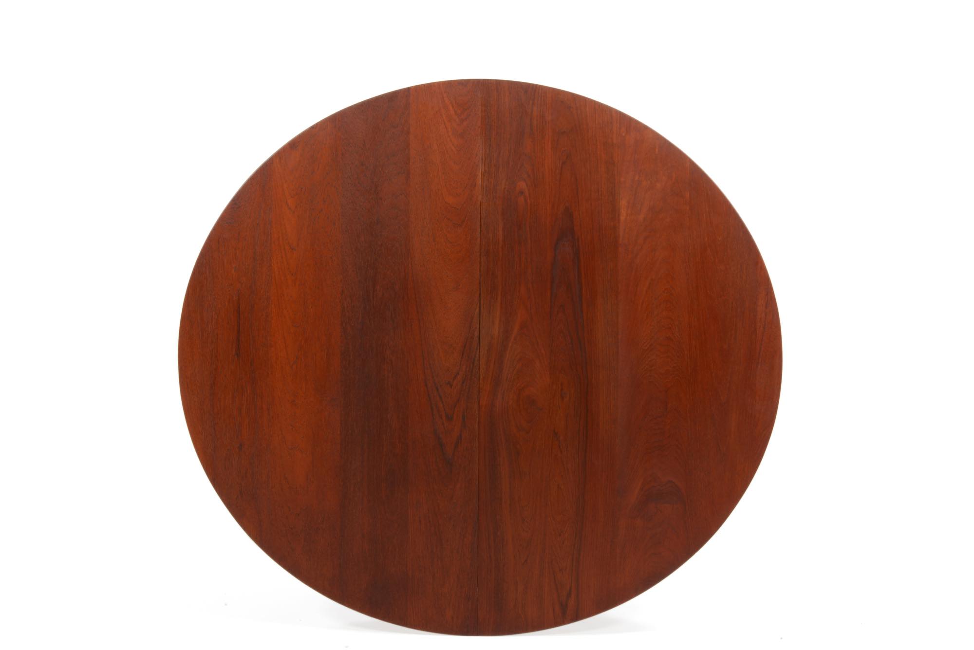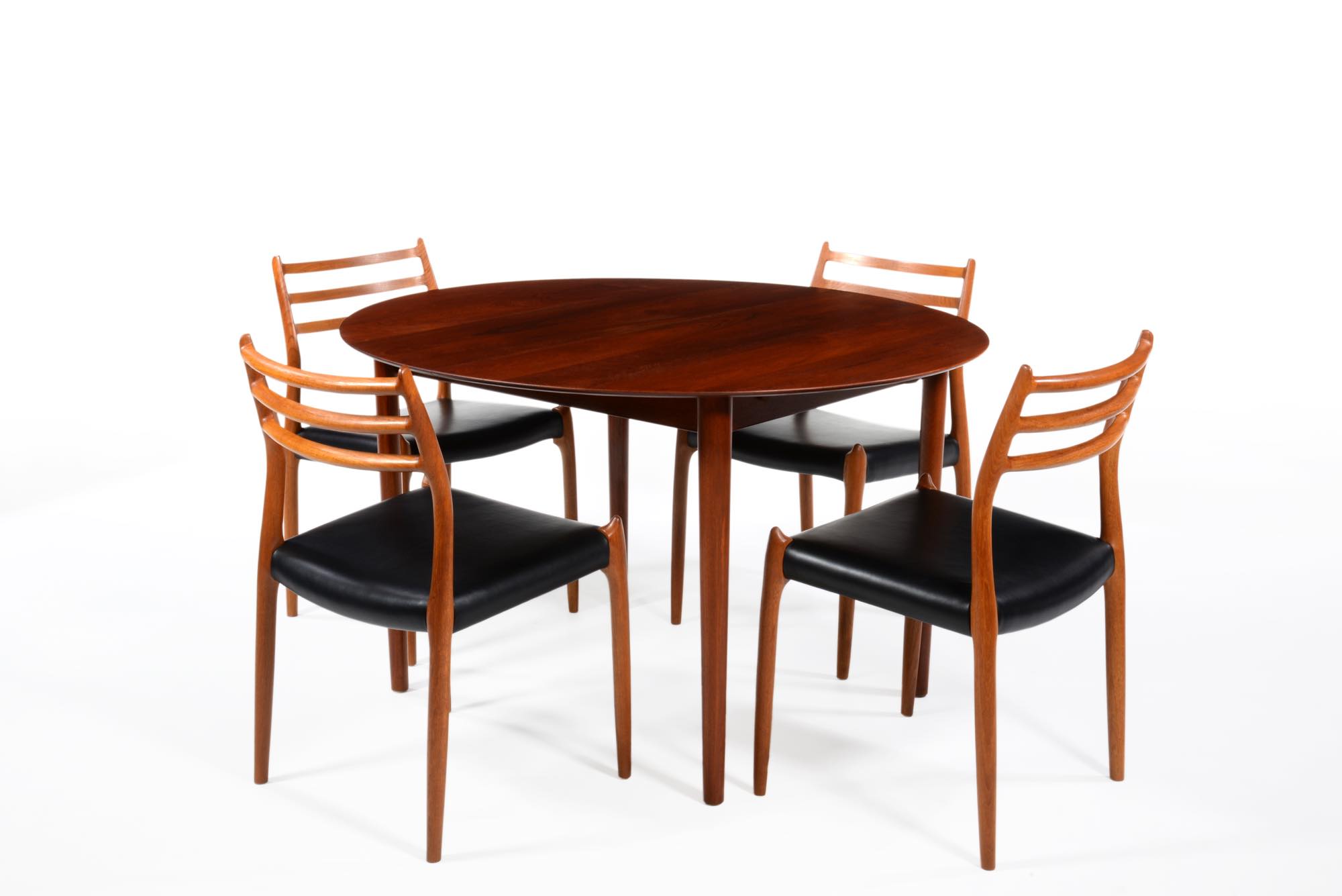 ピーター・ヴィッツとオルラ・ミュルゴー・ニールセンによってデザインされたダイニングテーブルです。ゆったりと楕円がかったトップは美しいラインを描いています。きれいなつくりのもので、タイ国原産と思しきチークの無垢集成材が用いられています。エクステンションリーフは付属しません。