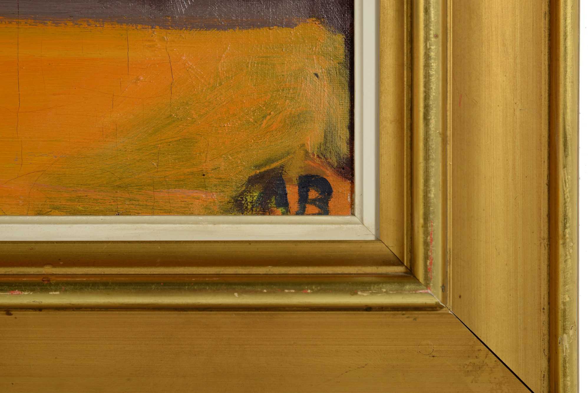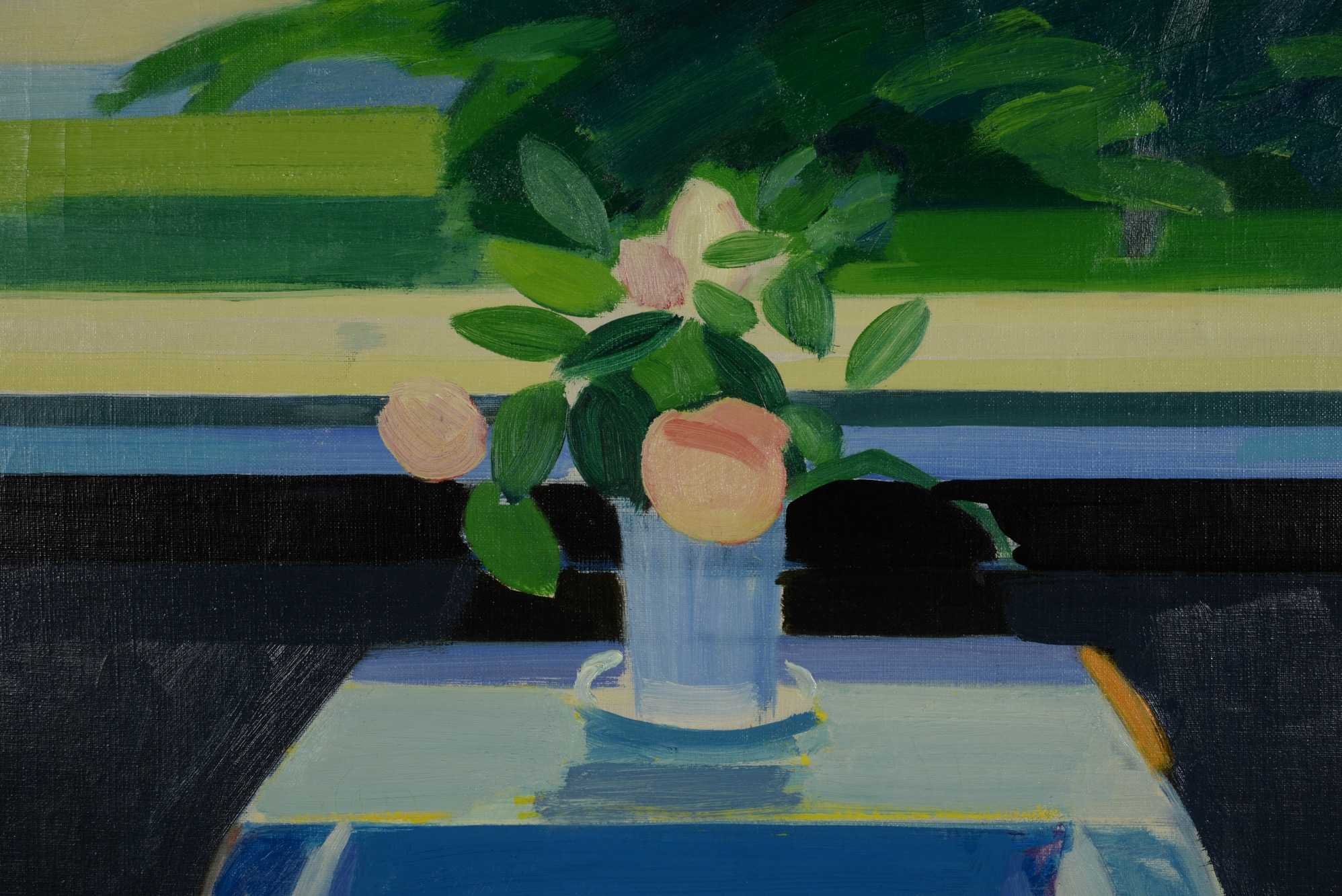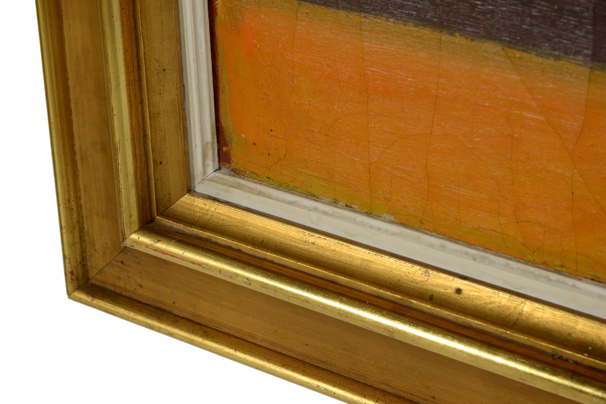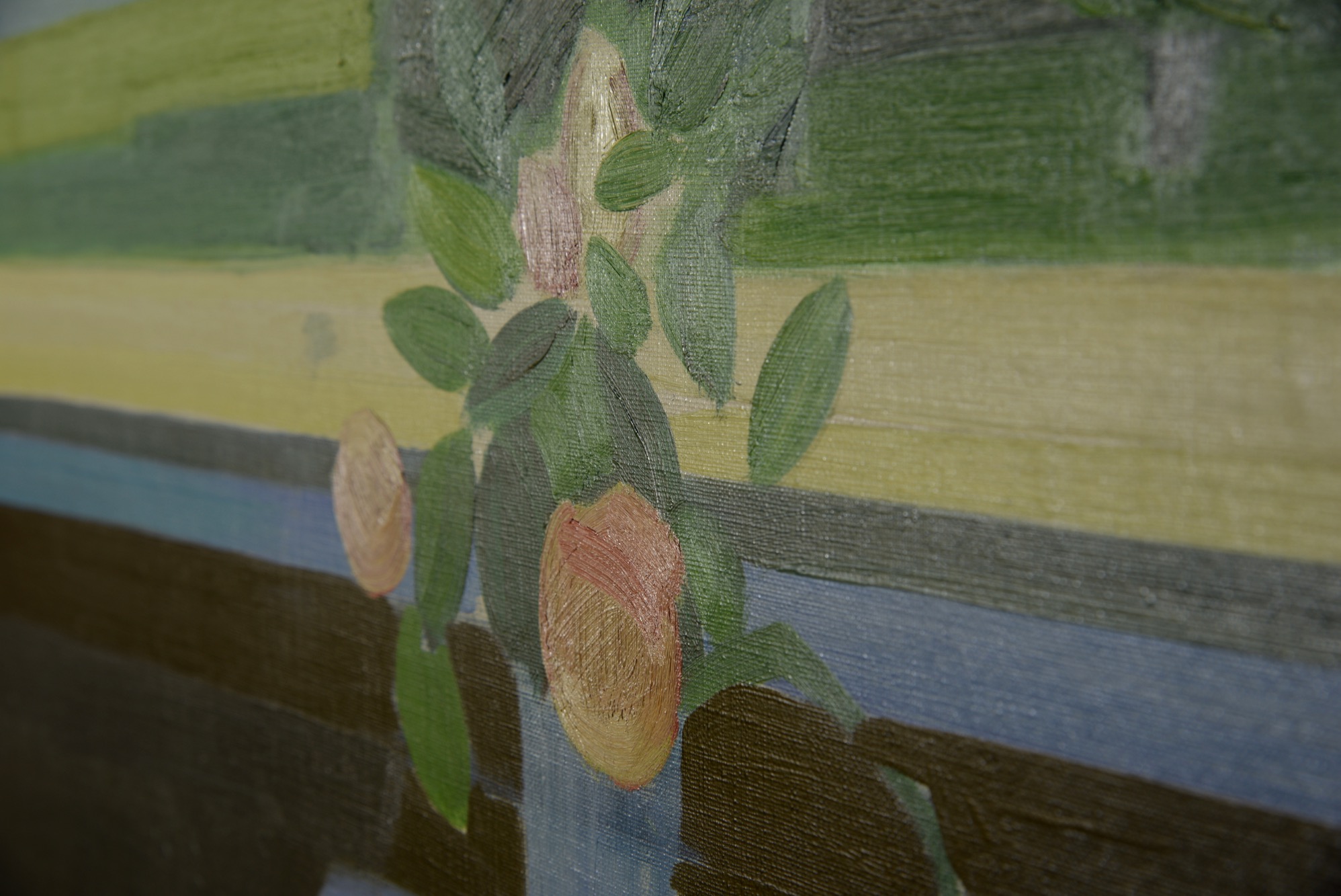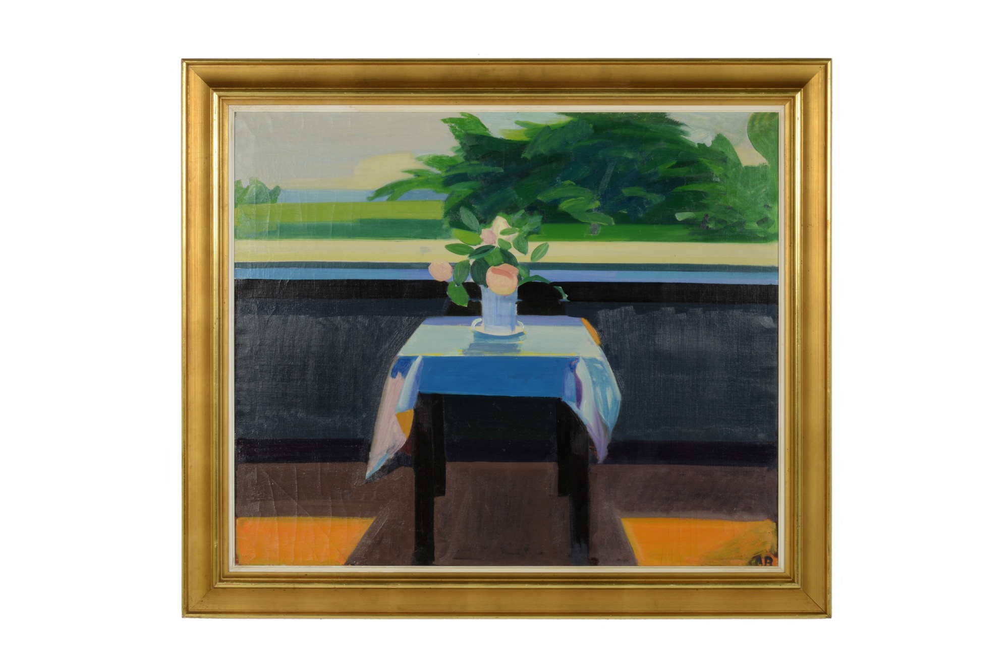 デンマークの画家、アクセル・ベンツェンによる油彩作品です。天気の良い日の窓辺に生けた花を描いた静物画で、落ち着いた筆致はAB作品の中でも群を抜いて丁寧に描かれた作品ではないでしょうか。背面に書き込まれた「50」が制作年であるならば、氏の晩年の作品となります。(この作品にタイトルはありませんが、便宜上用意させていただいております)