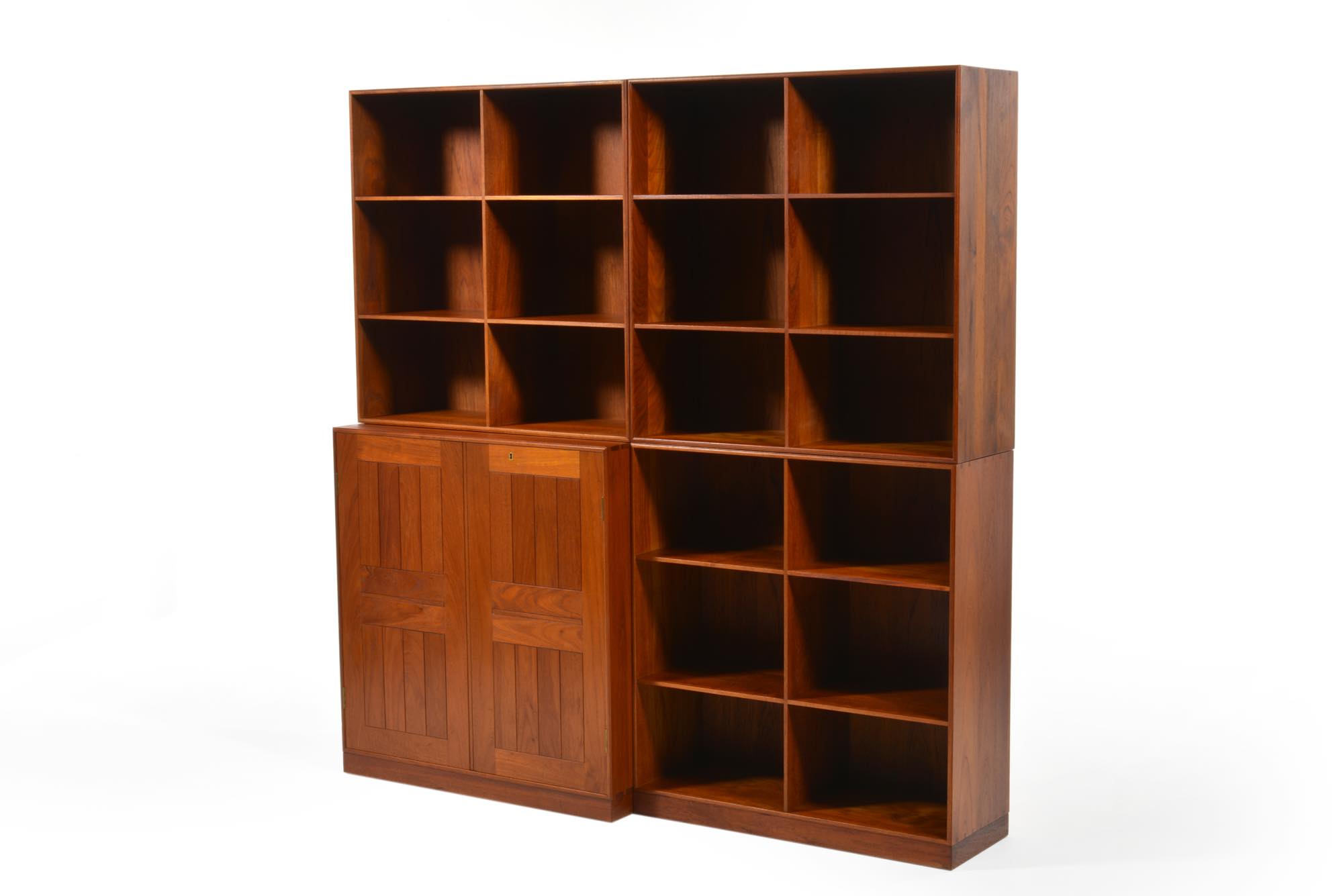 ルド・ラスムッセン工房製、モーエンス・コッホによるブックケースキャビネットです。無垢チークのタイプで木取りも良く、コンディションは良好です。シェルフ3点+キャビネット1点+ベース2点との計6点セットでの販売となります。