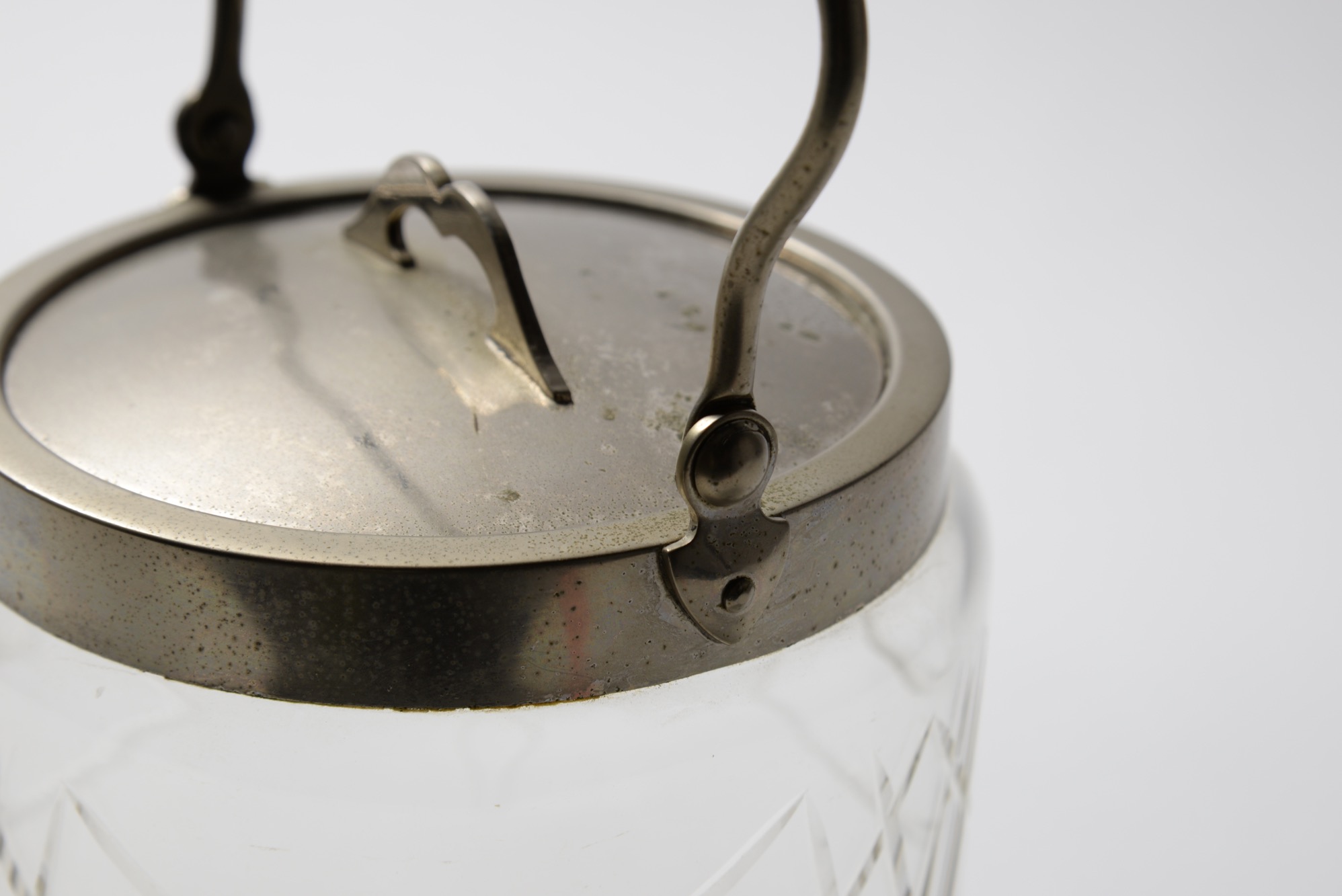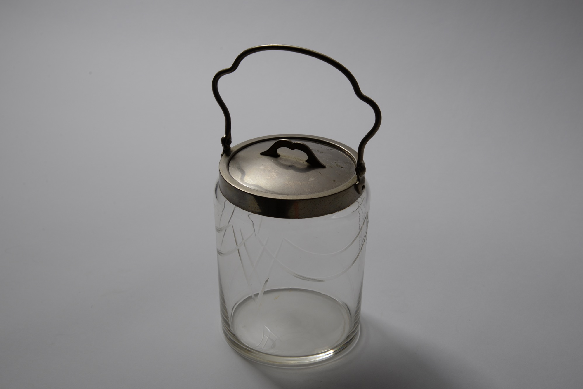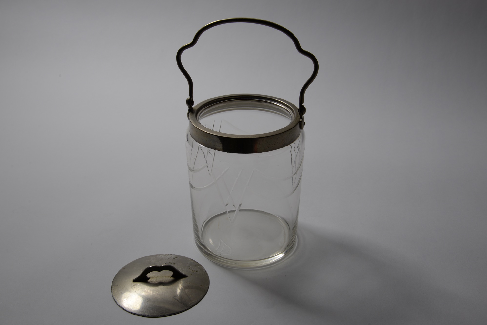 およそ100年前と思われる吹きガラスのキャンディボックス、幔幕文様がカッティングで描かれています。金属部分は鉄ではなく、錫か、真鍮の錫鍍金かと思われます。デンマーク人達はキャンディボックスに飴やチョコレートをたくさん入れて来客を持て成します。