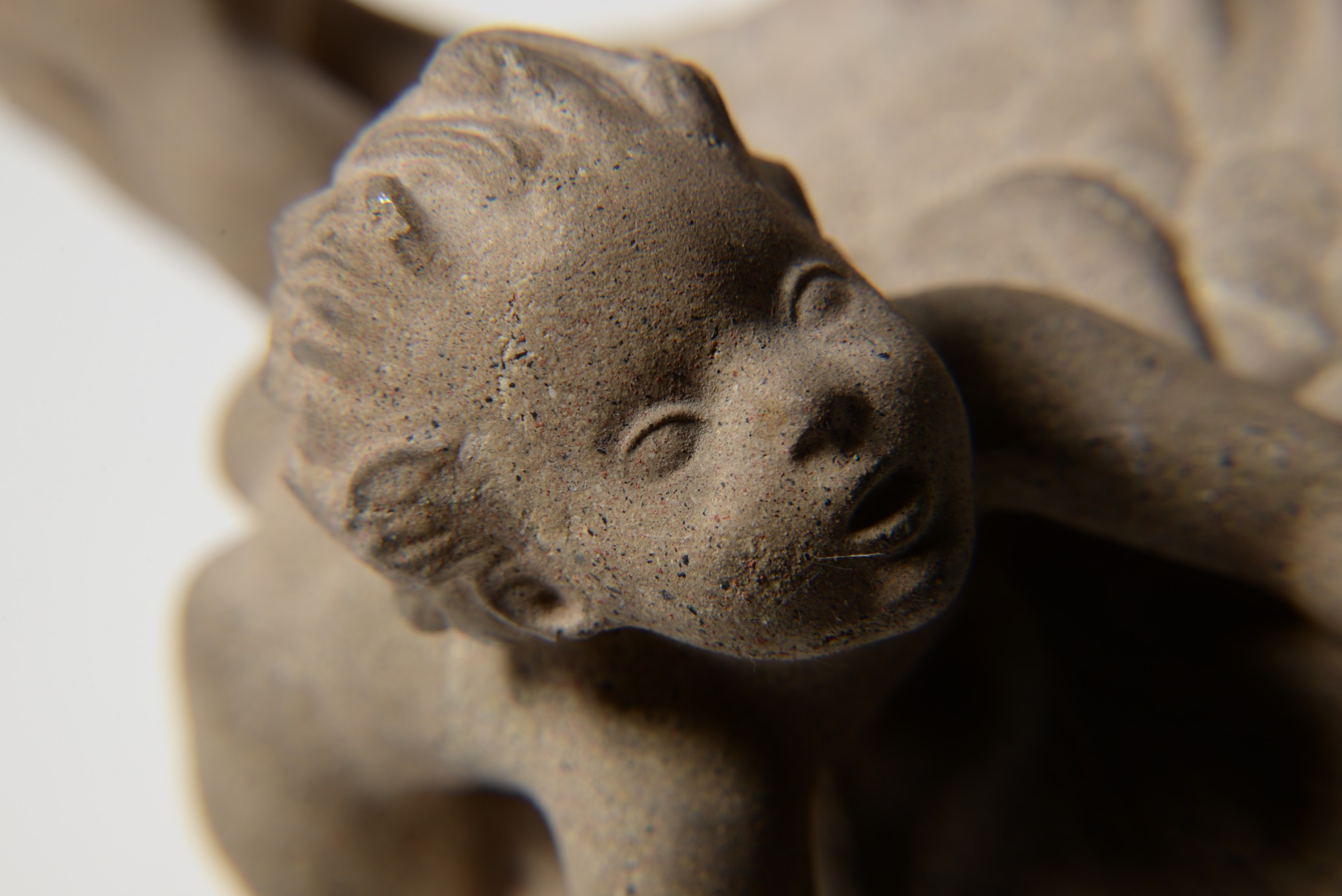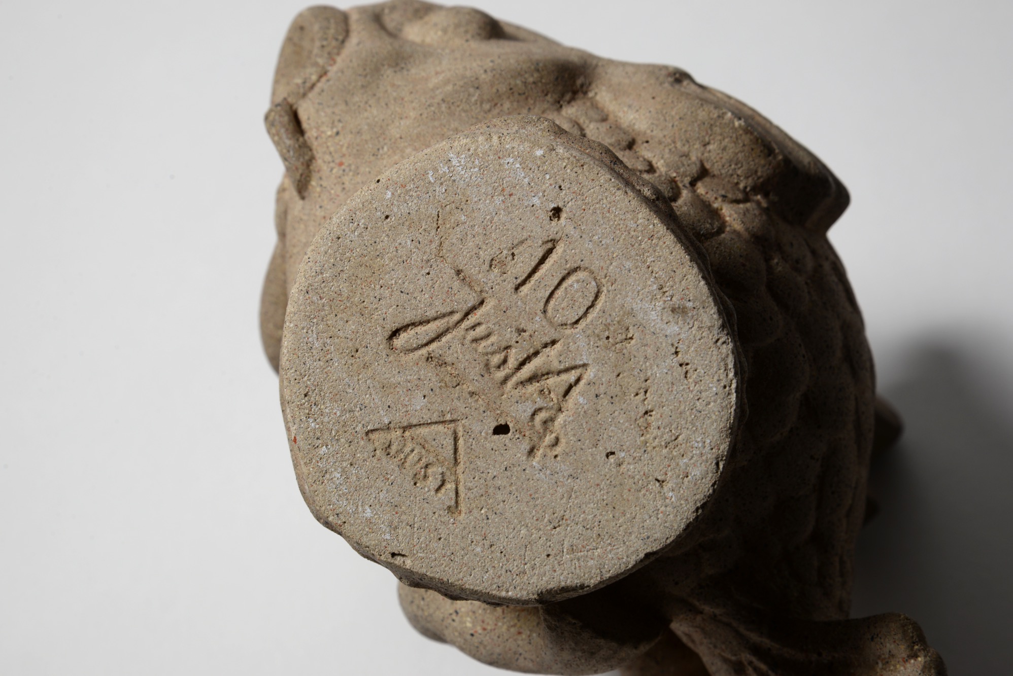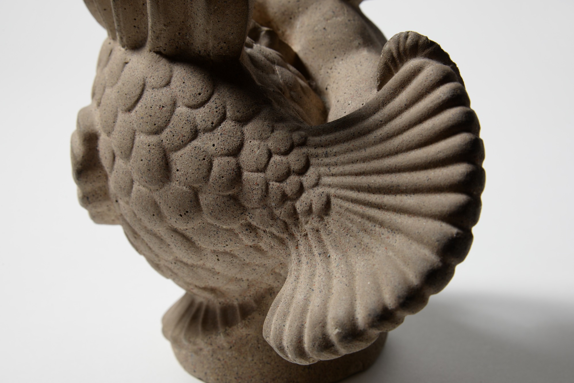 デンマークの金工作家、Just Andersen/ユスト・アナセンによるNexøsten/サンドストーン作品です。魚にしがみつく少年が愛らしく表現されています。