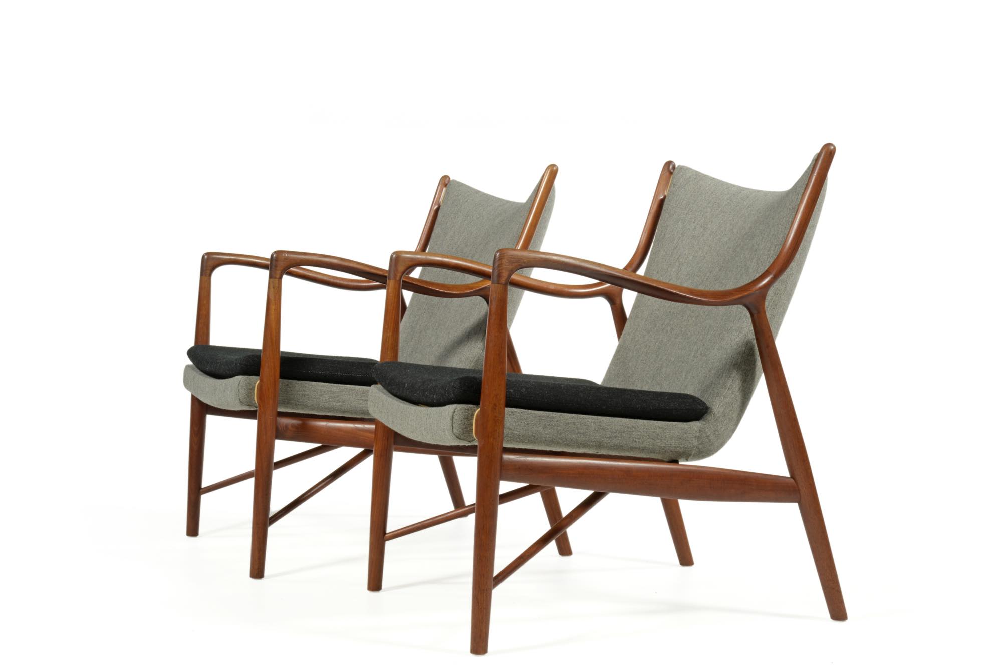 フィン・ユールによる代表作、NV45のペアとなります。ニールス・ヴォッダー工房製の中でも初期に作られたタイプとされており、こちらのペアは同ロットでの製造品と思われます。目立ったダメージもなく、コンディションは良好です。
