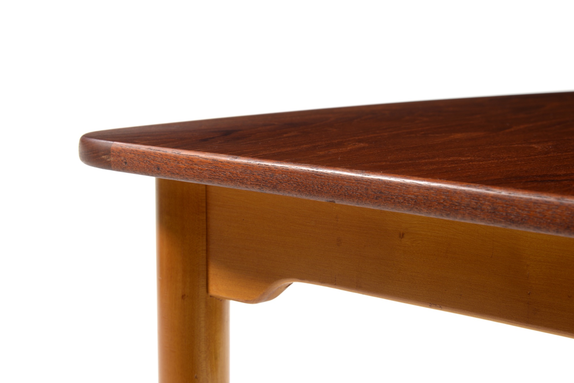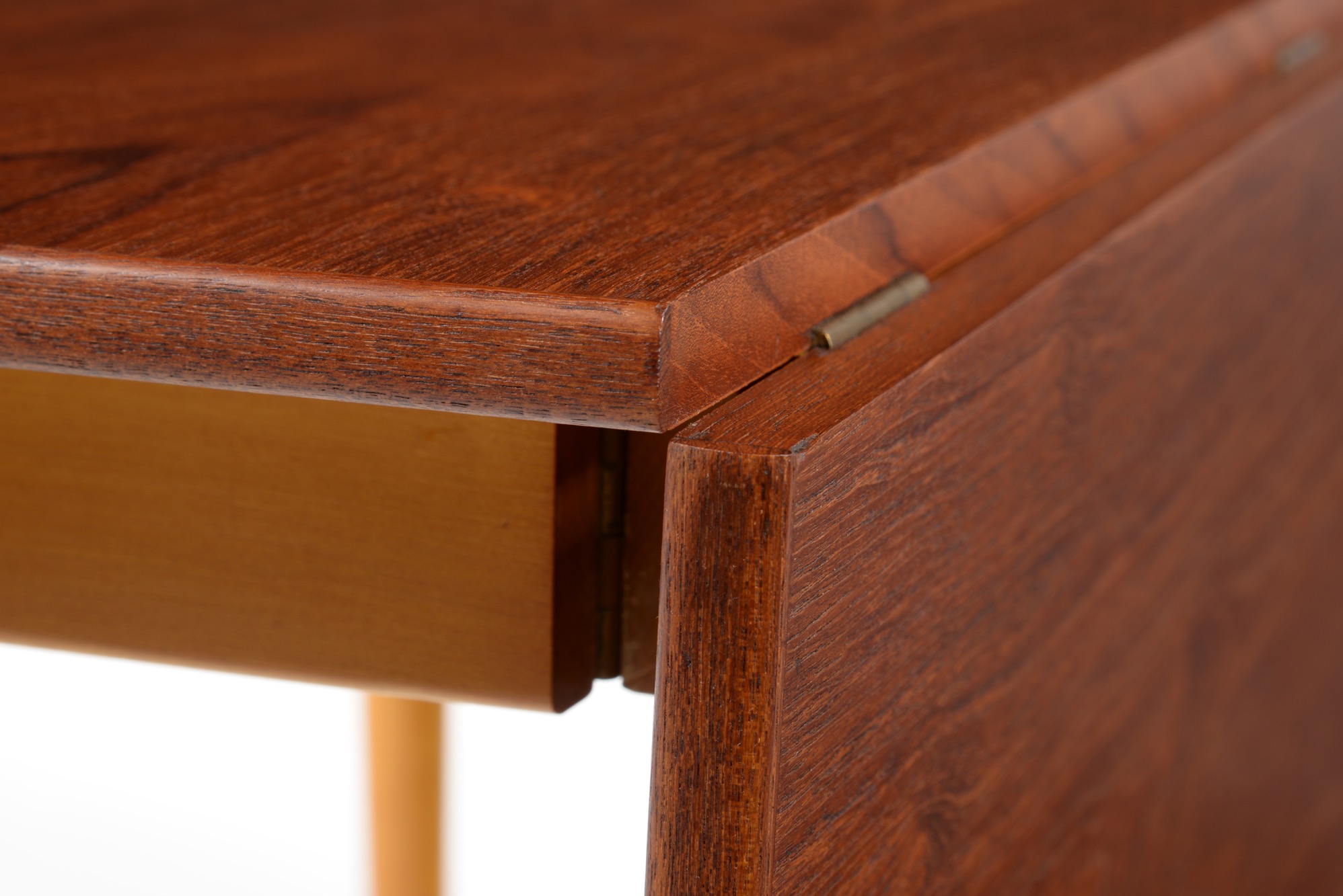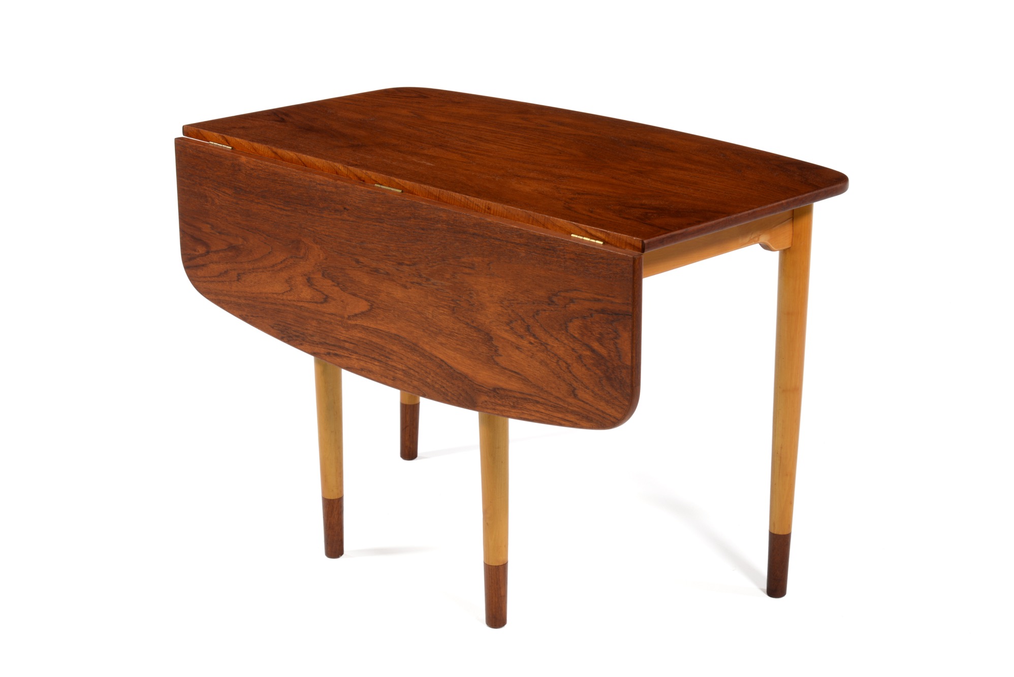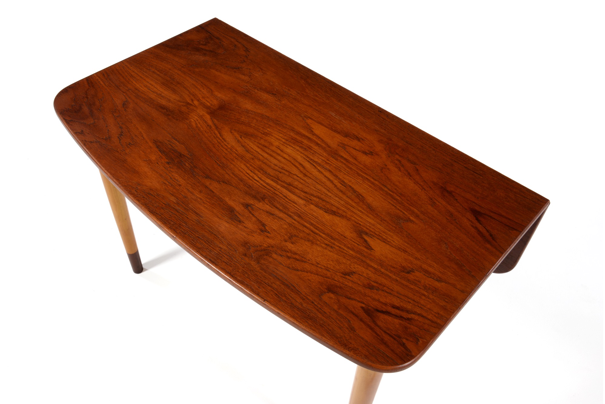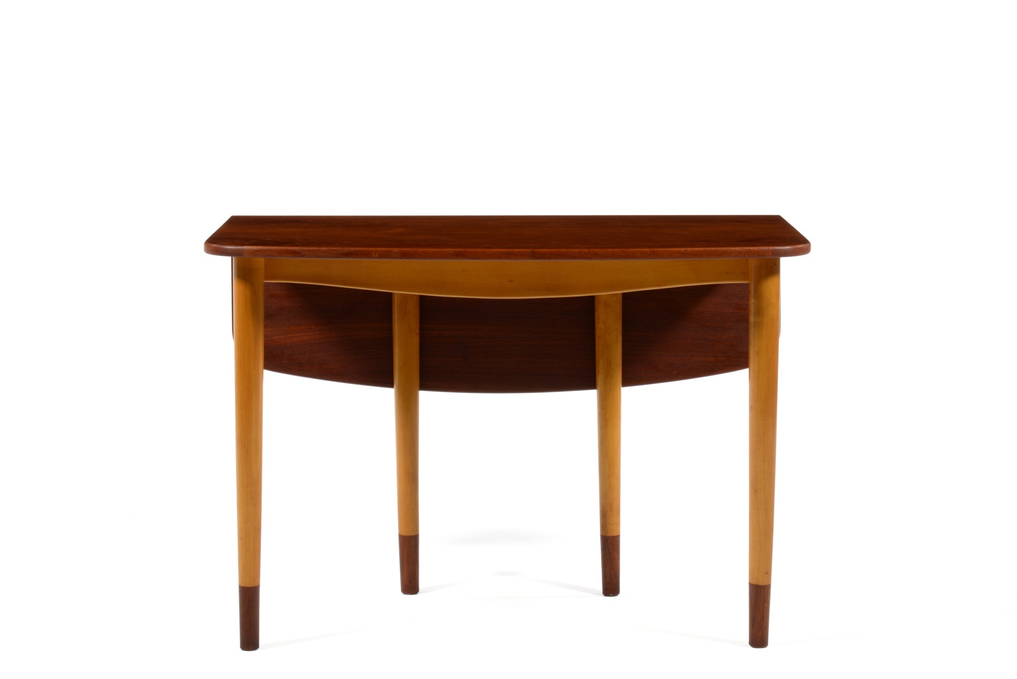フィン・ユールによるコンソールテーブル、ソーレン・ヴィラッドセン工房によるものです。コンソールとして壁沿いに設え、必要な時に天板を跳ね上げることができます。天板とシューズはチーク材、脚はチェリー材のようです。