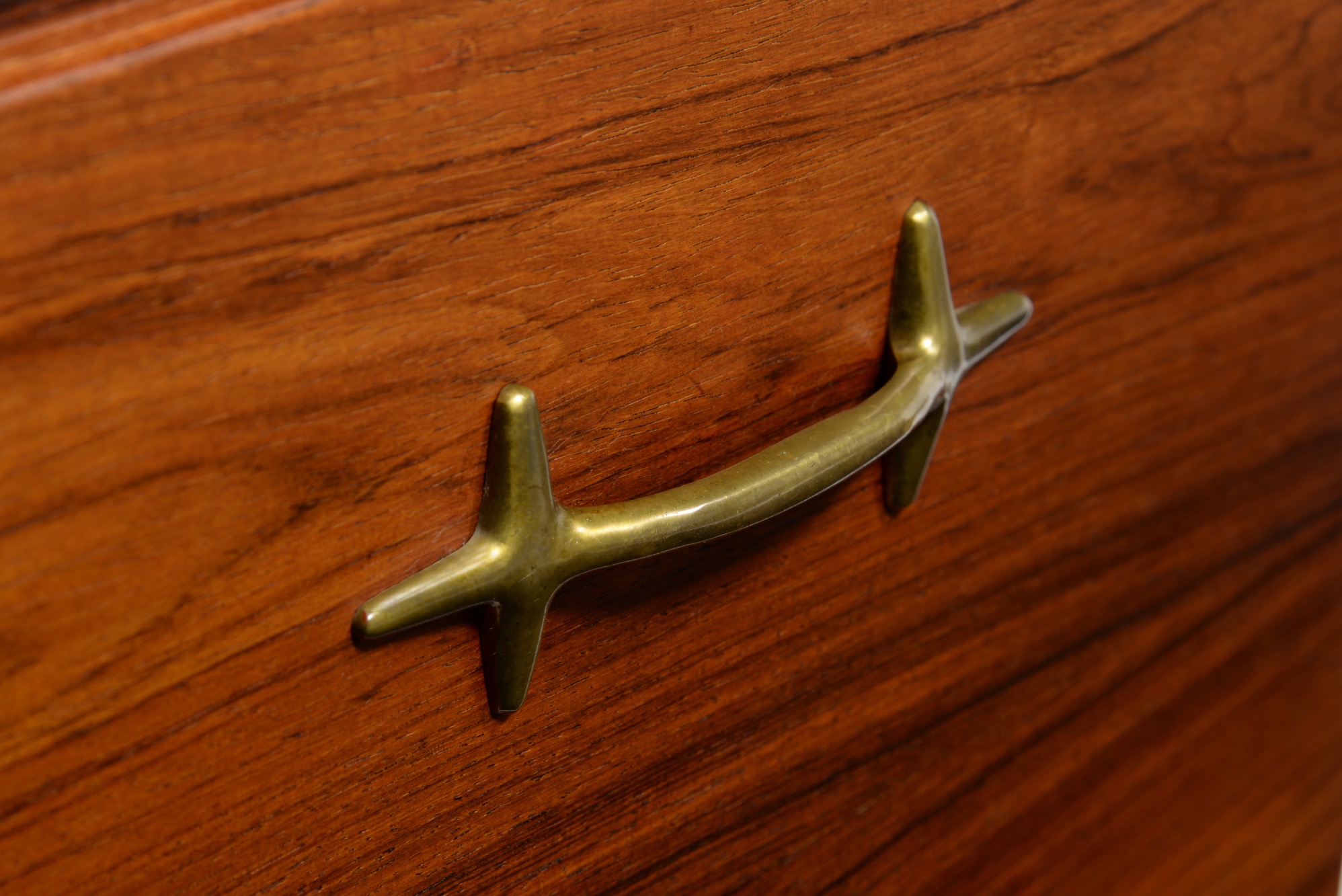 工房不詳、良質なローズウッド材で作られたシダーチェストです。シダーとは言うものの杉は使われておりません。1960年代頃の製作品でしょう。真鍮製のハンドルは本体を持ち上げるのに機能します。鍵が一本付属し施錠できます。