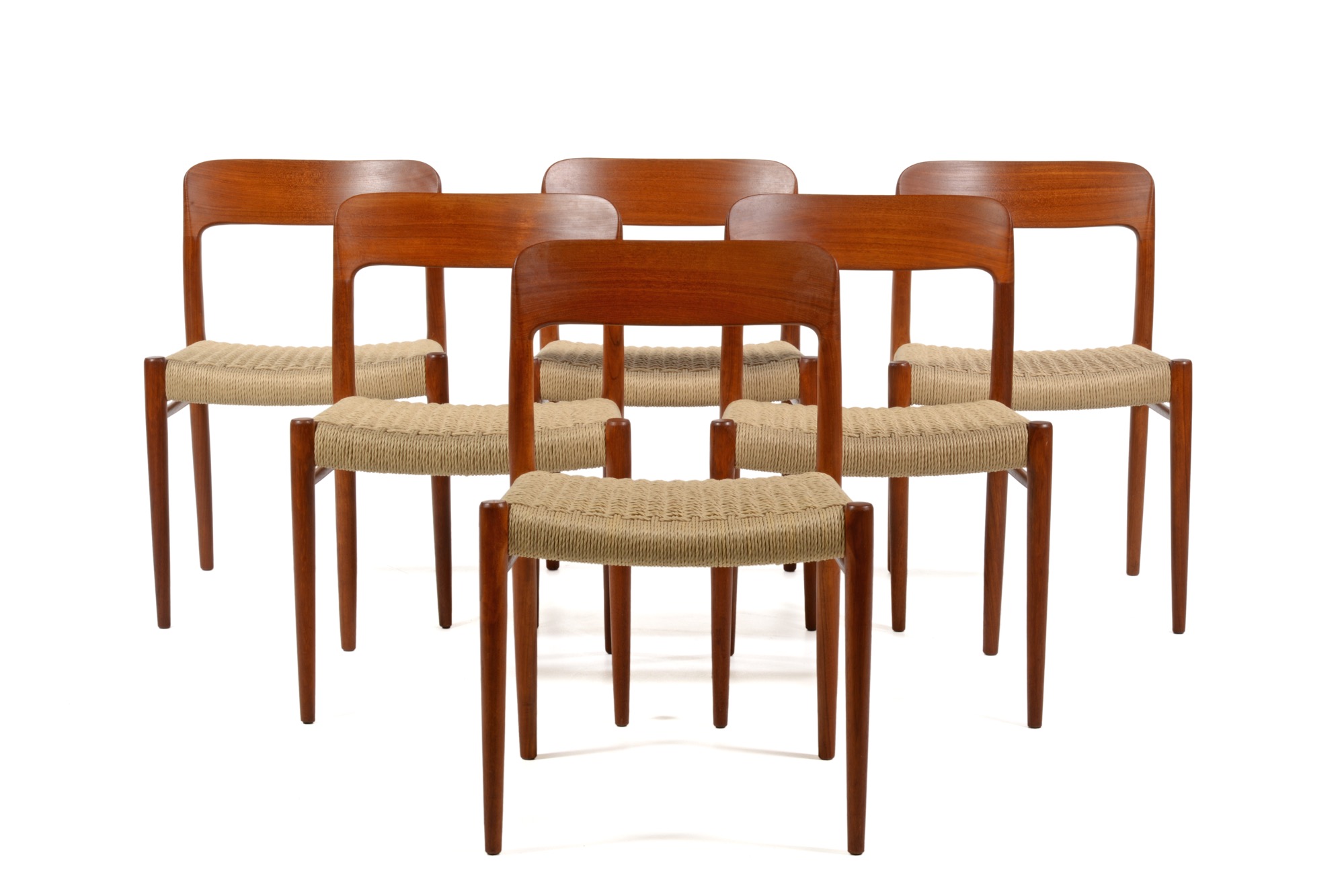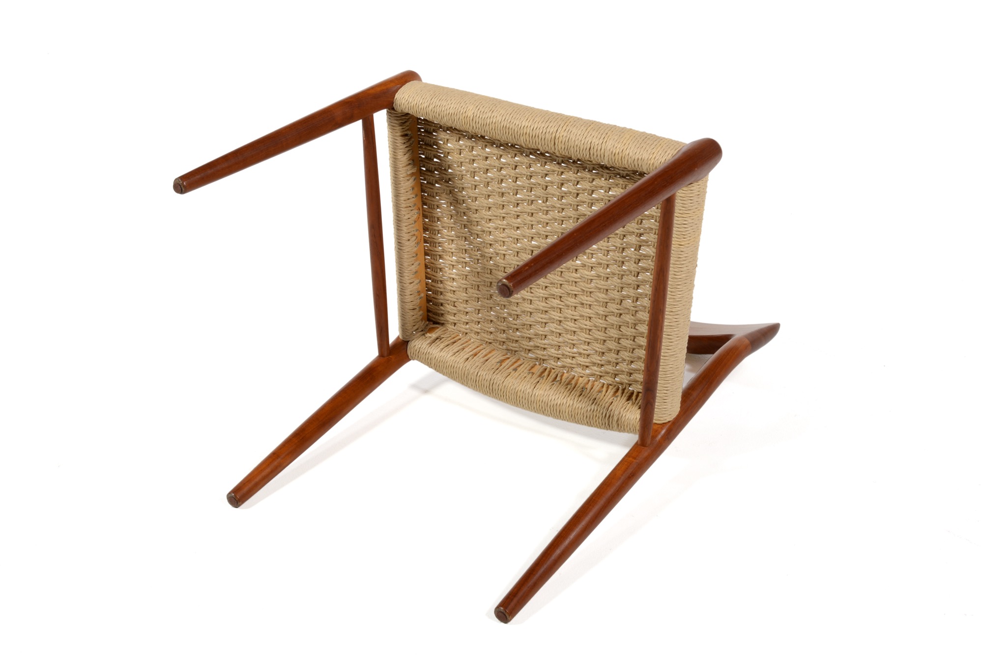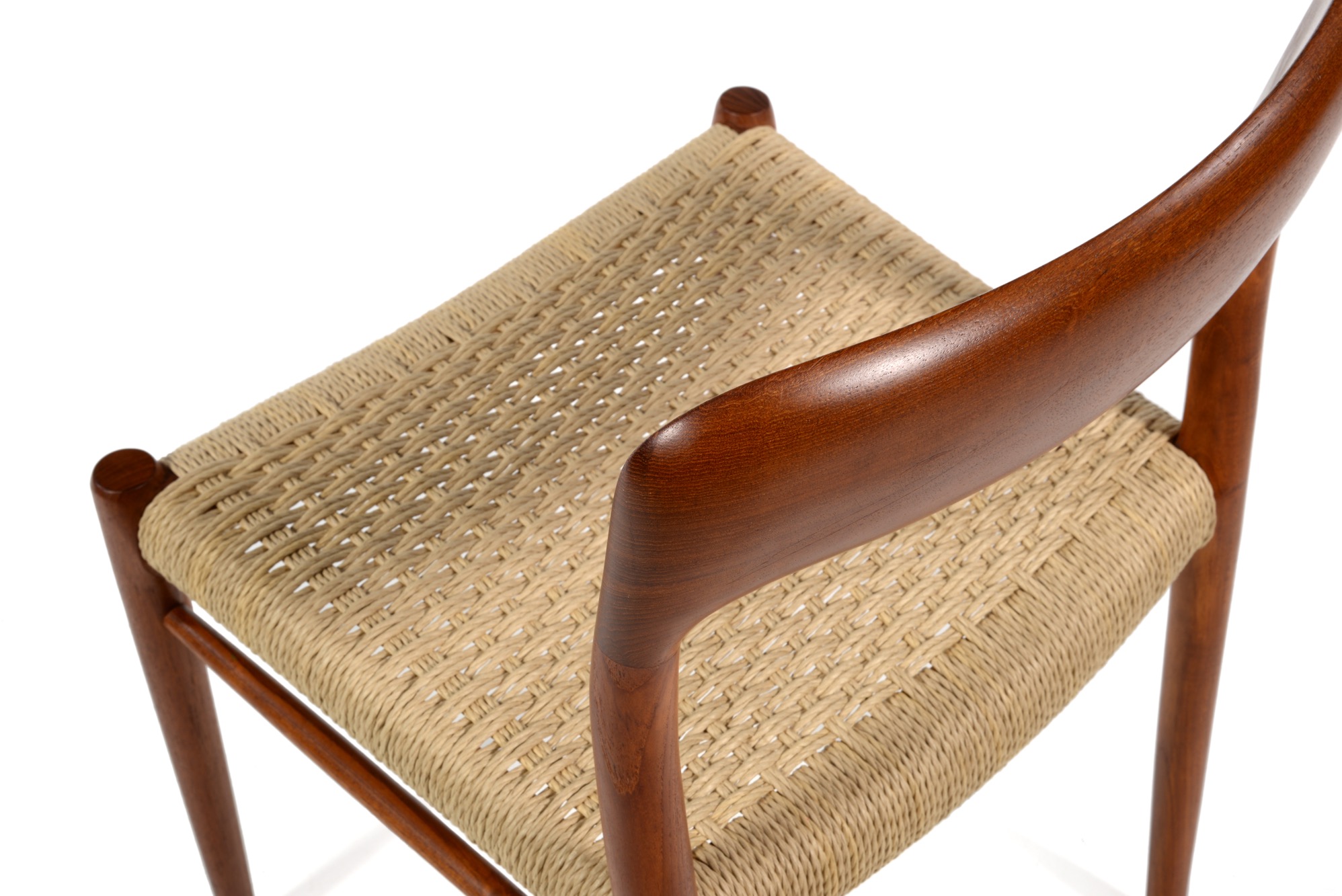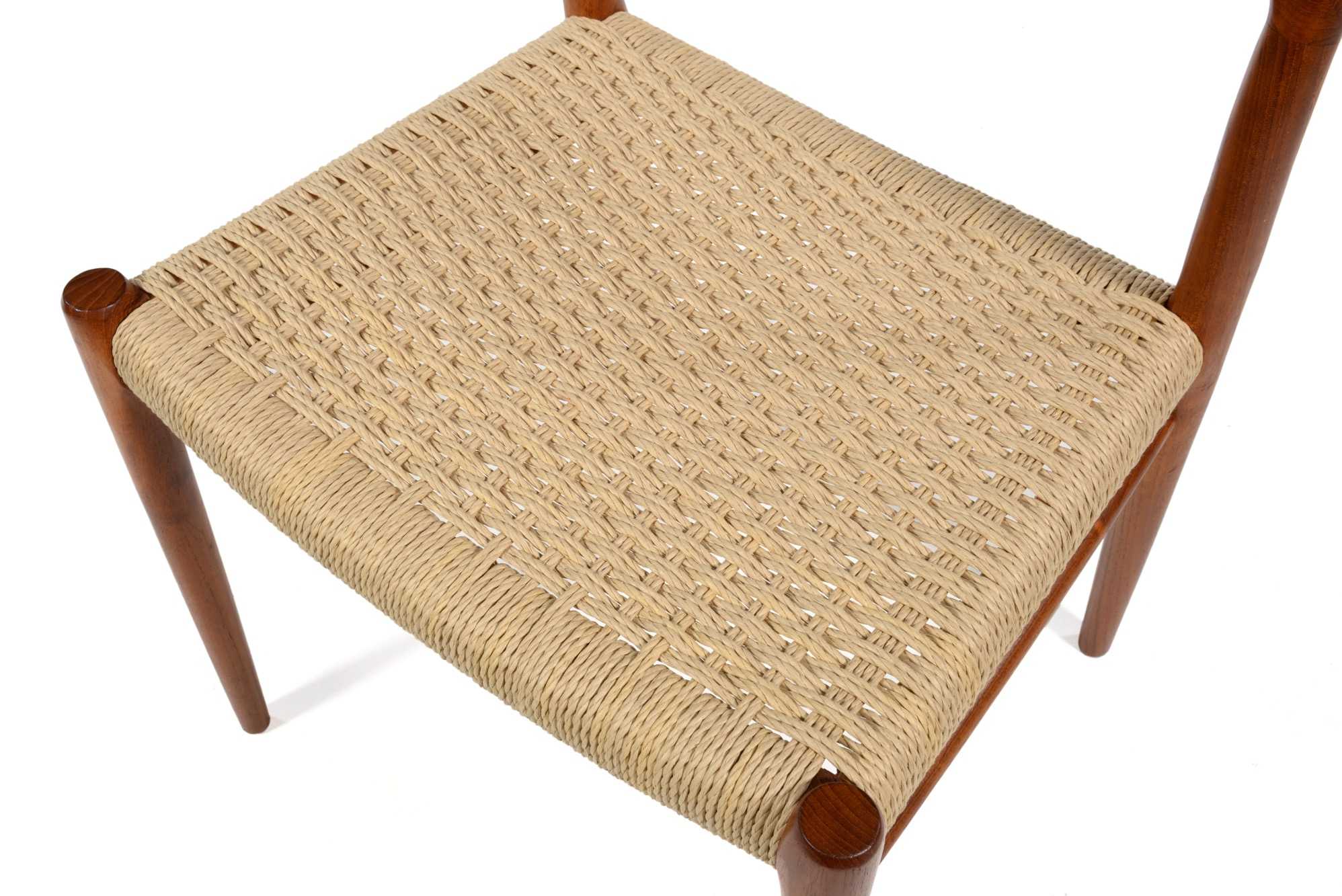 デンマークのデザイナー、N.O. Møller/ニルス・O・モラーによるダイニングチェアです。自身の工房、J.L. Møller/J.L.モラーによるもので、1960年代頃に作られたものでしょう。ペーパーコードは新たに張り替えました。