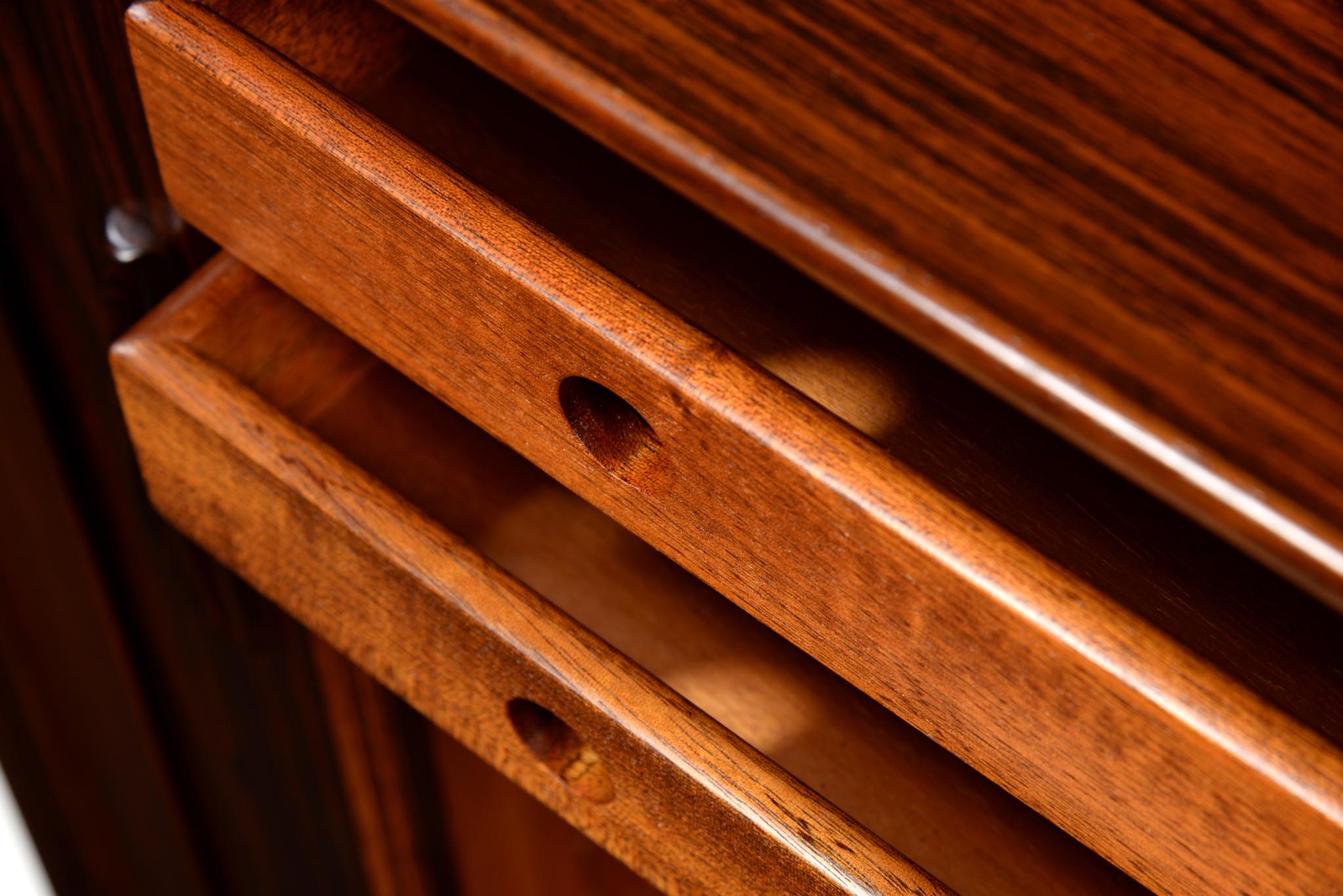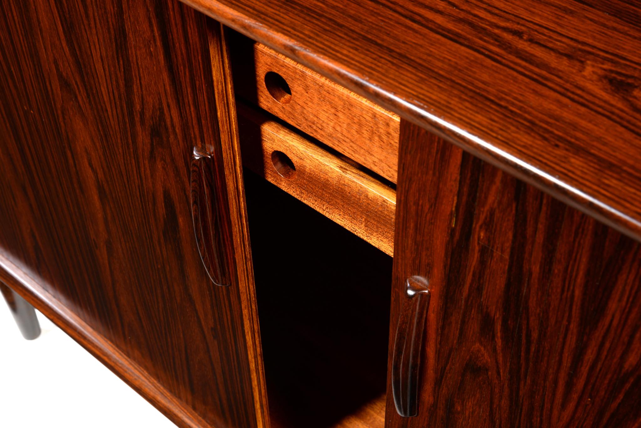 1960年代のデンマークを代表するデザイナー、Arne Vodder/アルネ・ヴォッダーによるサイドボードキャビネット、ローズウッドのタイプです。小ぶりな本体にロールフロント(蛇腹)のドアが便利なモデルで、ローズウッドの木取りもよく、コンディションも良好です。