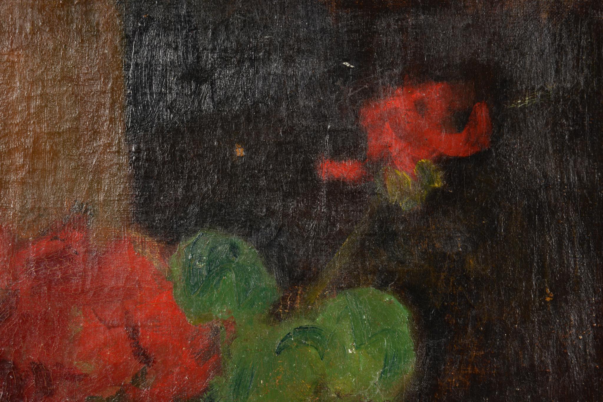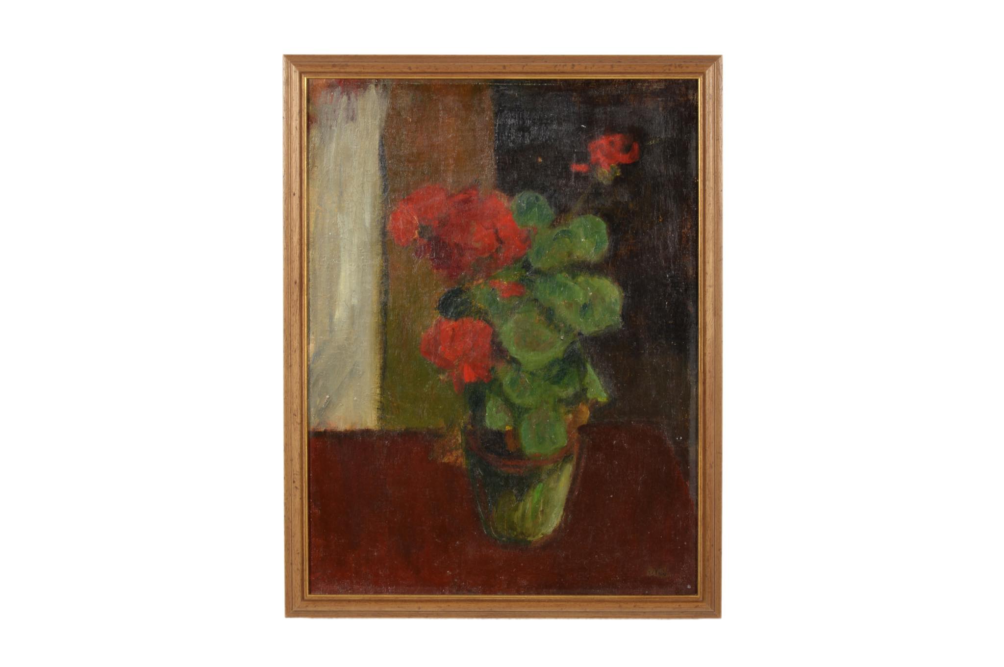 デンマークの画家、 Wilhelm Wils/ヴィルヘルム・ヴィルスによる静物画です。ゼラニウムと思しき卓上の花を描いたもので、独特の静けさを表現しています。額は新たに設えました。
