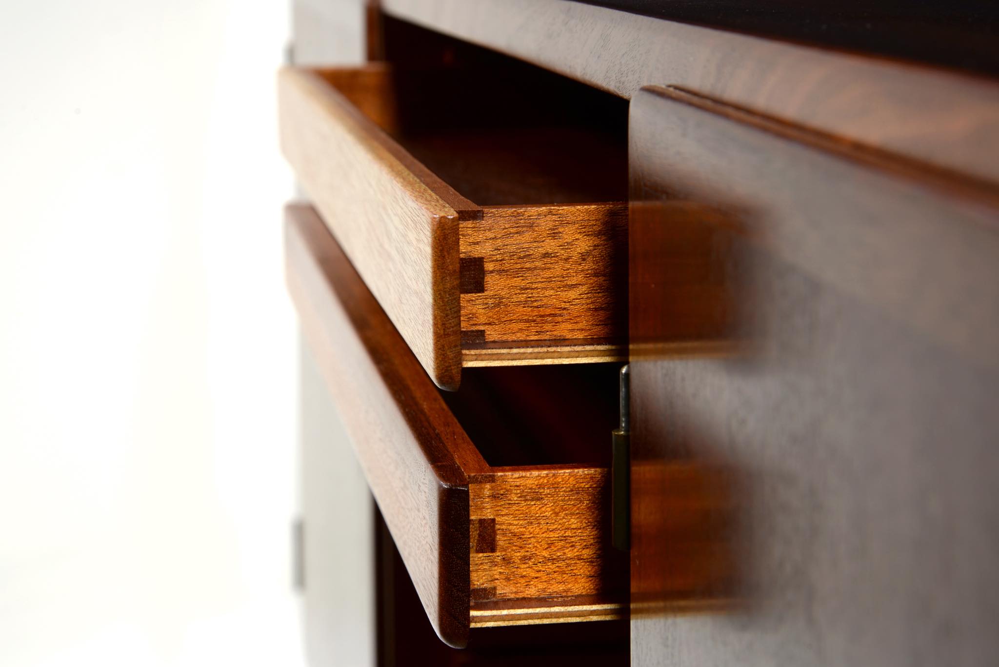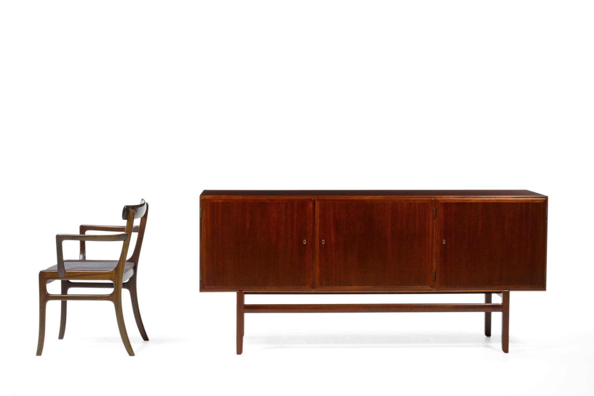 20世紀のデンマークを代表する文豪、Baroness Karen von Blixen-Finecke/カリン・ブリクセンの邸宅にちなんで名付けられた “Rungstedlund/ルンステッドランド” シリーズのサイドボードです。クラシックな趣を有するデザインは当時人気を博したようで、たくさんの製品が作られましたが、こちらは本体から棚板に至るまで良い木取りを行ったタイプです。