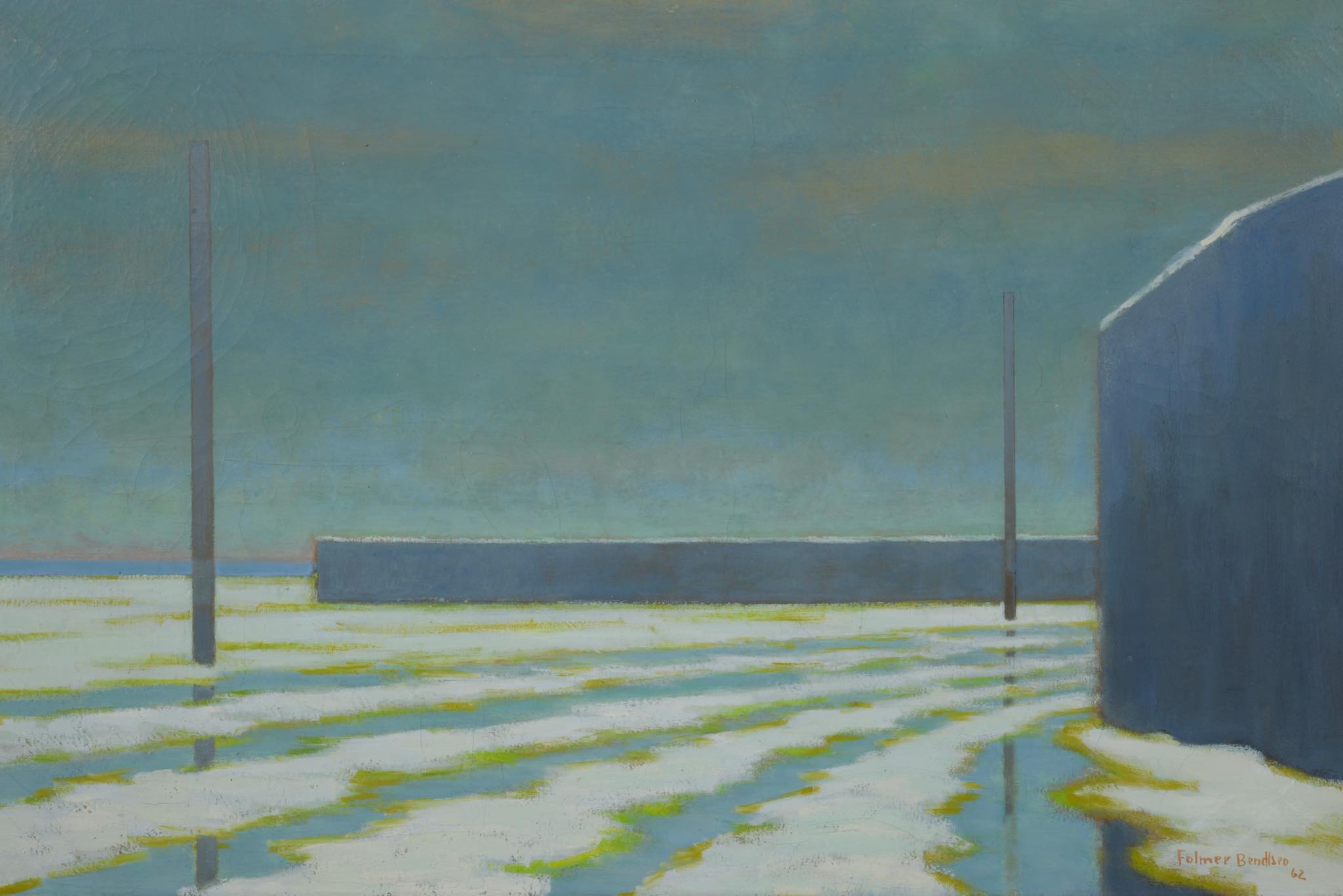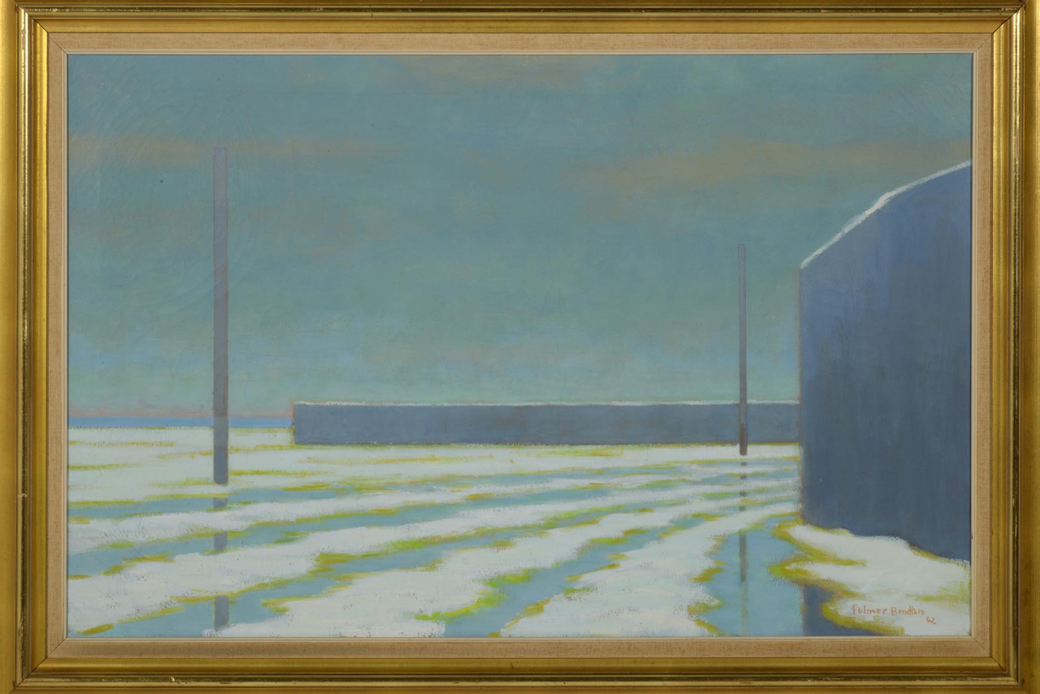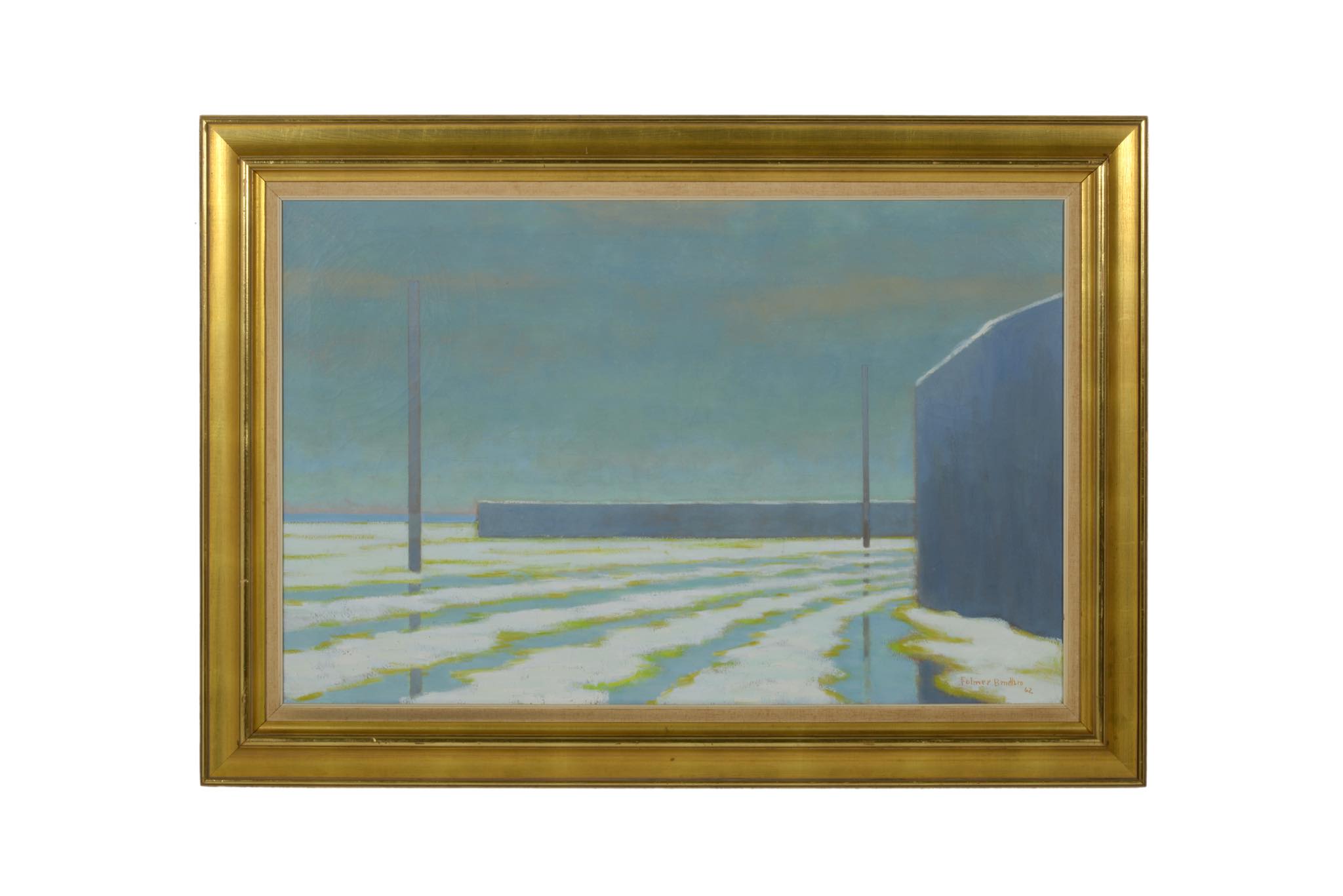 デンマークの画家、Folmer Bendtsen/フォルマー・ベンツェンによる油彩作品です。コペンハーゲンの南側、アマーの湾岸地区、Sydhavnen/スーハウンの風景を大きなキャンバスに描いたものです。 絵の具の表面にクラックが見られ、またフレームにも若干の小傷等見られますが、絵の魅力は損なわれていません。