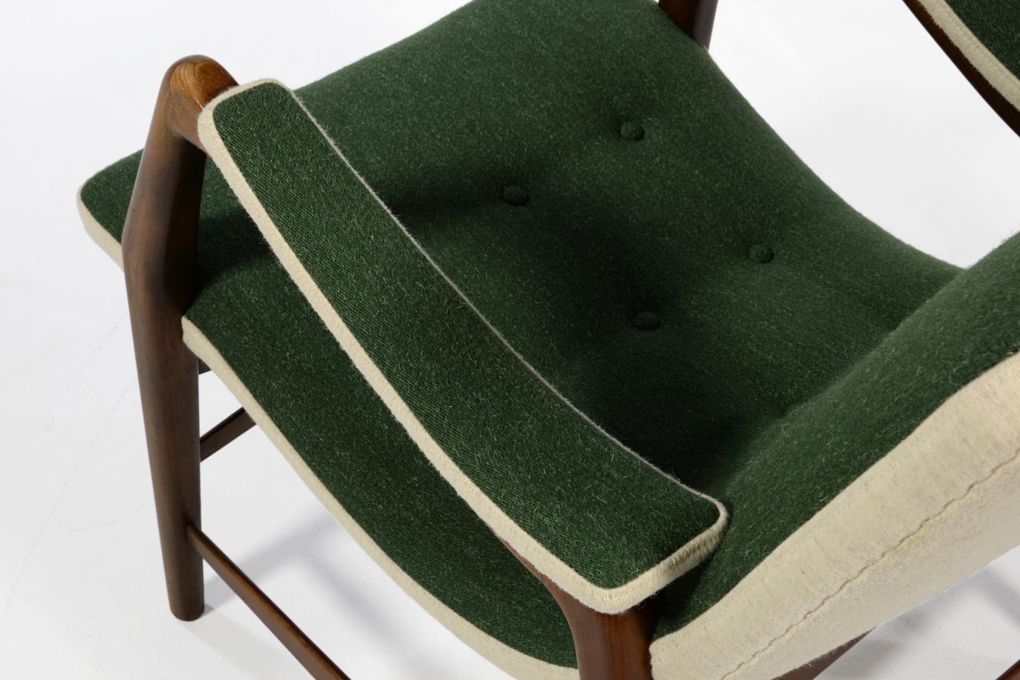 この椅子は、デンマーク、オーフスの家具工房、J.L. Møller/J.L. モラーによって製作されたようです。J.L. Møllerの創設者であるNiels Otto Møller/ニールス・モラーと、Hovmandとが共同で1947年に設計、製作した最初のイージーチェアと位置付けられたもので、その当時、二人は20歳代という若さだったそうです。