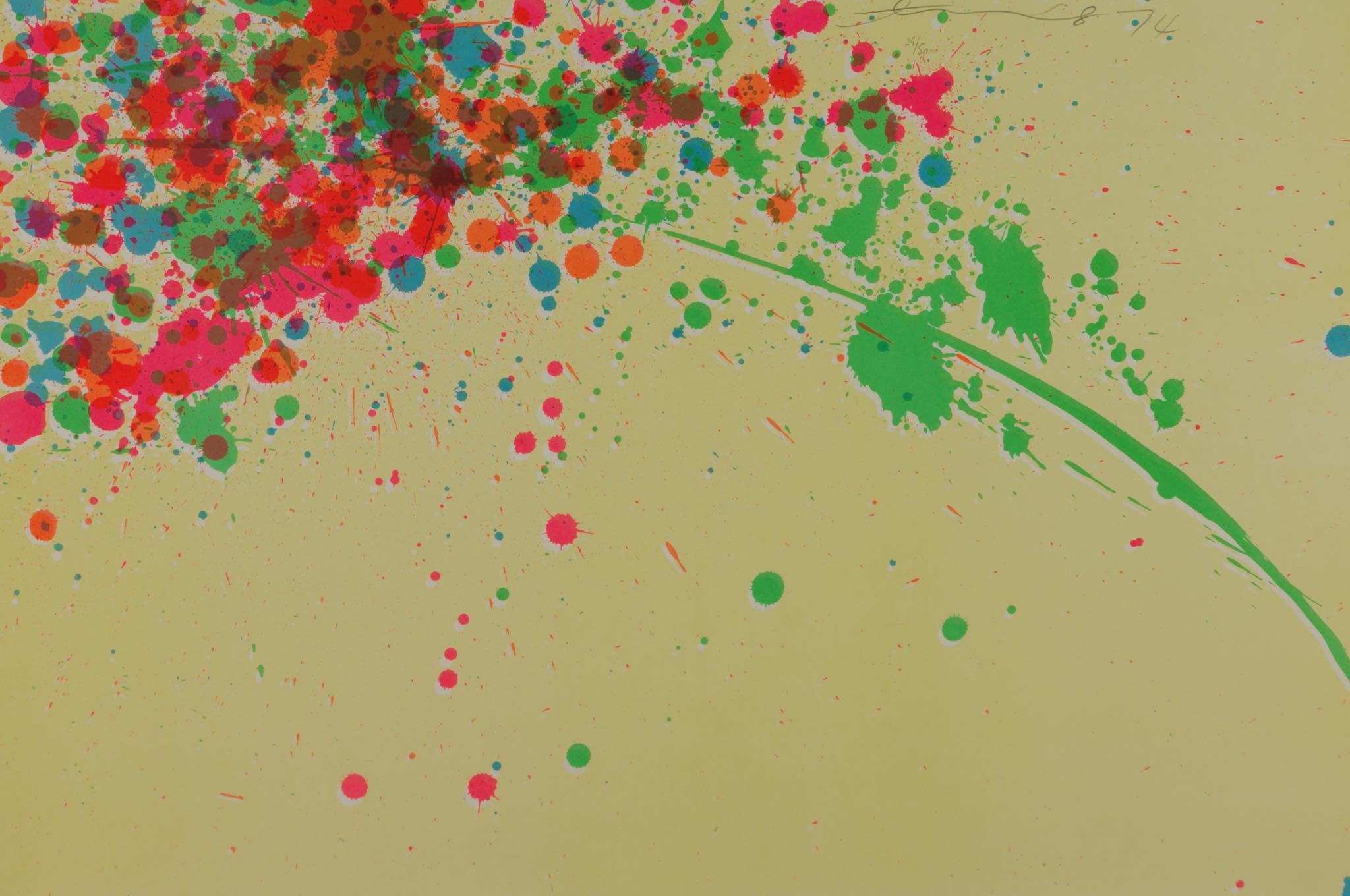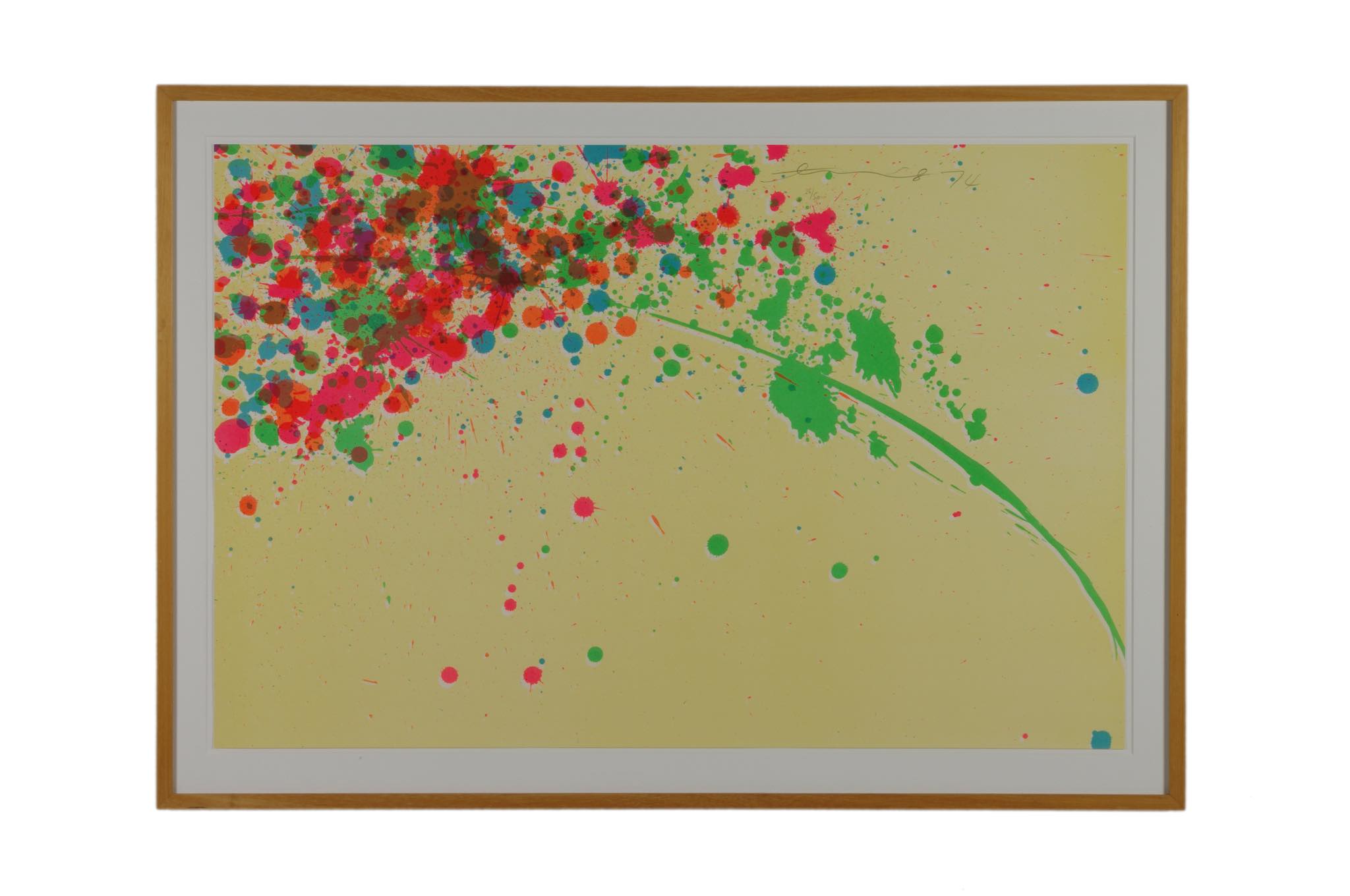 上海出身の芸術家、Walasse Ting /ウォレス・ティンによる “Good Morning from Walasse Ting” シリーズのリトグラフ作品です。氏が渡米の際に出会い、親交を深めた米国の芸術家、Sam Francis/サム・フランシスへのオマージュとして1974年に制作されたもので、大ぶりな作品です。華麗な色彩、そしてダイナミズムに満ちたパワー溢れる表現をお楽しみください。