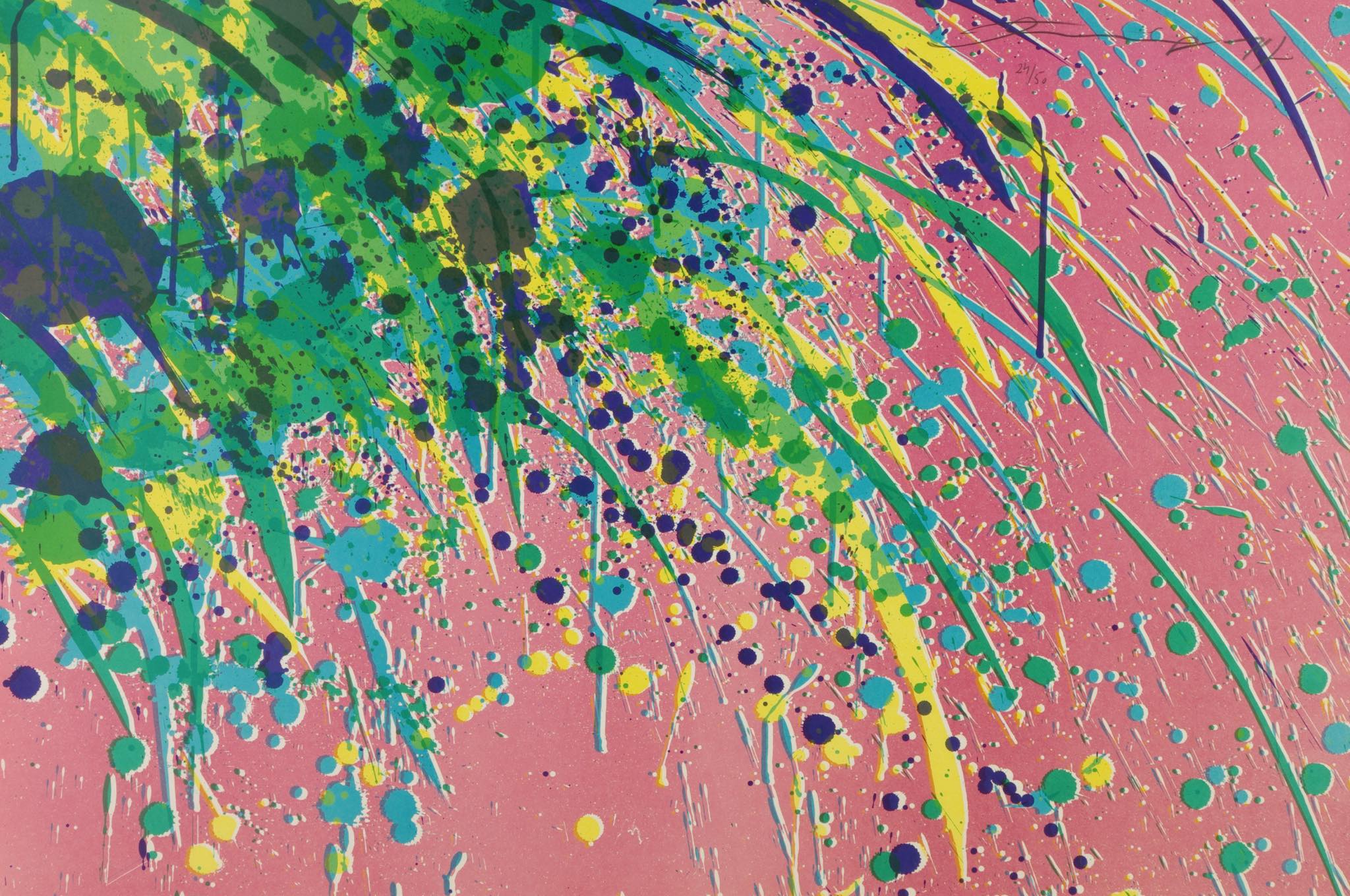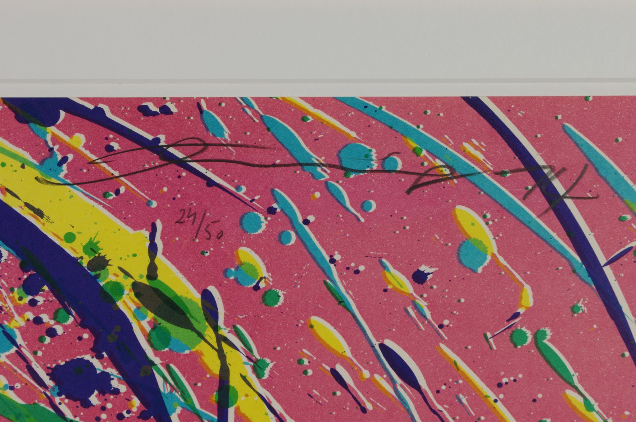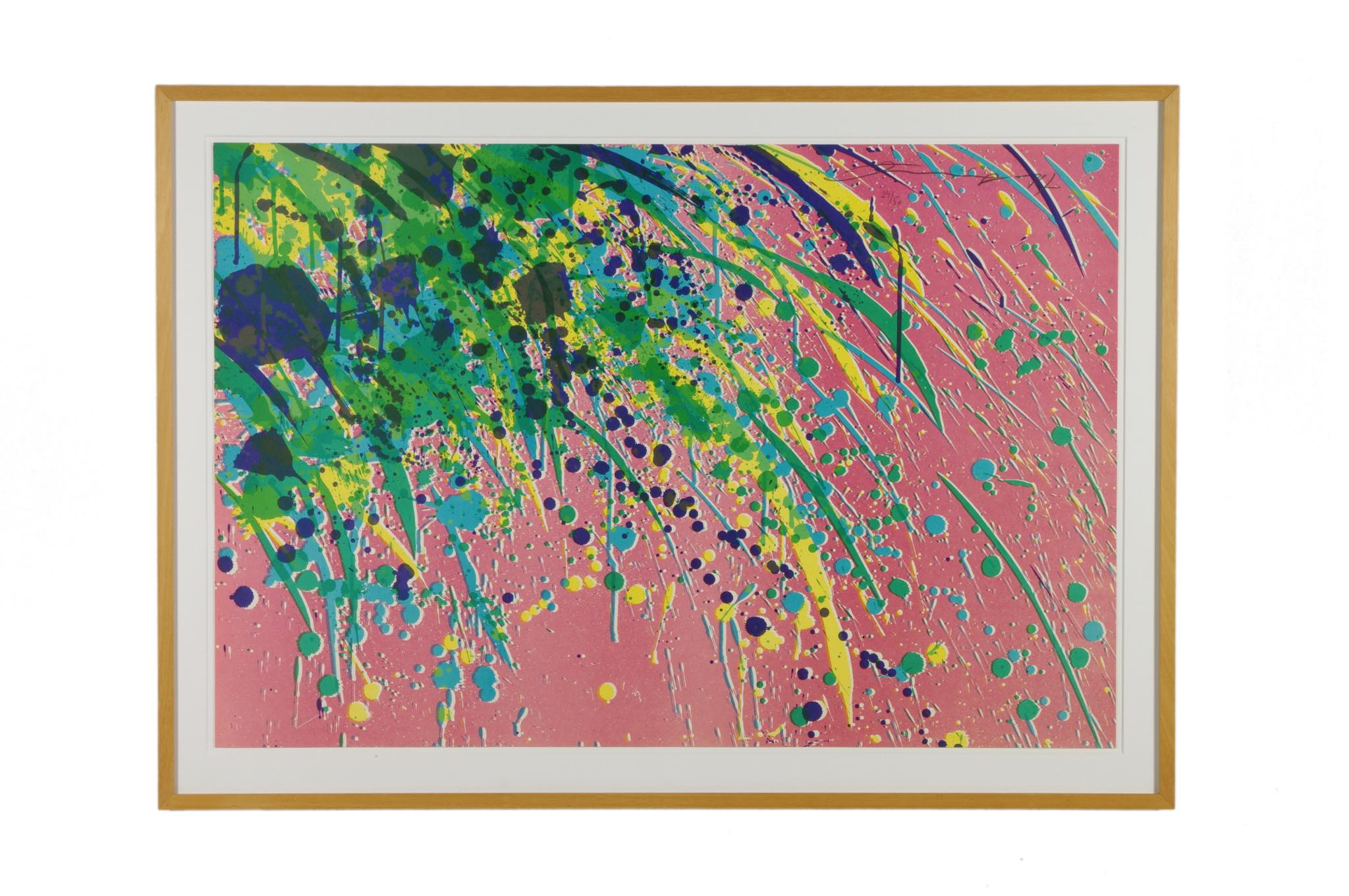 上海出身の芸術家、Walasse Ting /ウォレス・ティンによる “Good Morning from Walasse Ting” シリーズのリトグラフ作品です。氏が渡米の際に出会い、親交を深めた米国の芸術家、Sam Francis/サム・フランシスへのオマージュとして1974年に制作されたもので、大ぶりな作品です。華麗な色彩、そしてダイナミズムに満ちたパワー溢れる表現をお楽しみください。