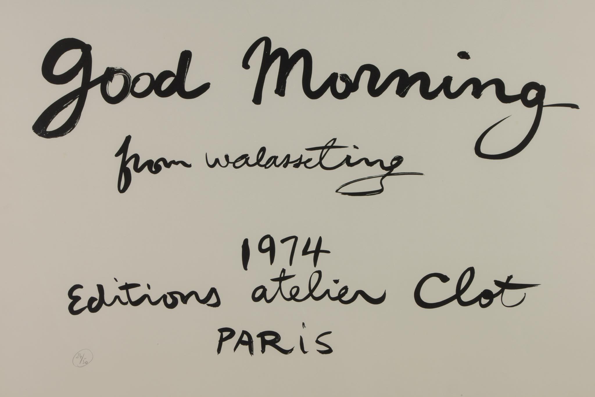 上海出身の芸術家、Walasse Ting /ウォレス・ティンによる “Good Morning from Walasse Ting” シリーズのタイトルシート、リトグラフ作品です。氏が渡米の際に出会い、親交を深めた米国の芸術家、Sam Francis/サム・フランシスへのオマージュとして1974年に制作されたものです。