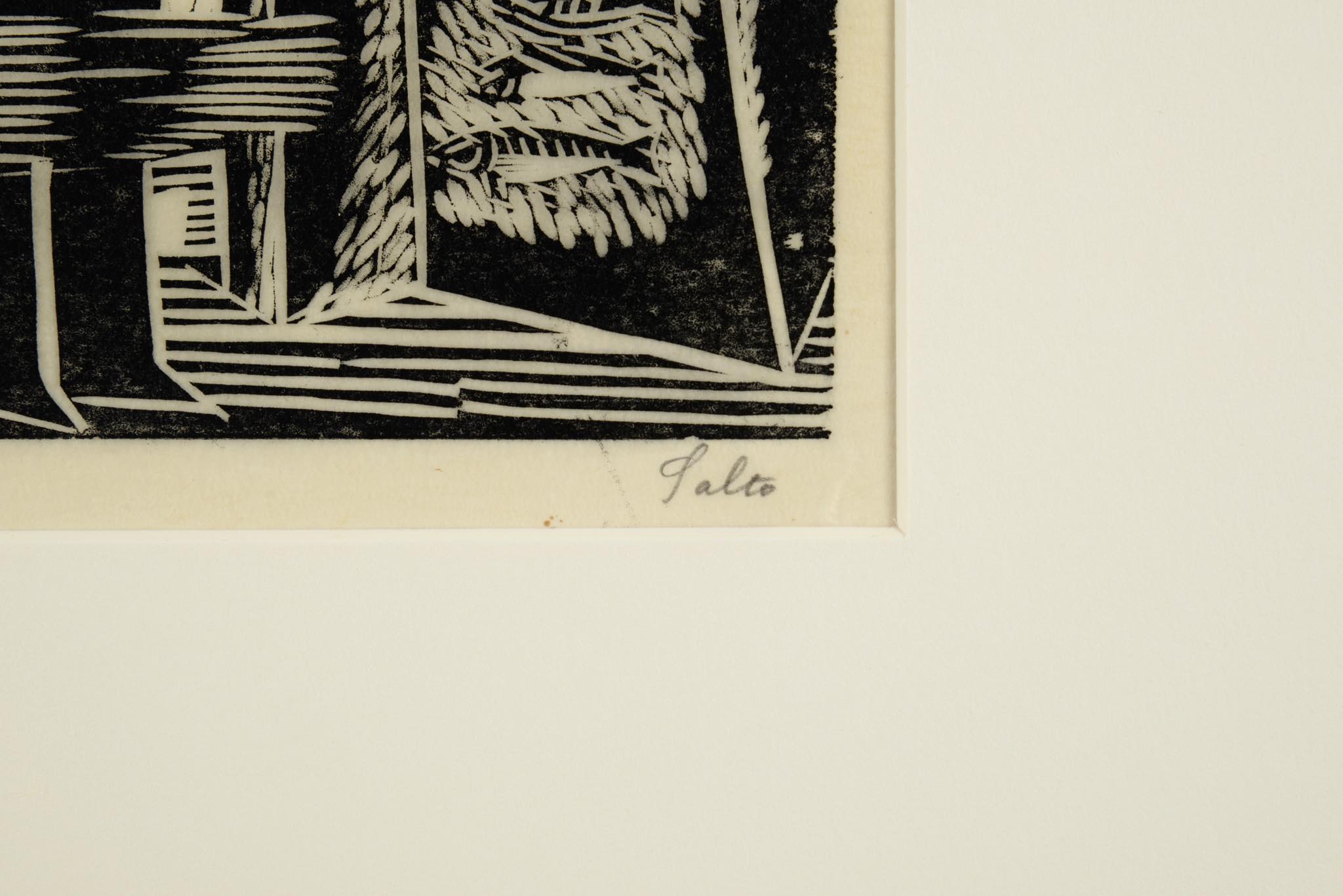 デンマークを代表する芸術家、アクセル・サルトによる木版画作品です。 ごく薄い和紙のような質感のライスペーパーに擦られたシリーズで、鉛筆描きでオリジナル版画であることの証と年号、そしてサインが入ります。 フレームはオーク材のものを用いました。