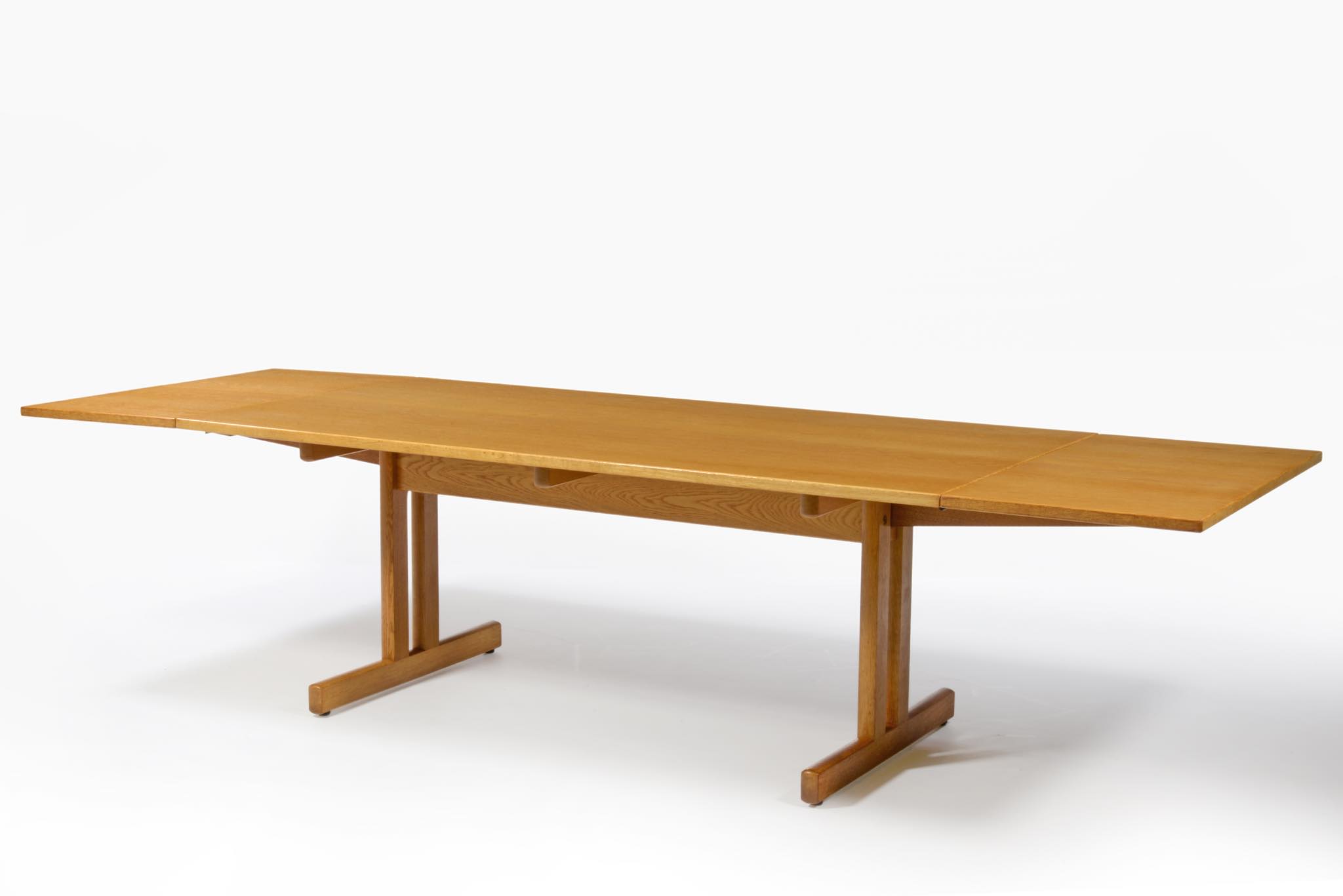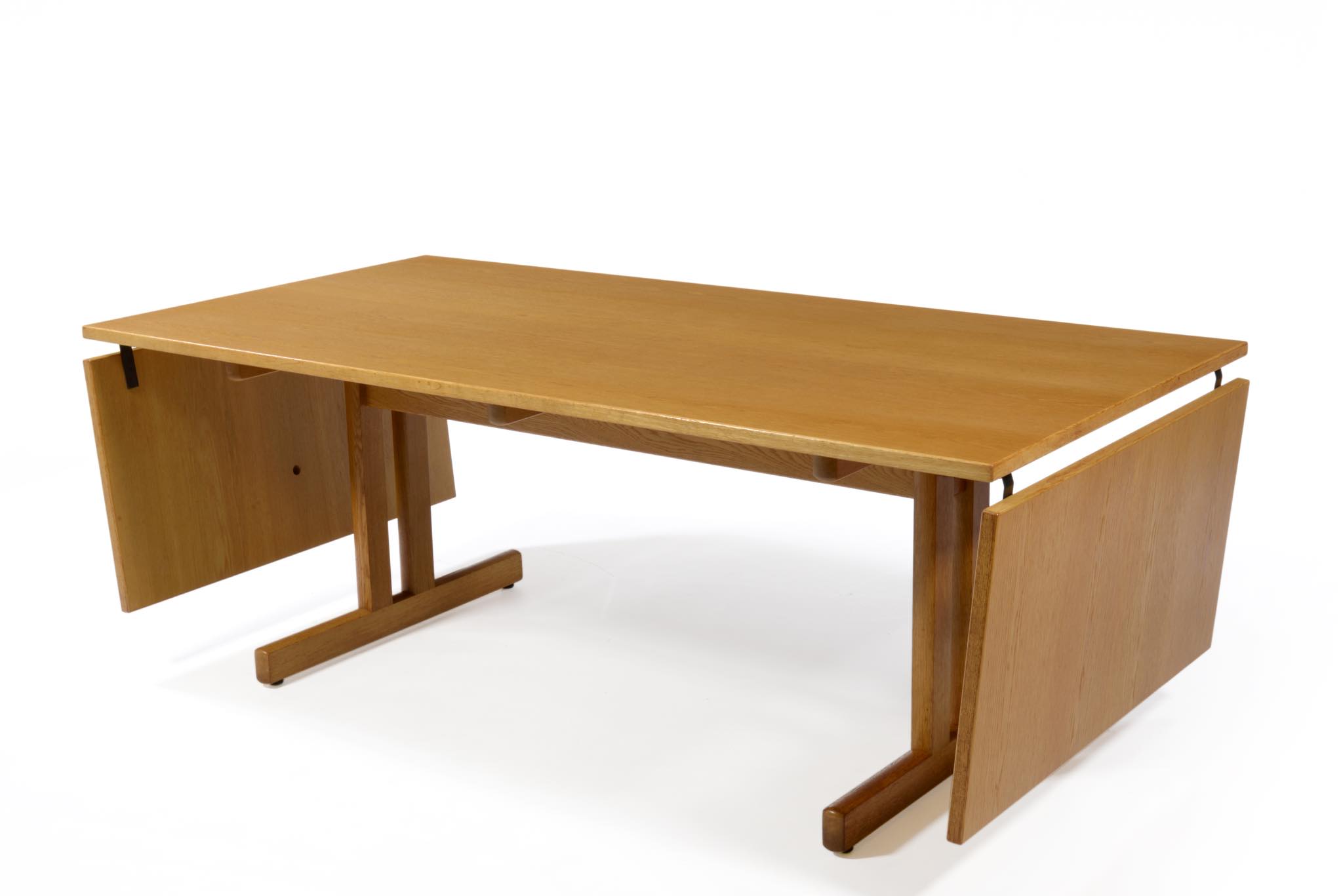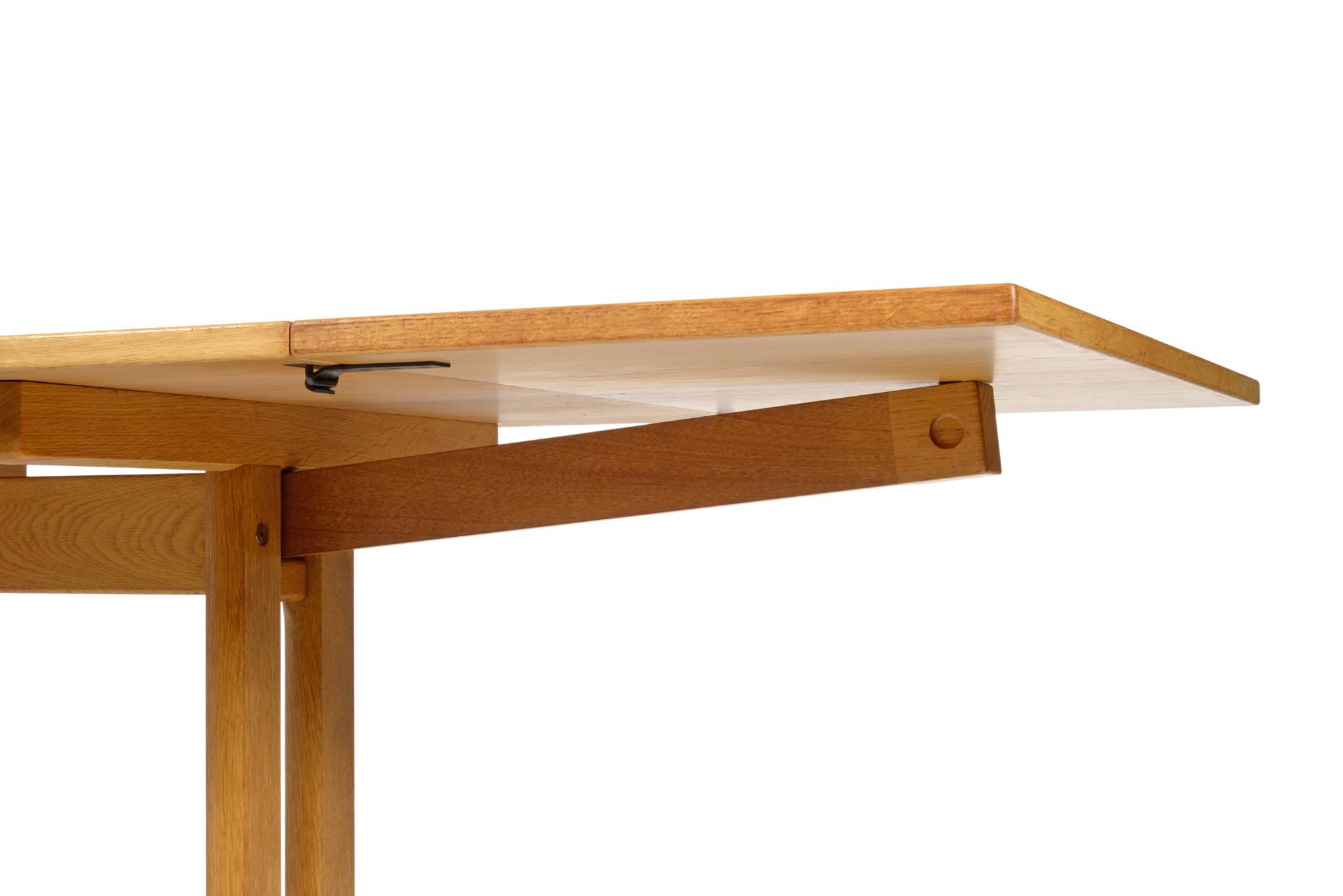 Hans J. Wegner/ハンス・ウェグナーによるシェーカーテーブル、1970年代頃に作られたものでしょう。低めの天板は名作椅子 "Y-Chair"とも合わせやすく、跳ね上げ式のエクストラリーフは取り外しも可能です。天板はオークの突き板、構造は無垢を用いています。