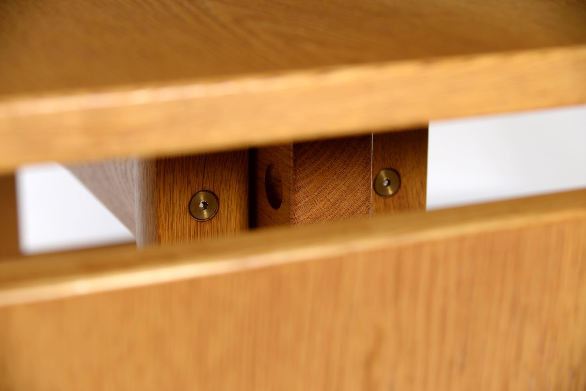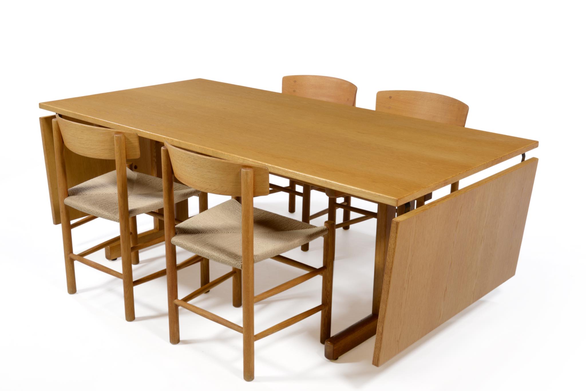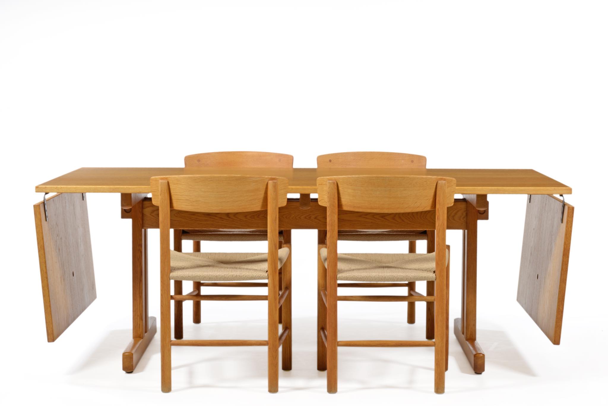 Hans J. Wegner/ハンス・ウェグナーによるシェーカーテーブル、1970年代頃に作られたものでしょう。低めの天板は名作椅子 "Y-Chair"とも合わせやすく、跳ね上げ式のエクストラリーフは取り外しも可能です。天板はオークの突き板、構造は無垢を用いています。