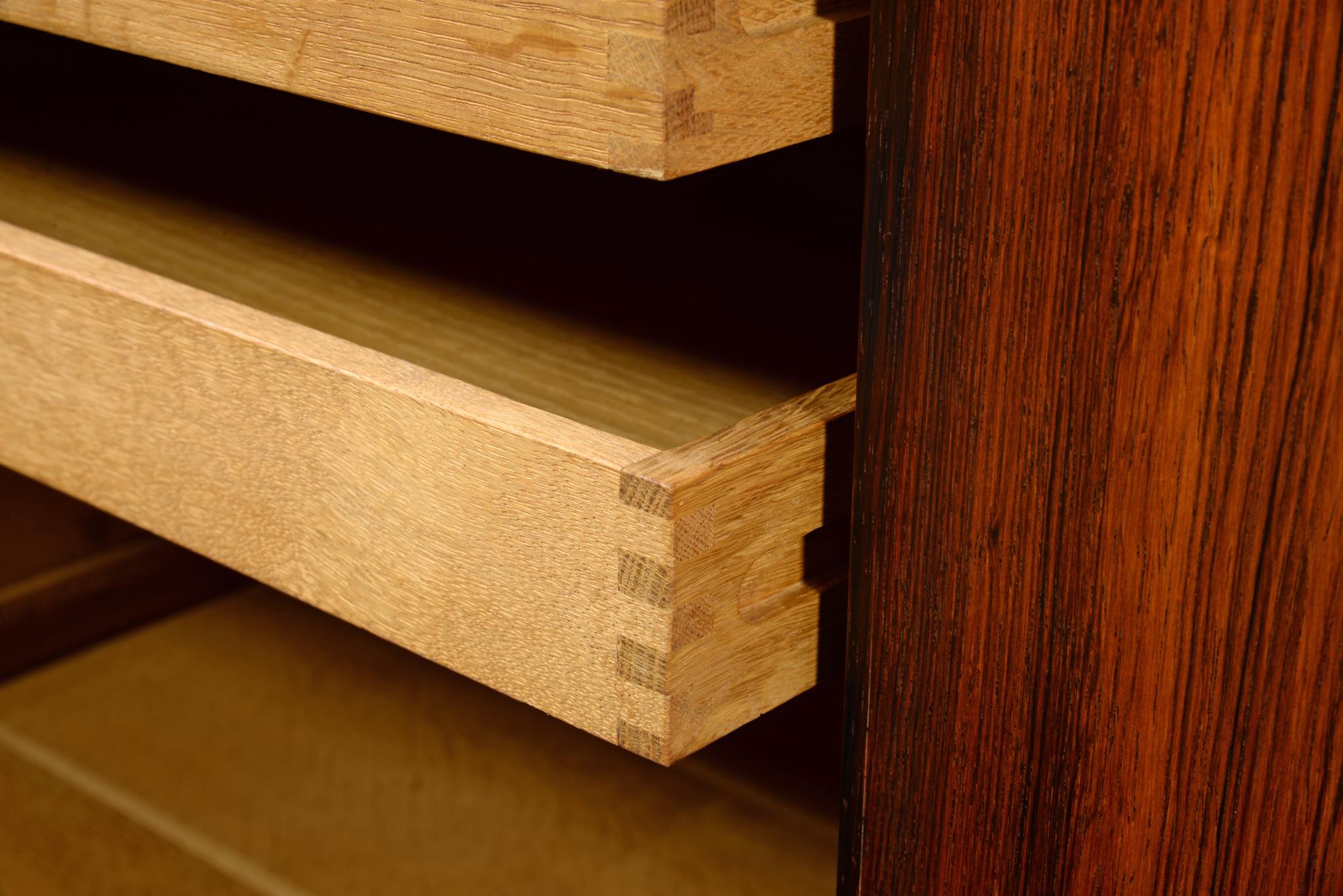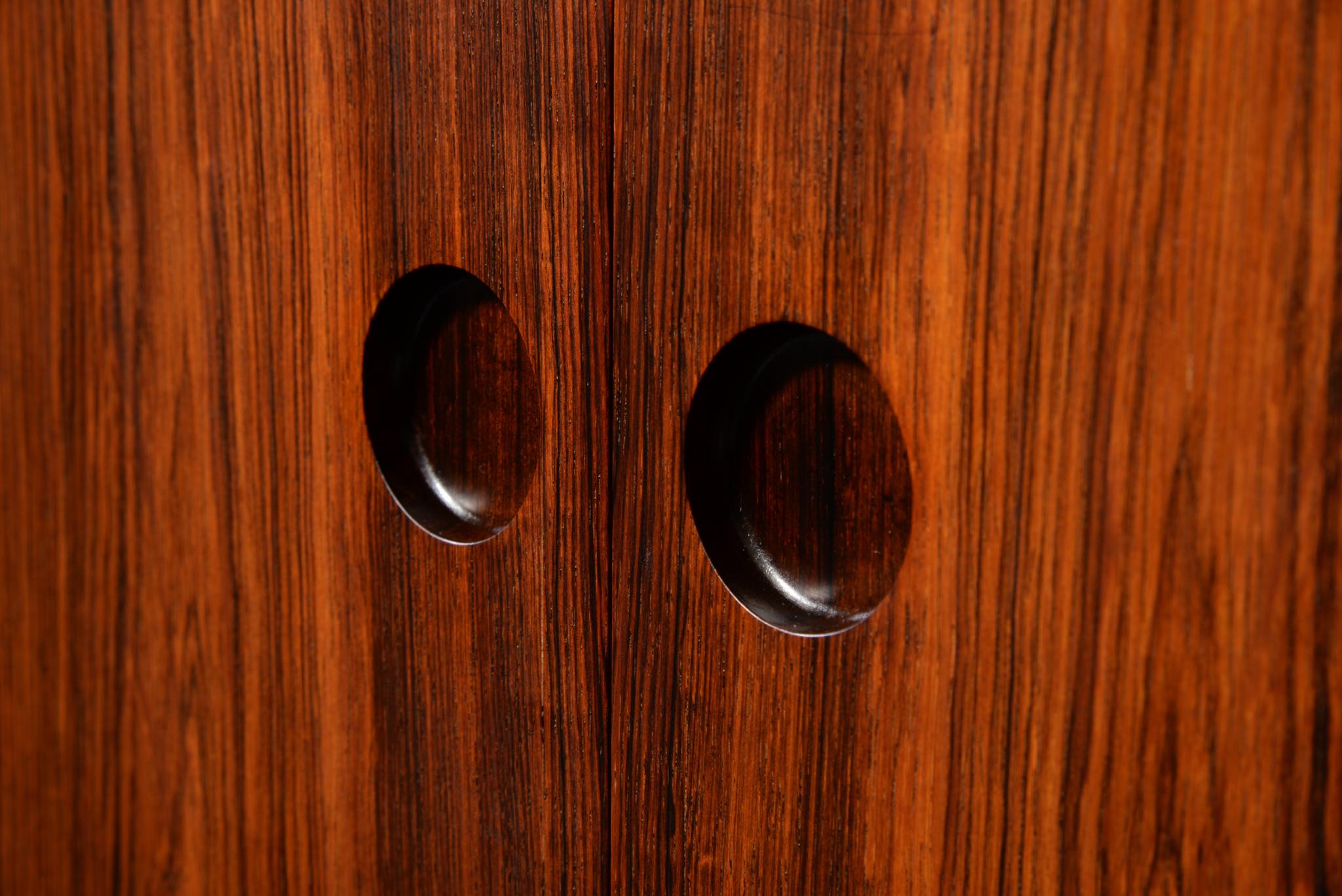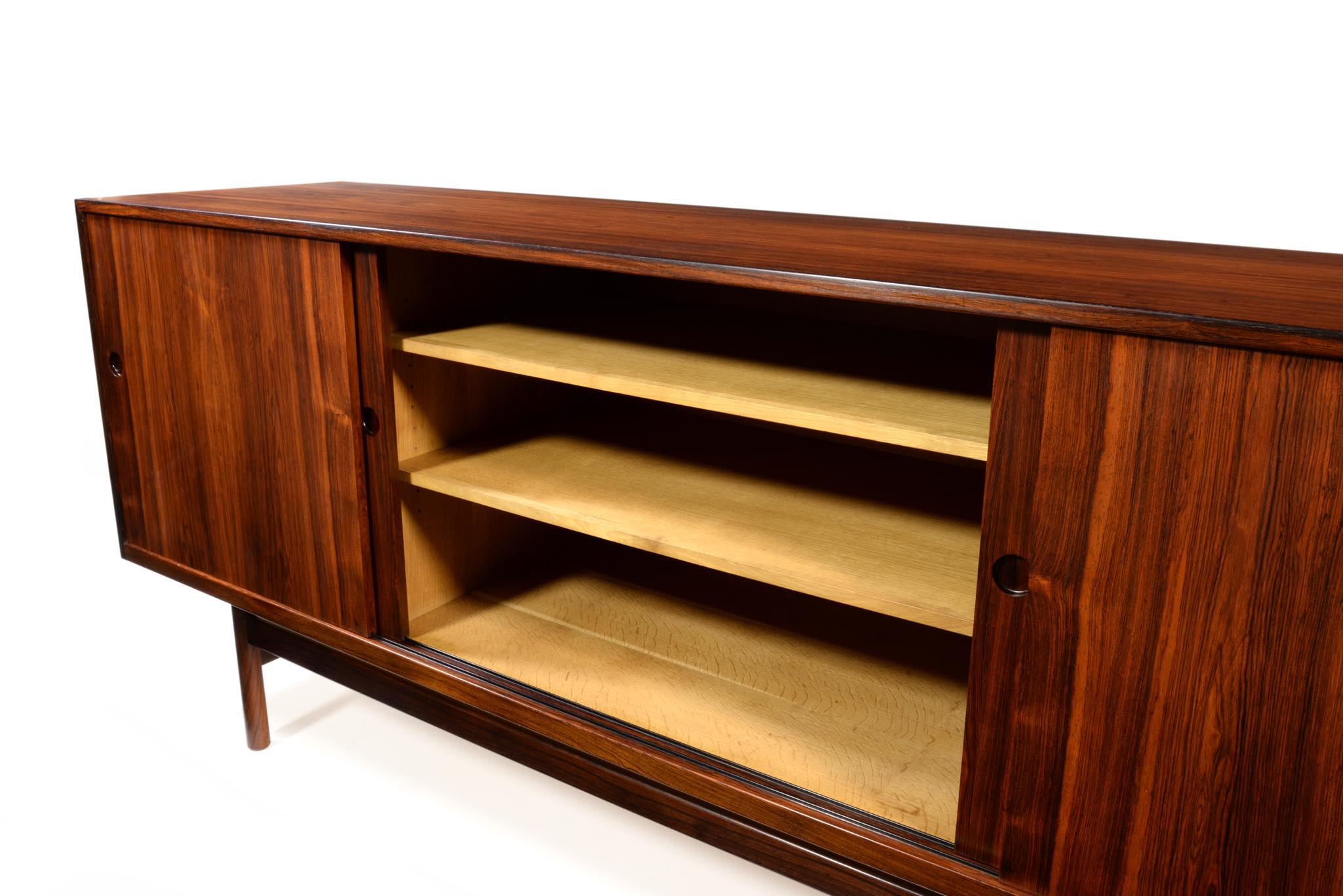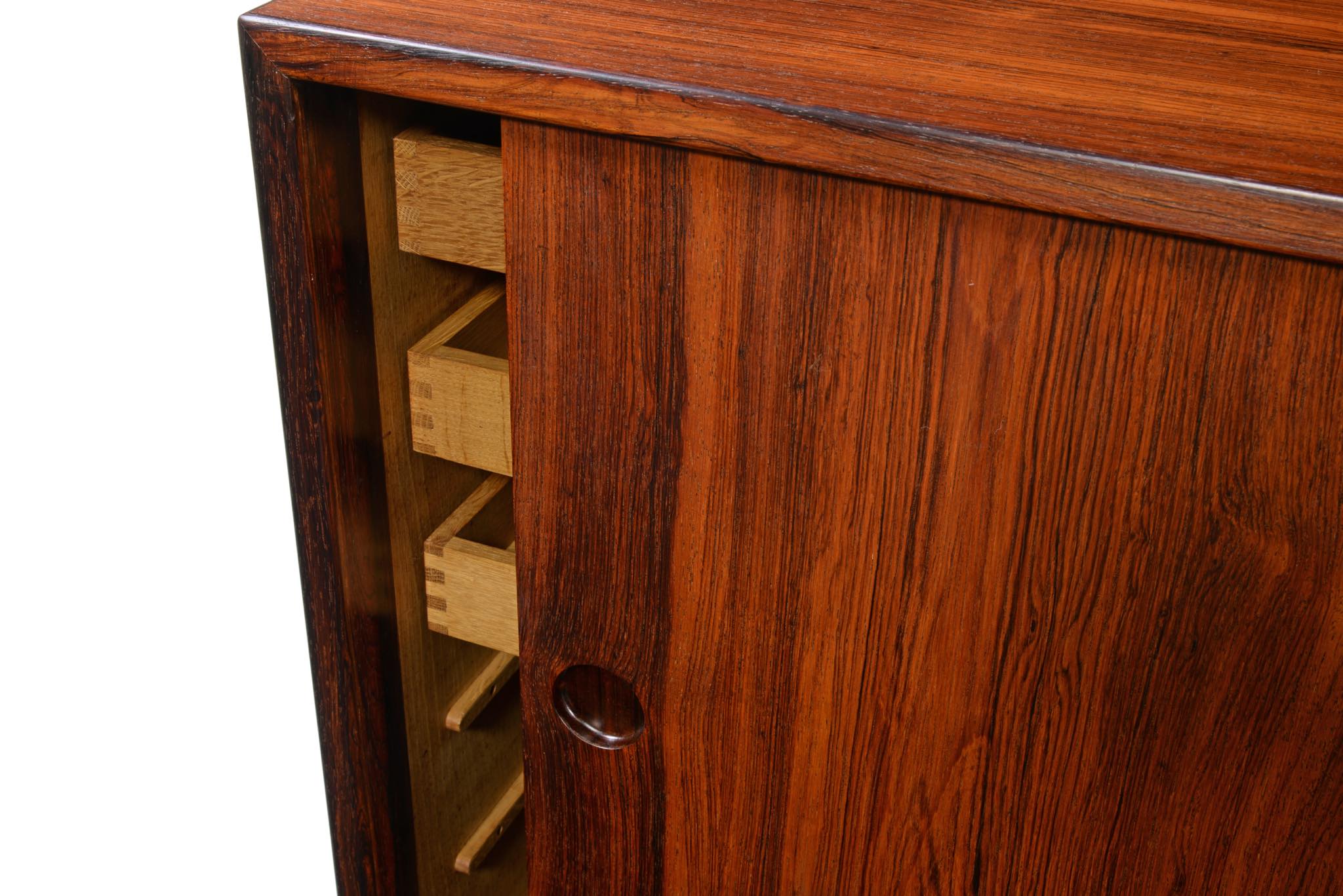 デンマーク製、1960年代頃に作られた大振りなサイドボードです。デザイナーや工房など詳しいことはわかっておりませんが、上質なローズウッドを用いて丁寧に作られたものです。