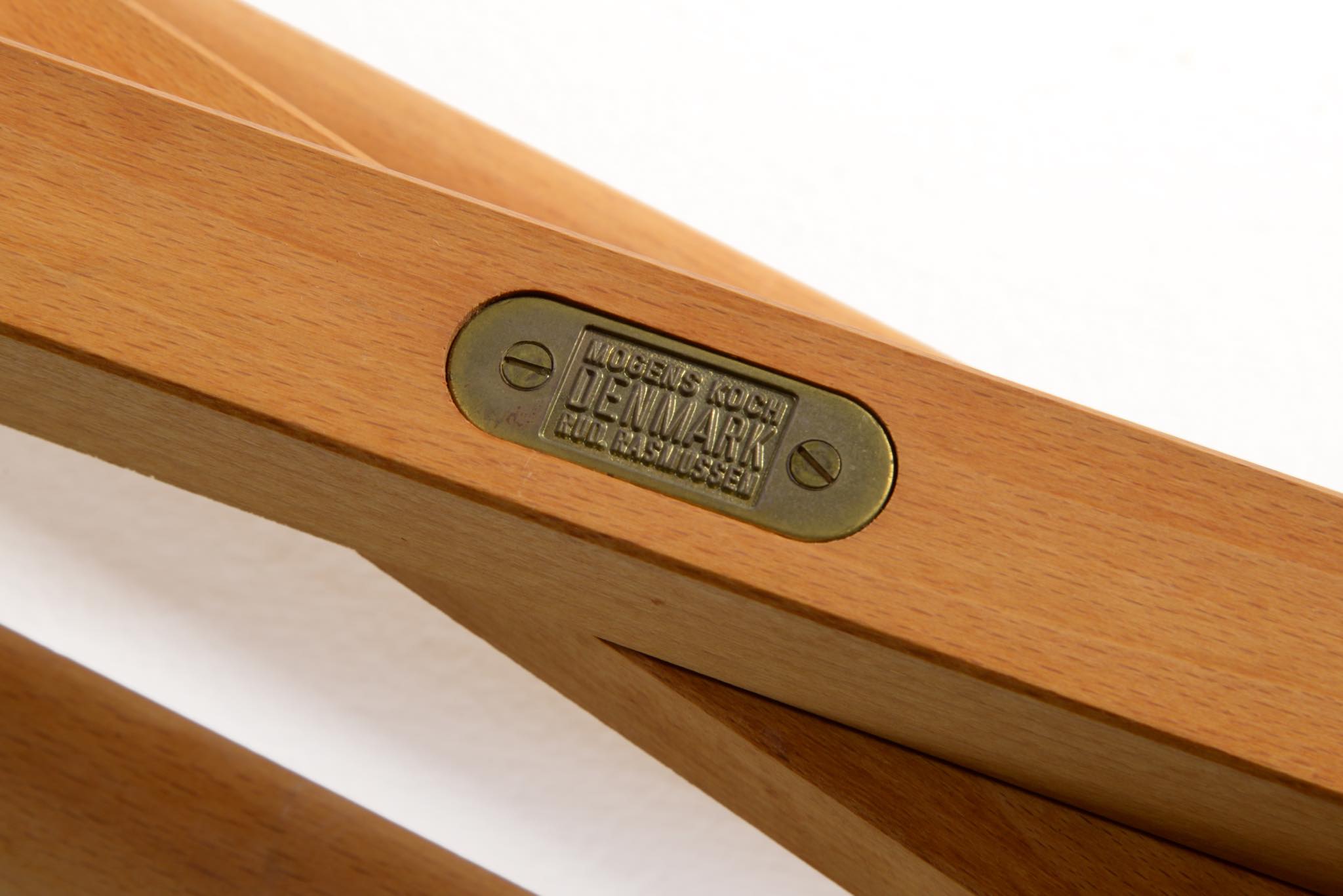 モーエンス・コッホによるフォールディングチェア。1980年代頃のものと思われます。背と座のキャンバスは後に張り替えられており、僅かに染みが見られますが綺麗な状態です。