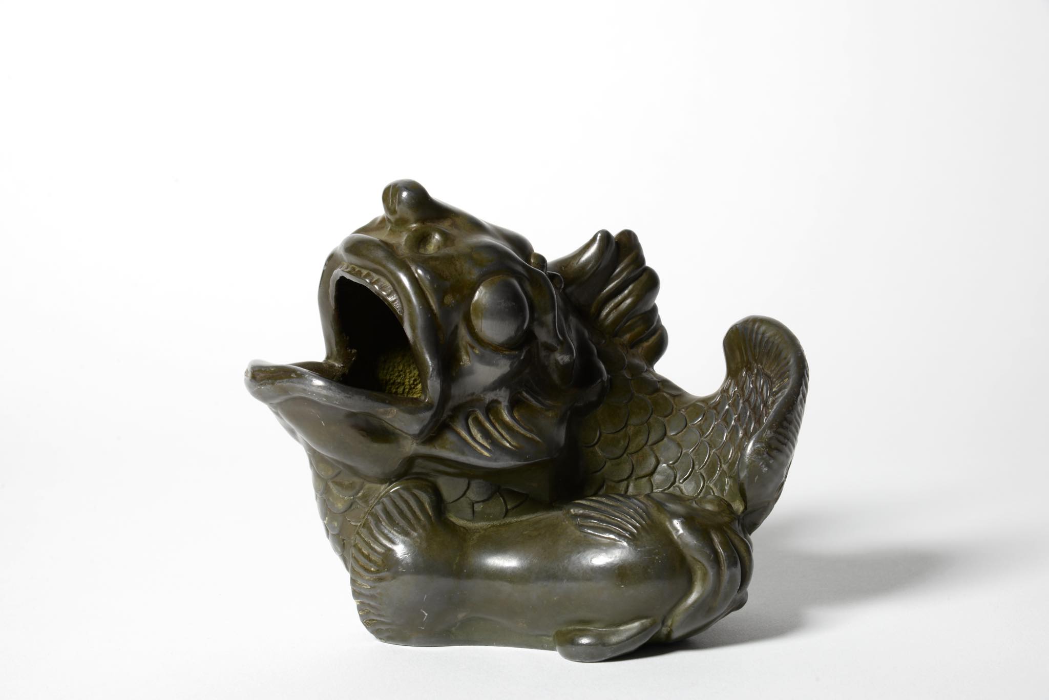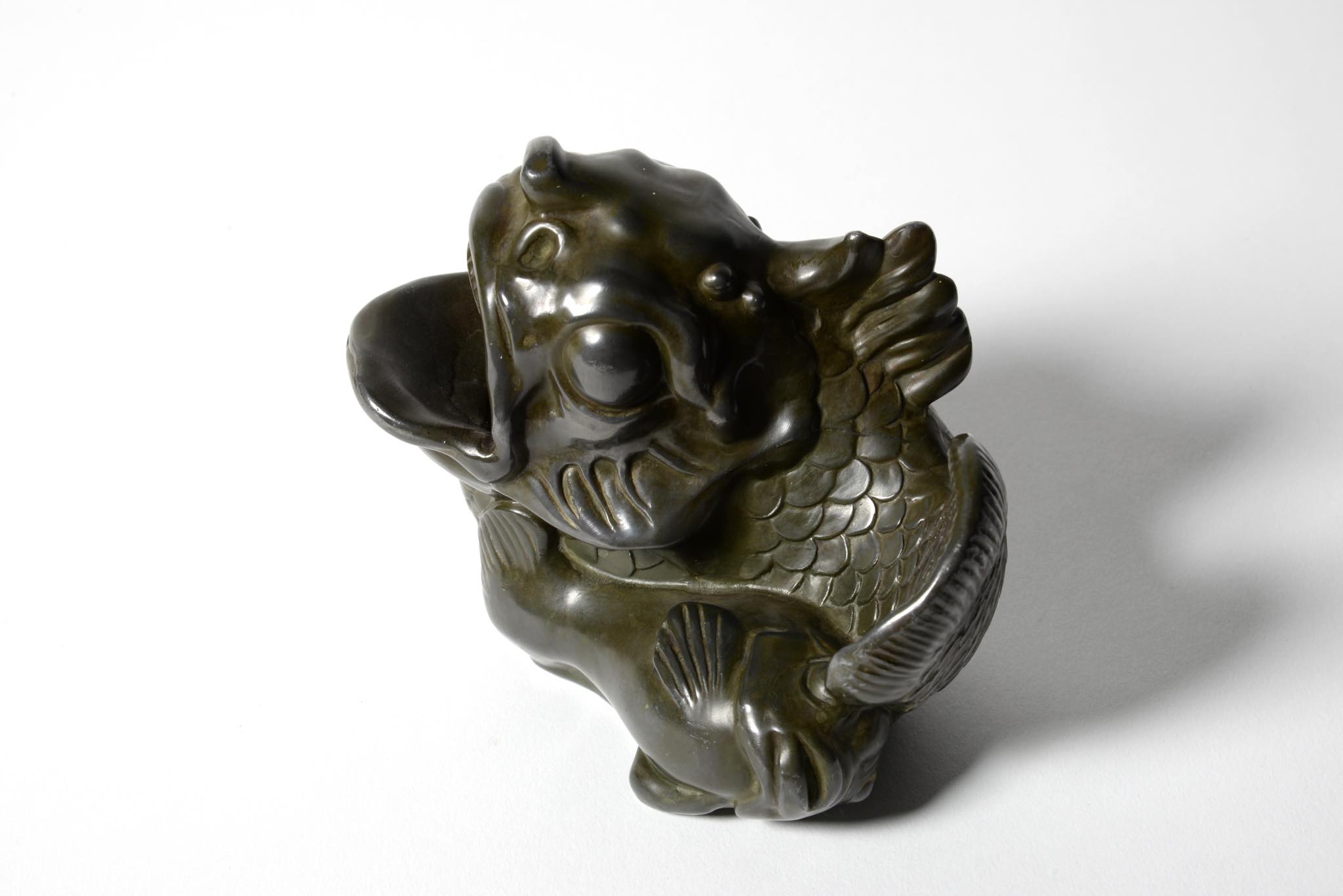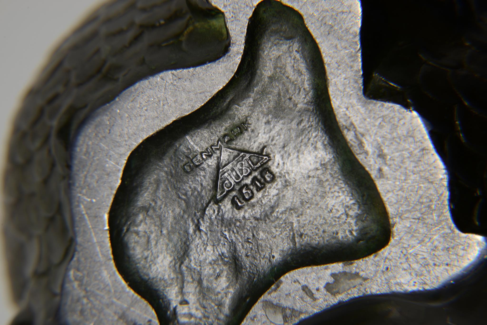 デンマークの金工家、ユスト・アナセンによる魚のモチーフのフィギュア、ディスコメタル製です。わずかに退色が見られますが、程よい経年感が魅力です。